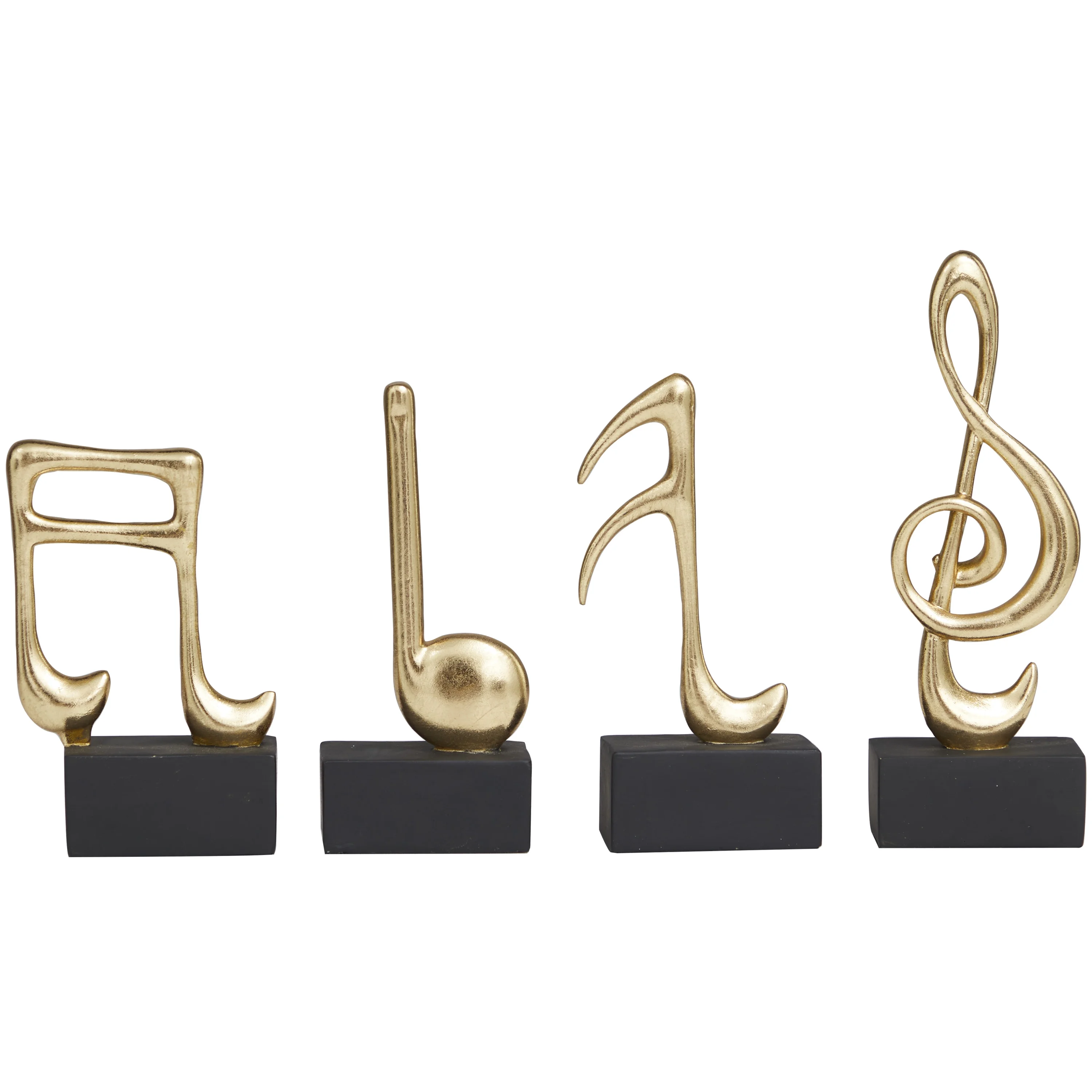 9, 7, 7, 6"H Gold Resin Musical Notes Sculpture with Black Base, by The Novogratz (4 Count)
