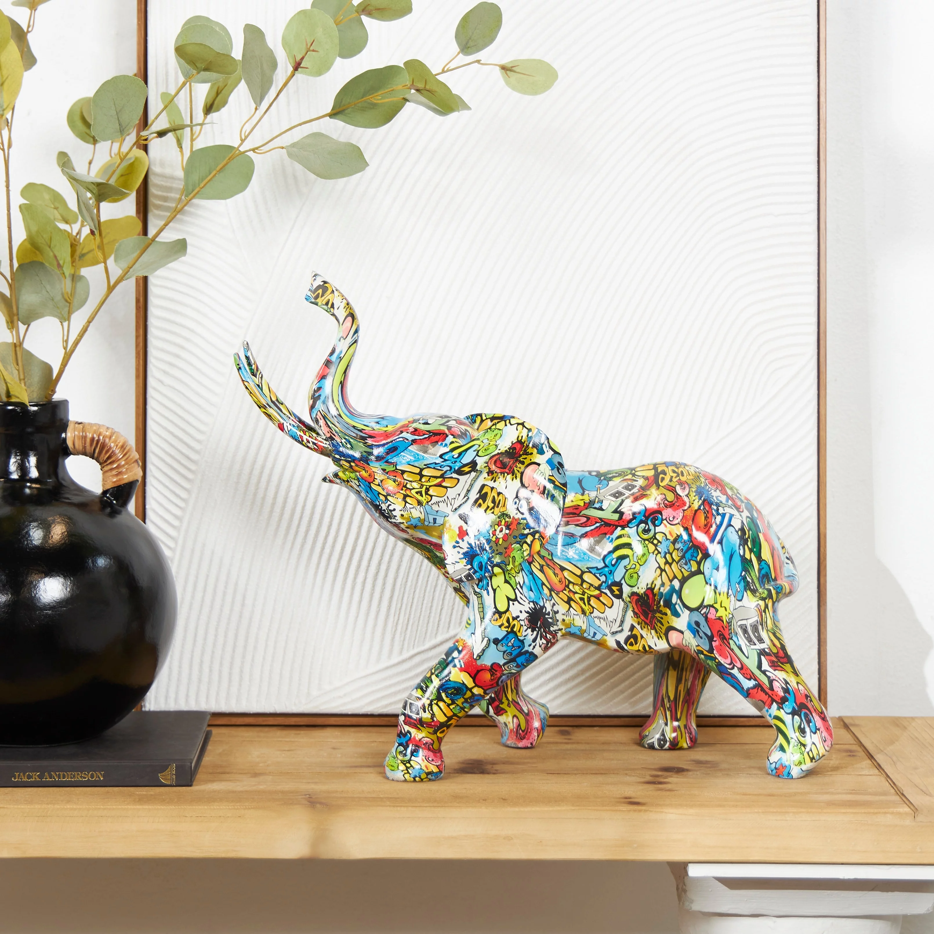 The Novogratz Multi Colored Polystone Graffiti Bulldog Sculpture 7.55 x 18.80 x 15.55
