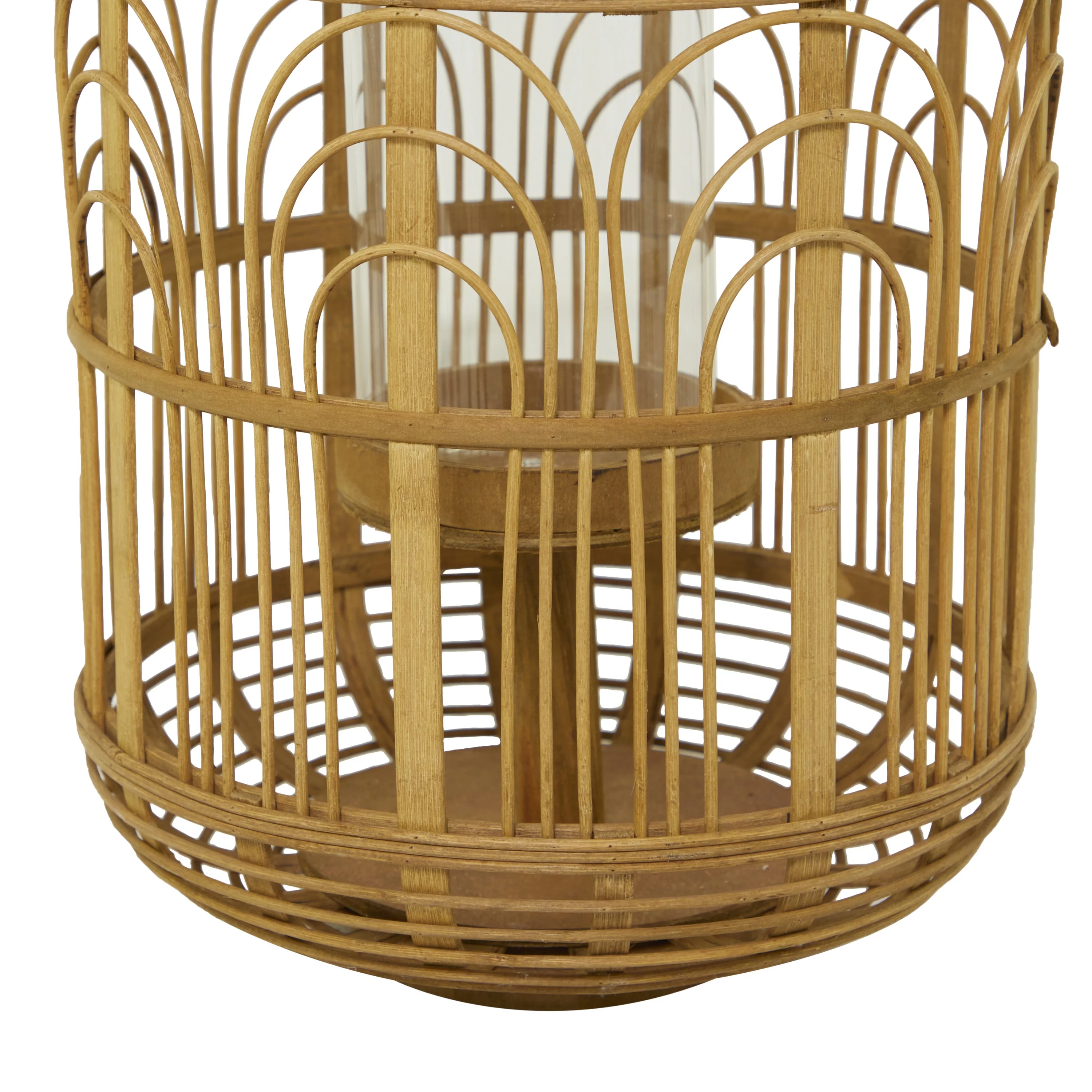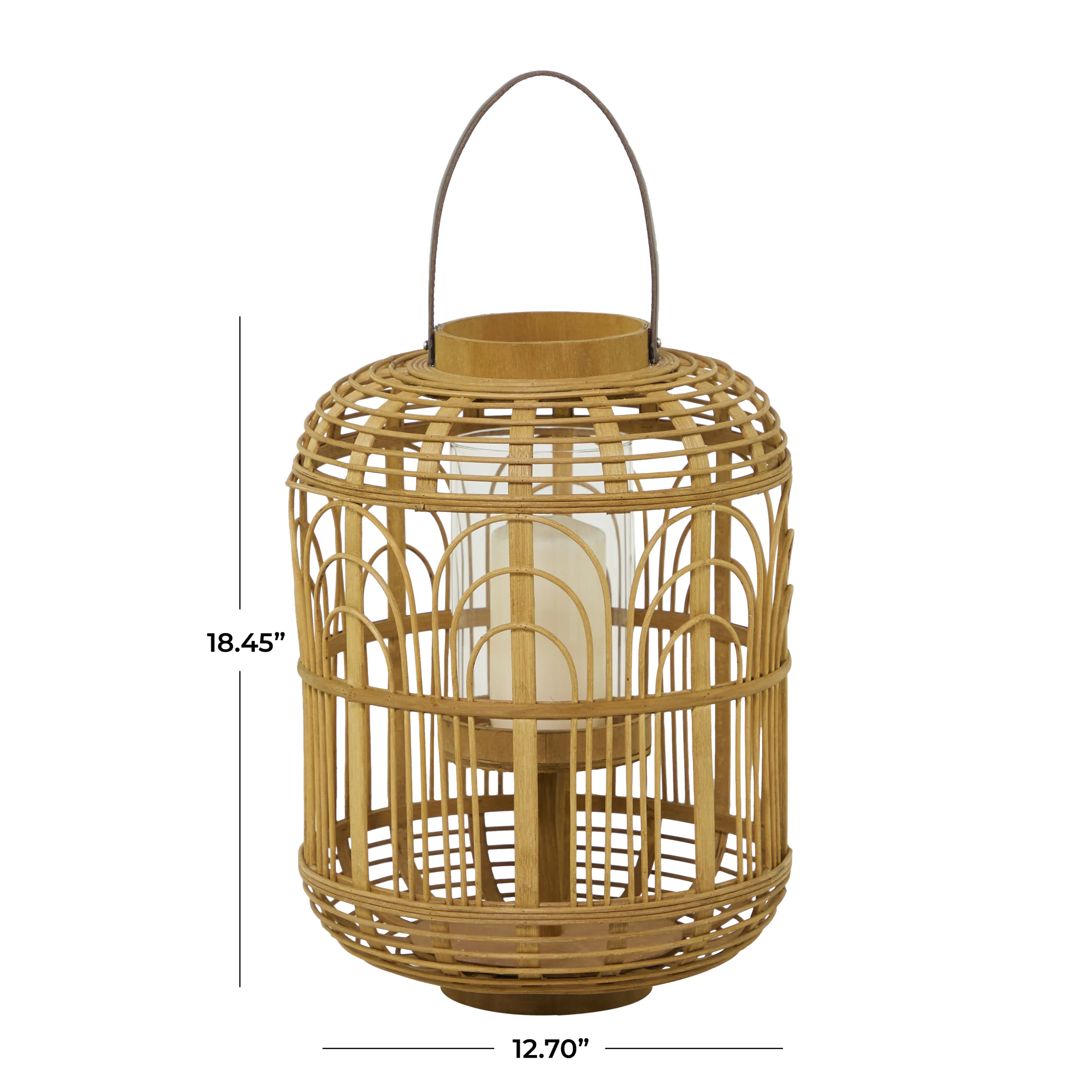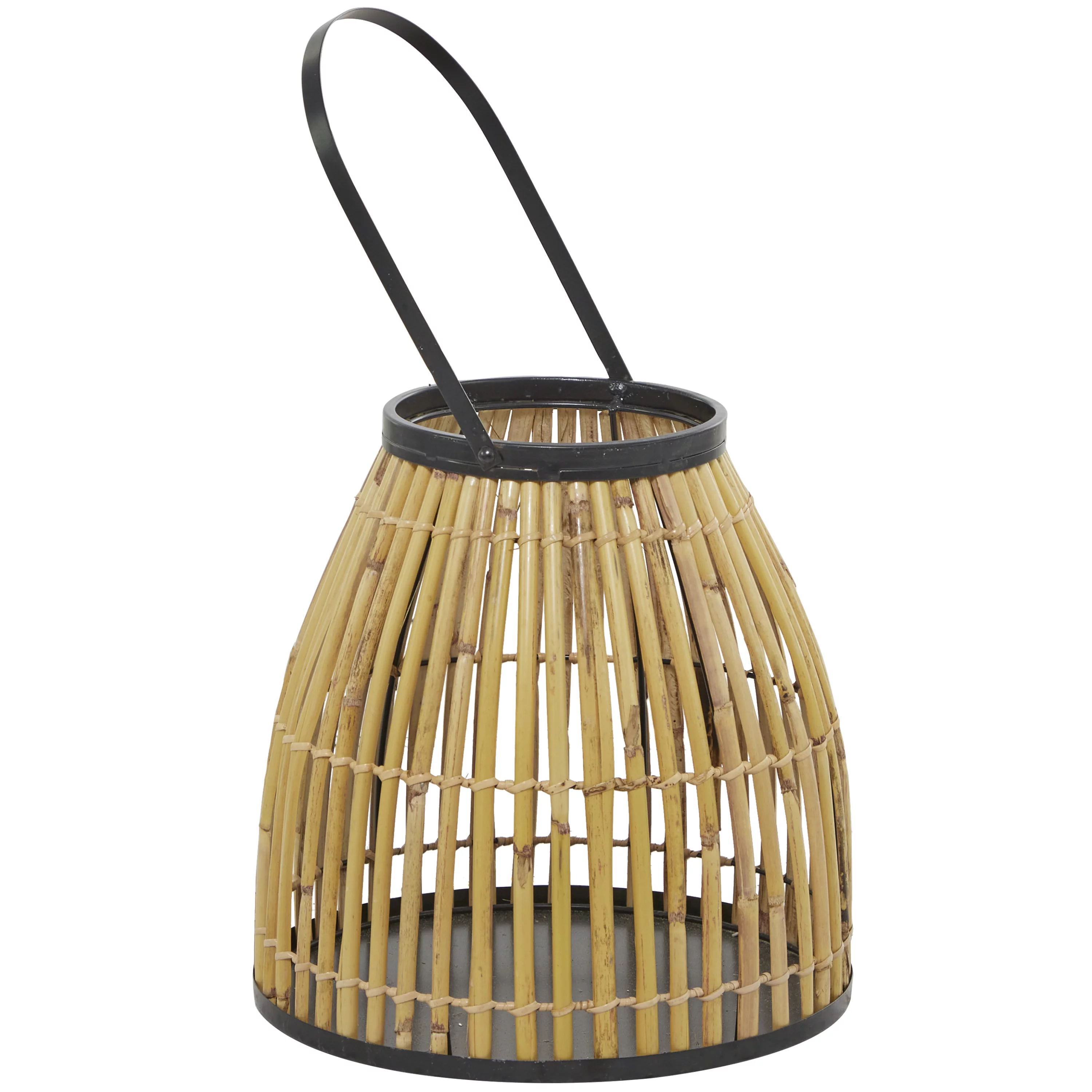 The Novogratz Brown Bamboo Handmade Decorative Candle Lantern with Handle