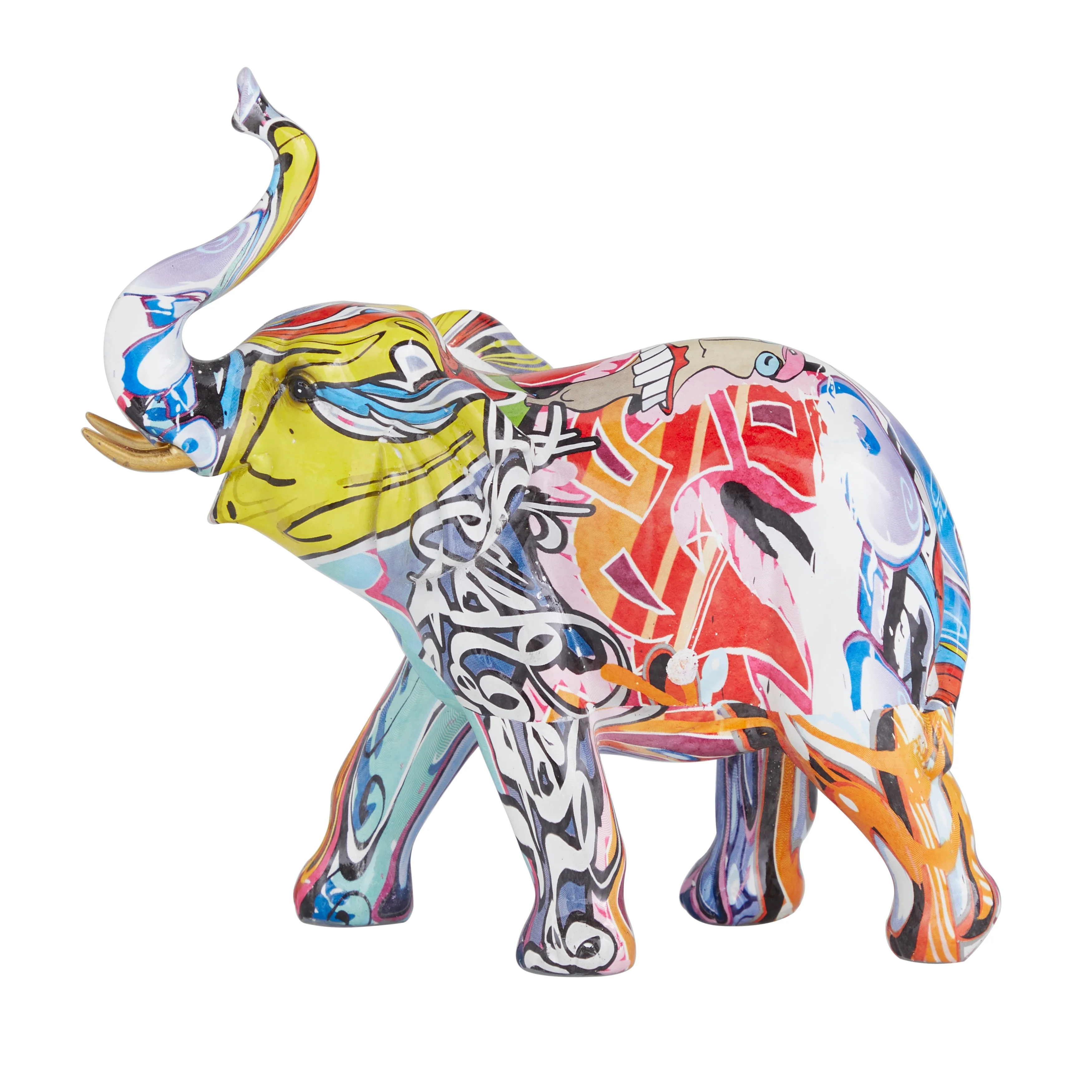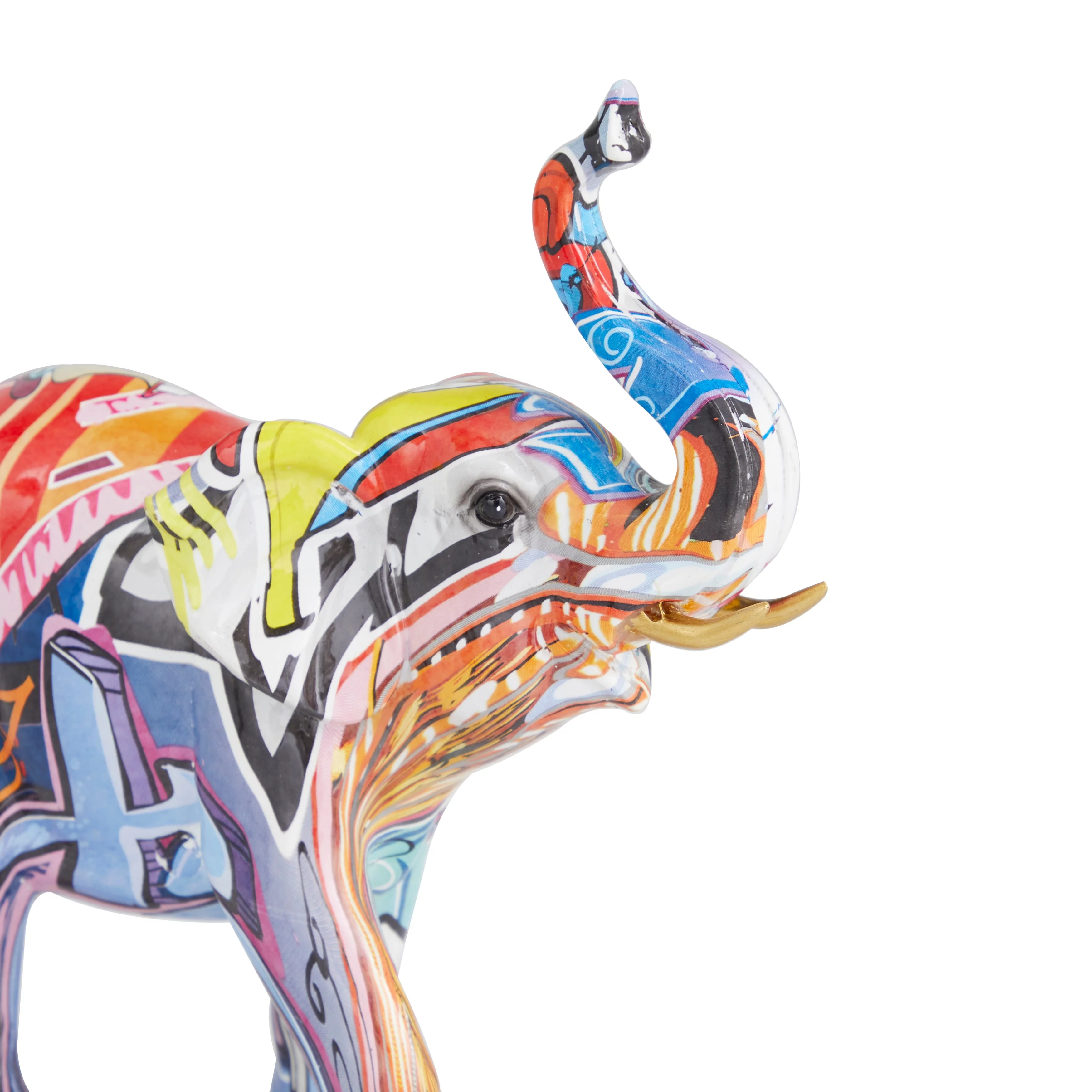 The Novogratz Multi Colored Polystone Graffiti Elephant Sculpture 17"L x 7"W x 12"H