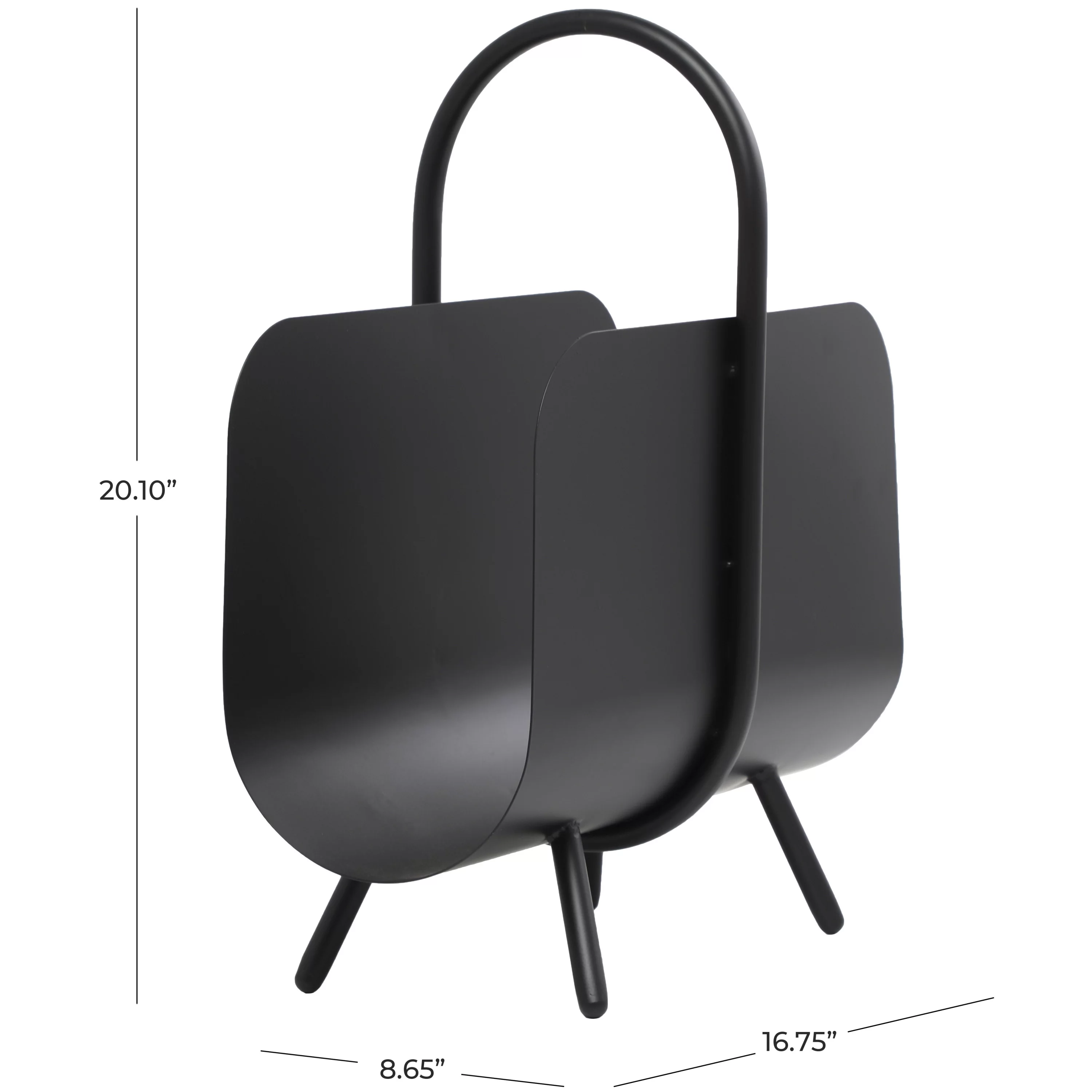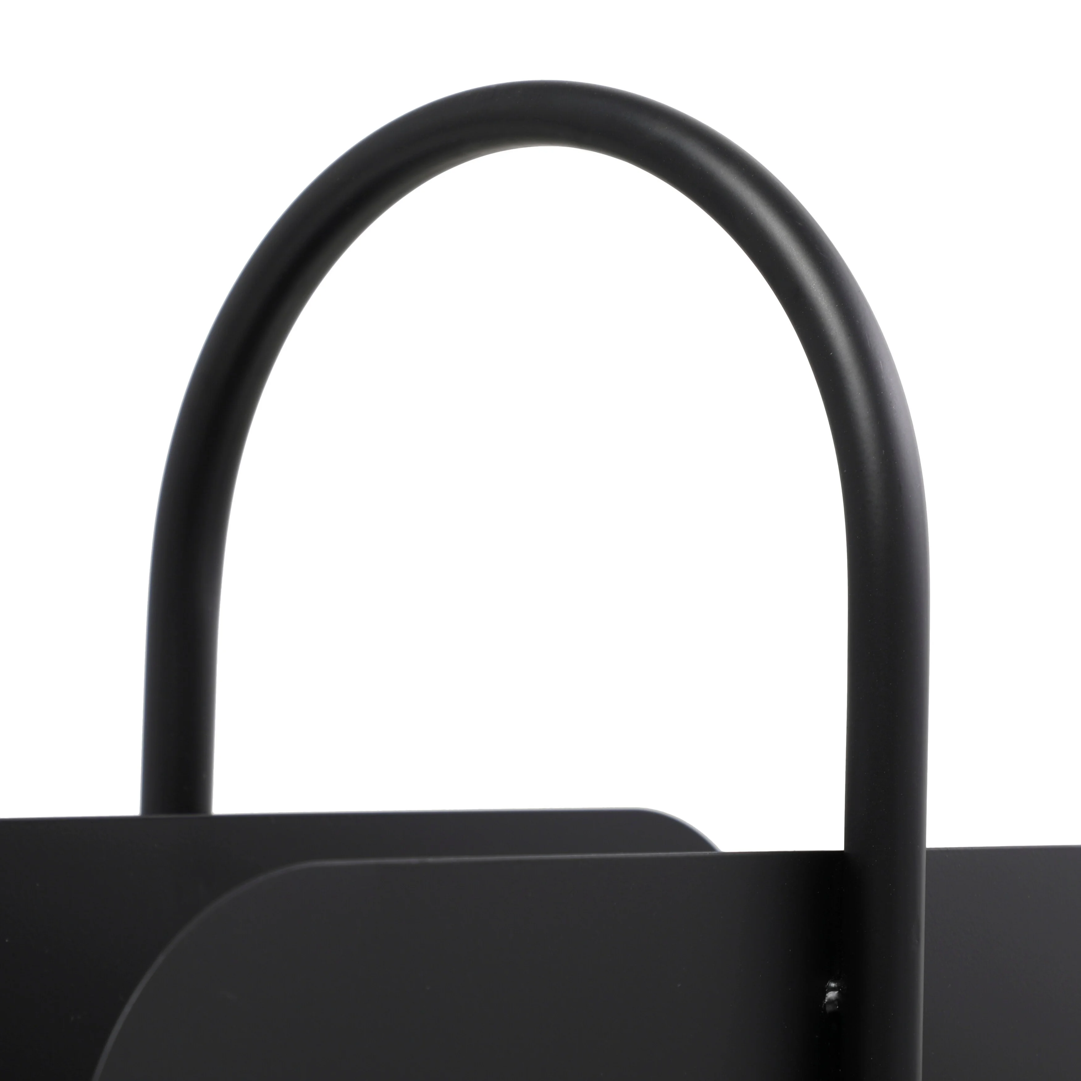 The Novogratz 20" Black Metal Curved Magazine Holder with Arched Handle and Flared Legs