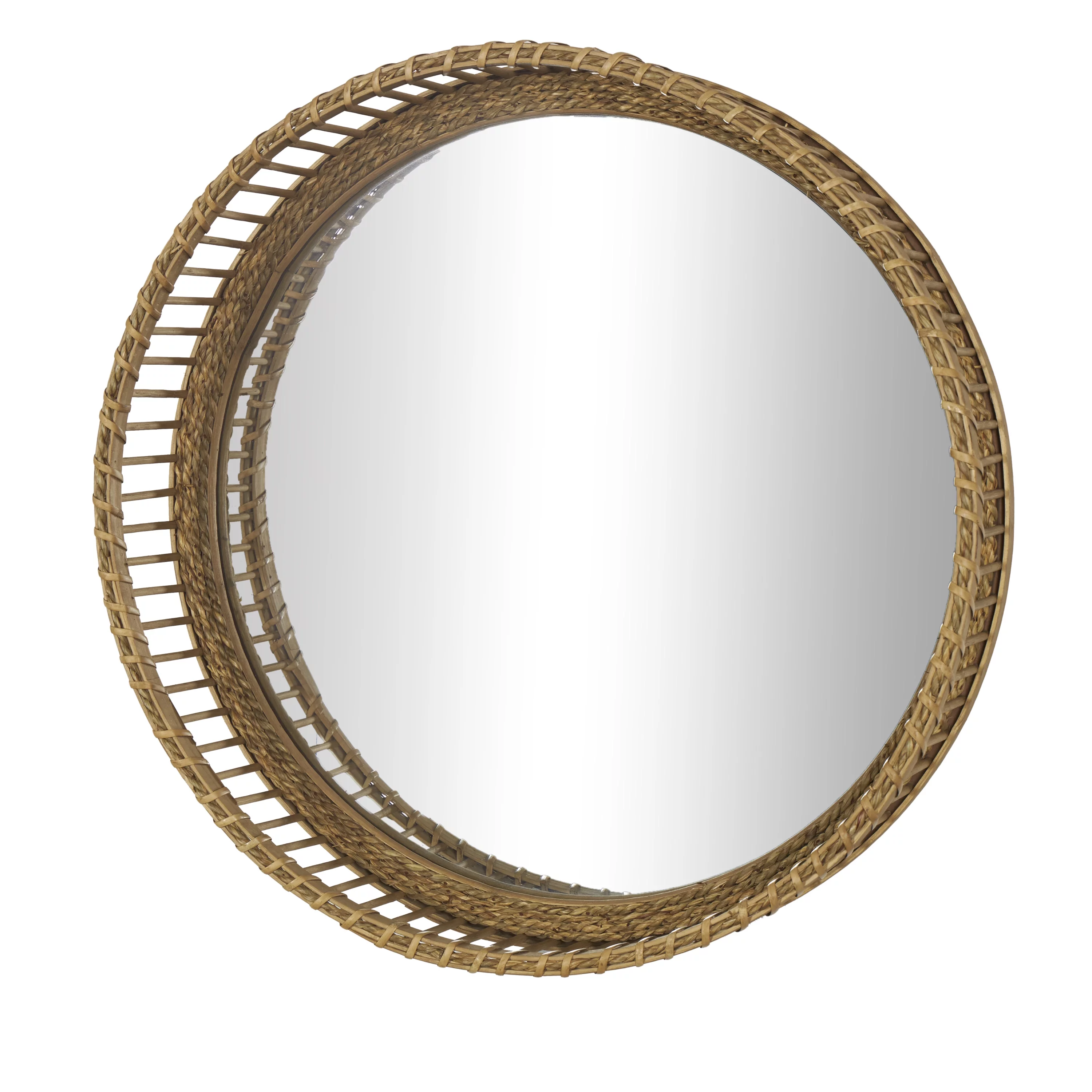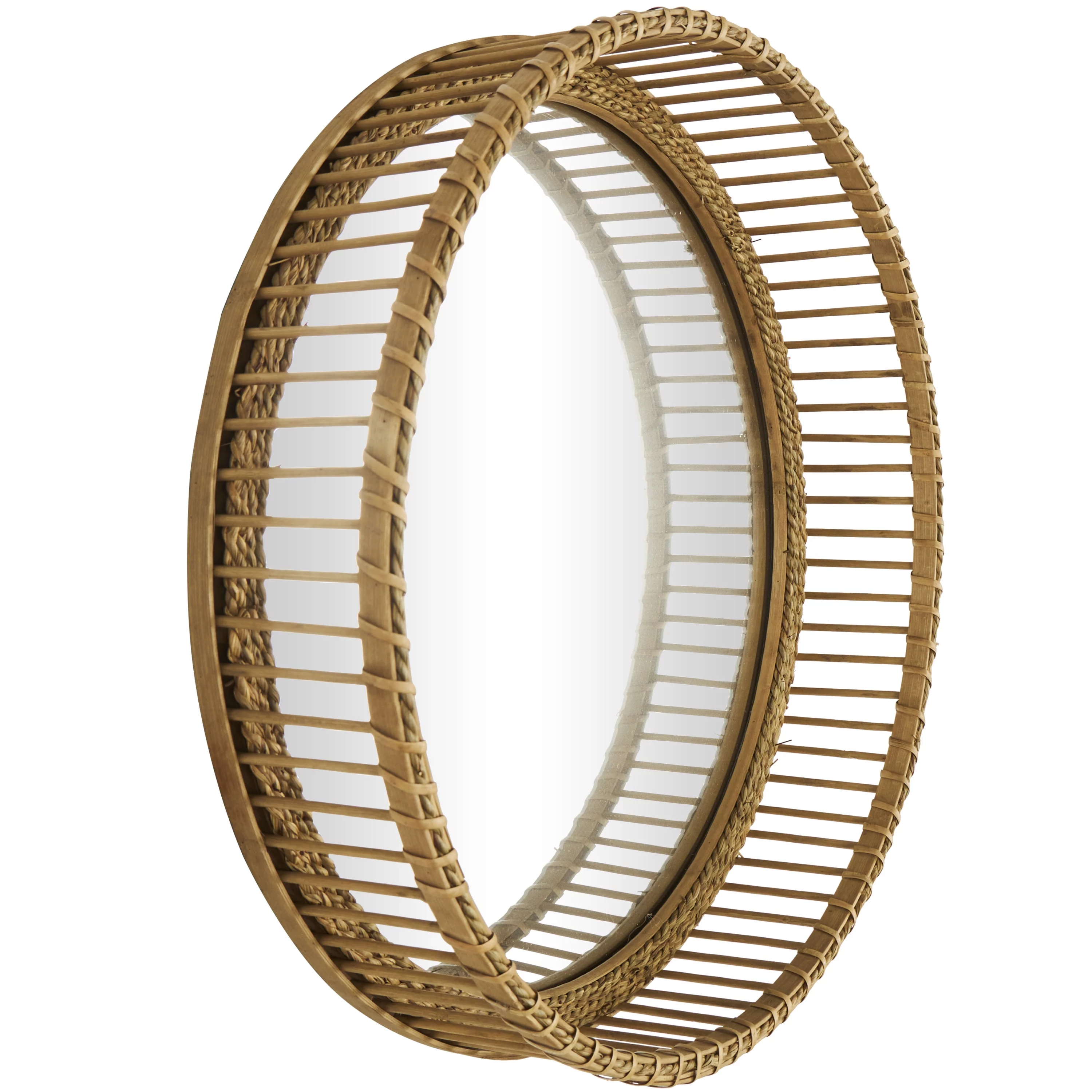 The Novogratz Brown Wicker Handmade Slatted Frame Decorative Candle Lantern with Handle