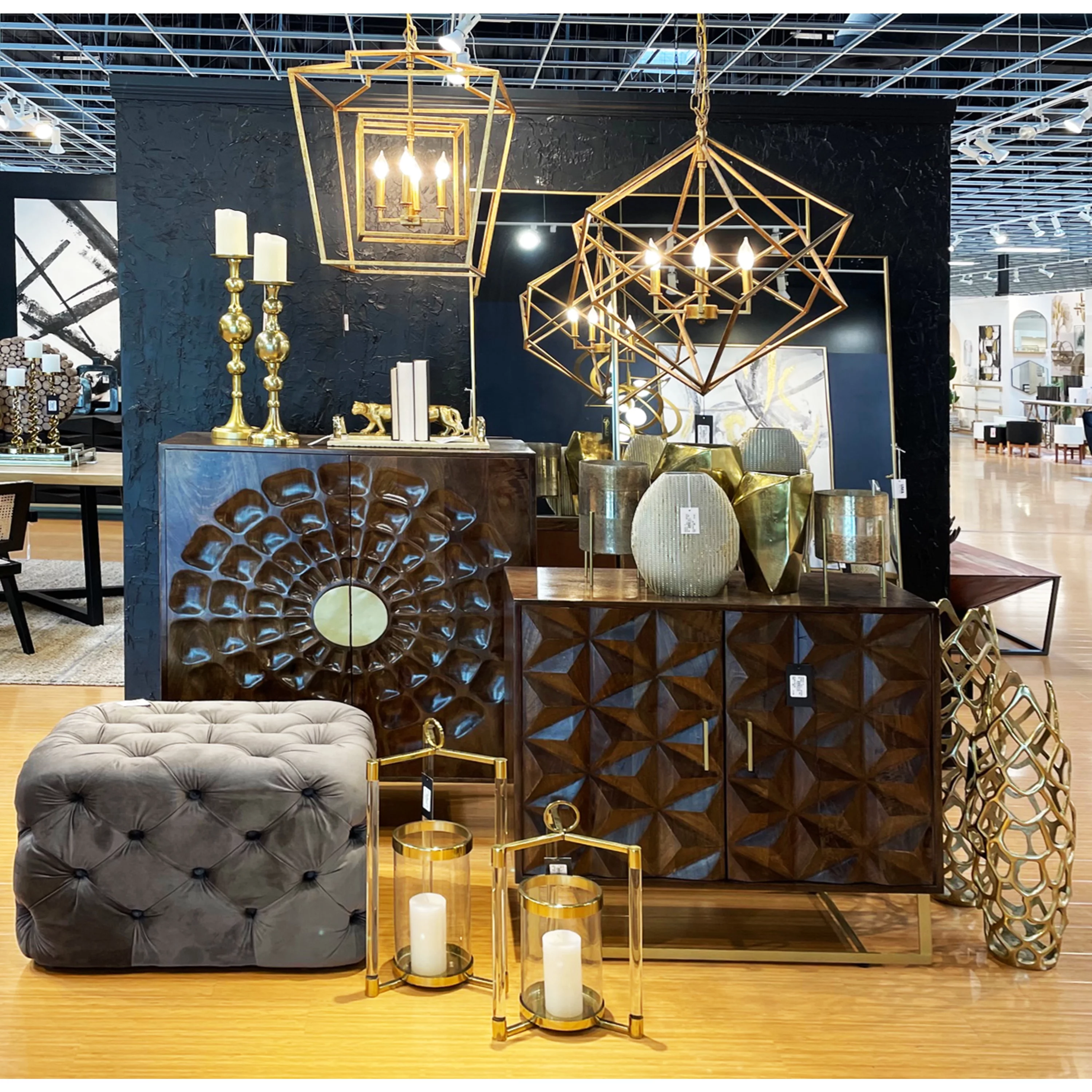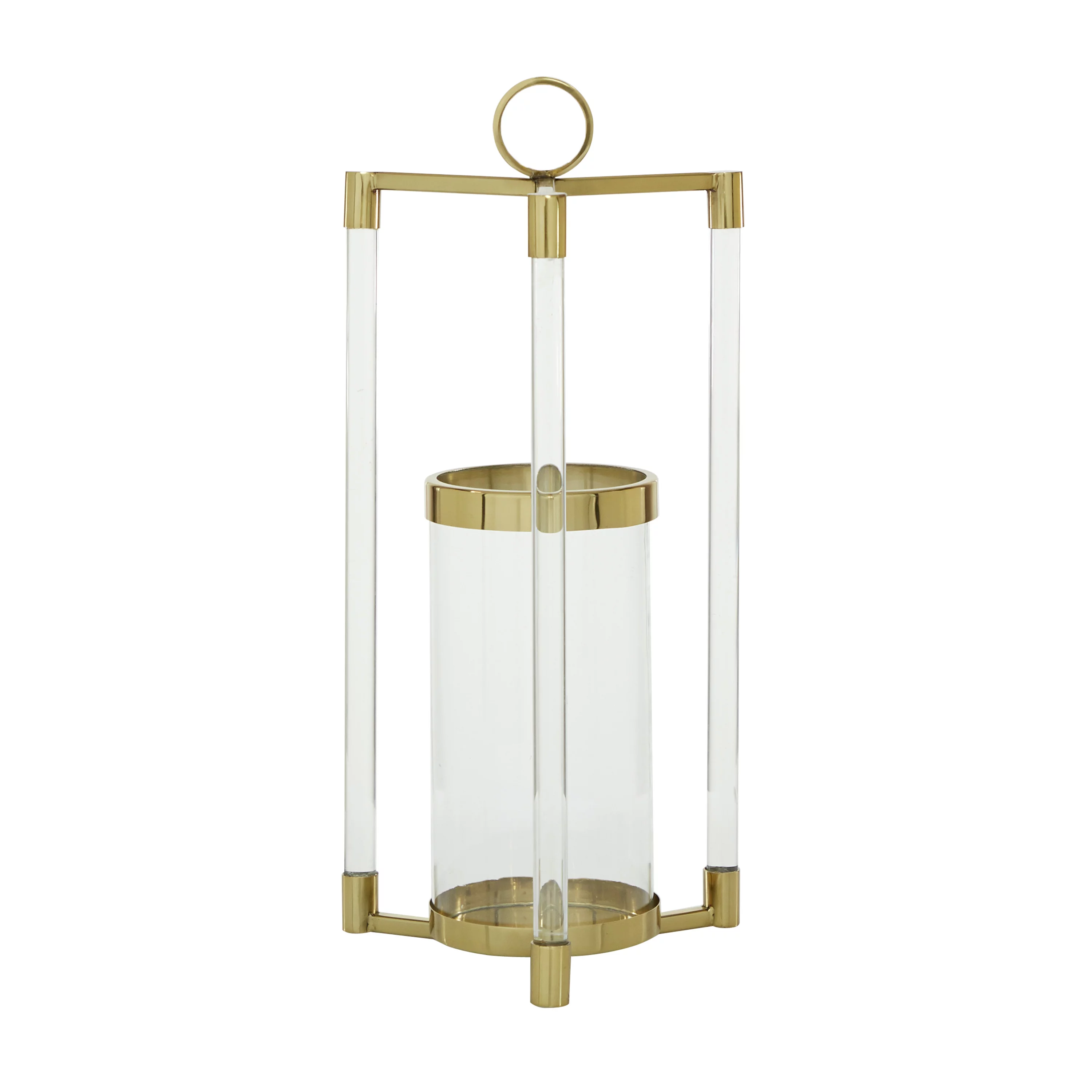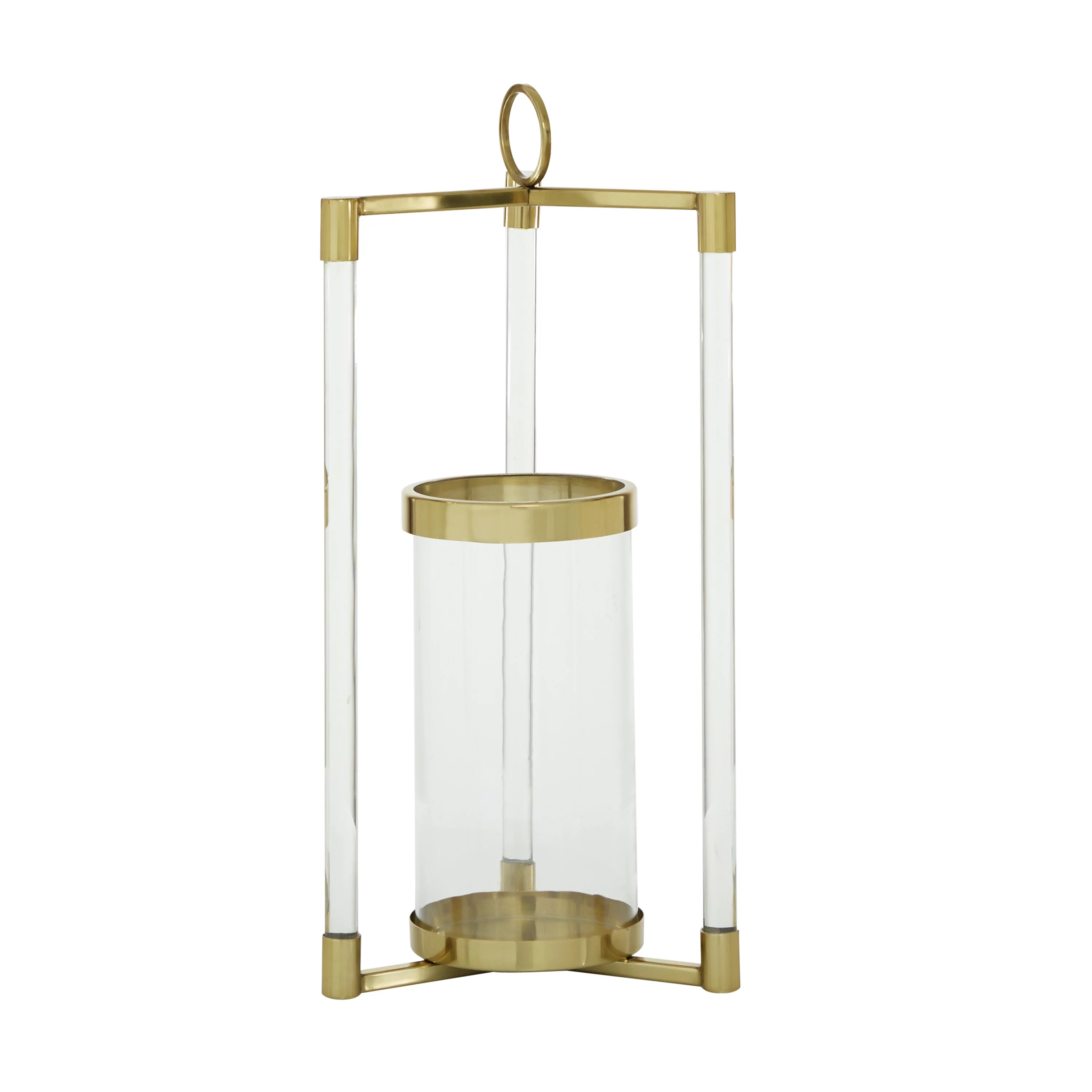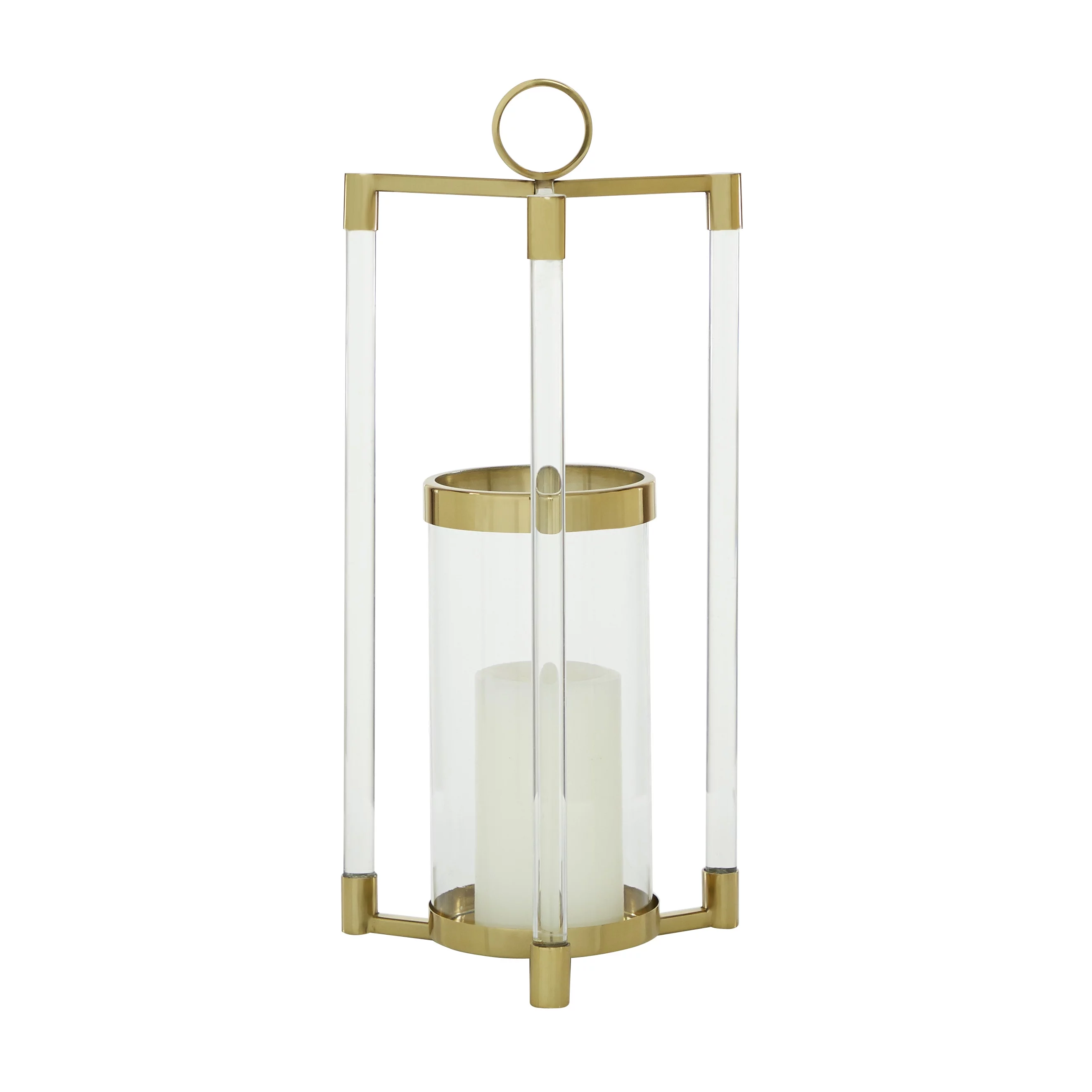 The Novogratz Gold Stainless Steel Decorative Candle Lantern with Acrylic Accents