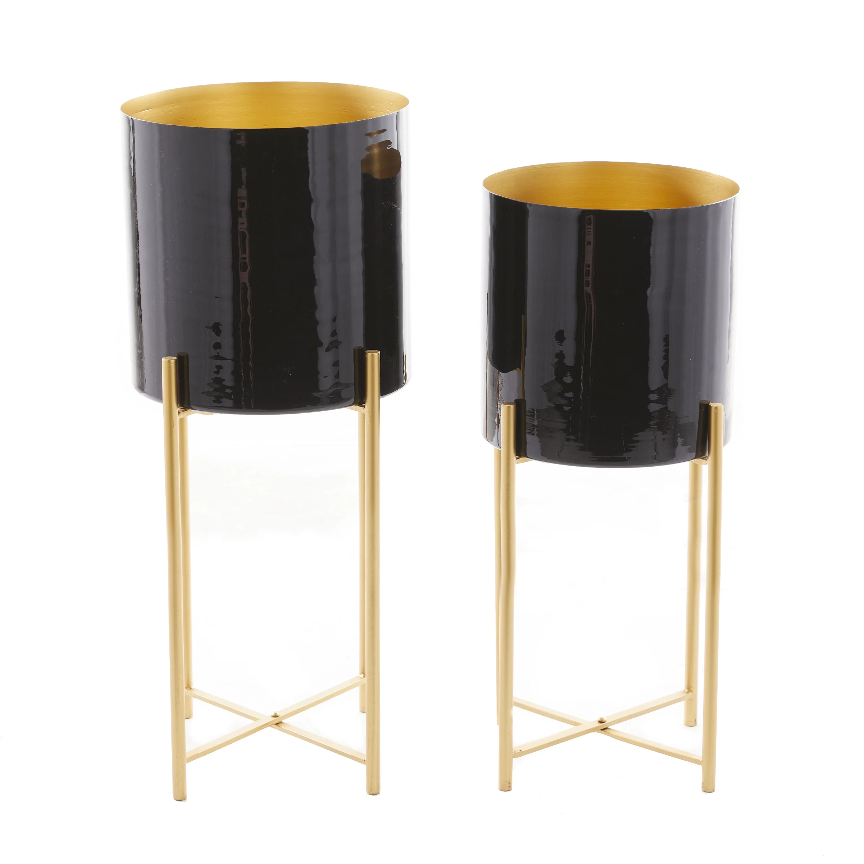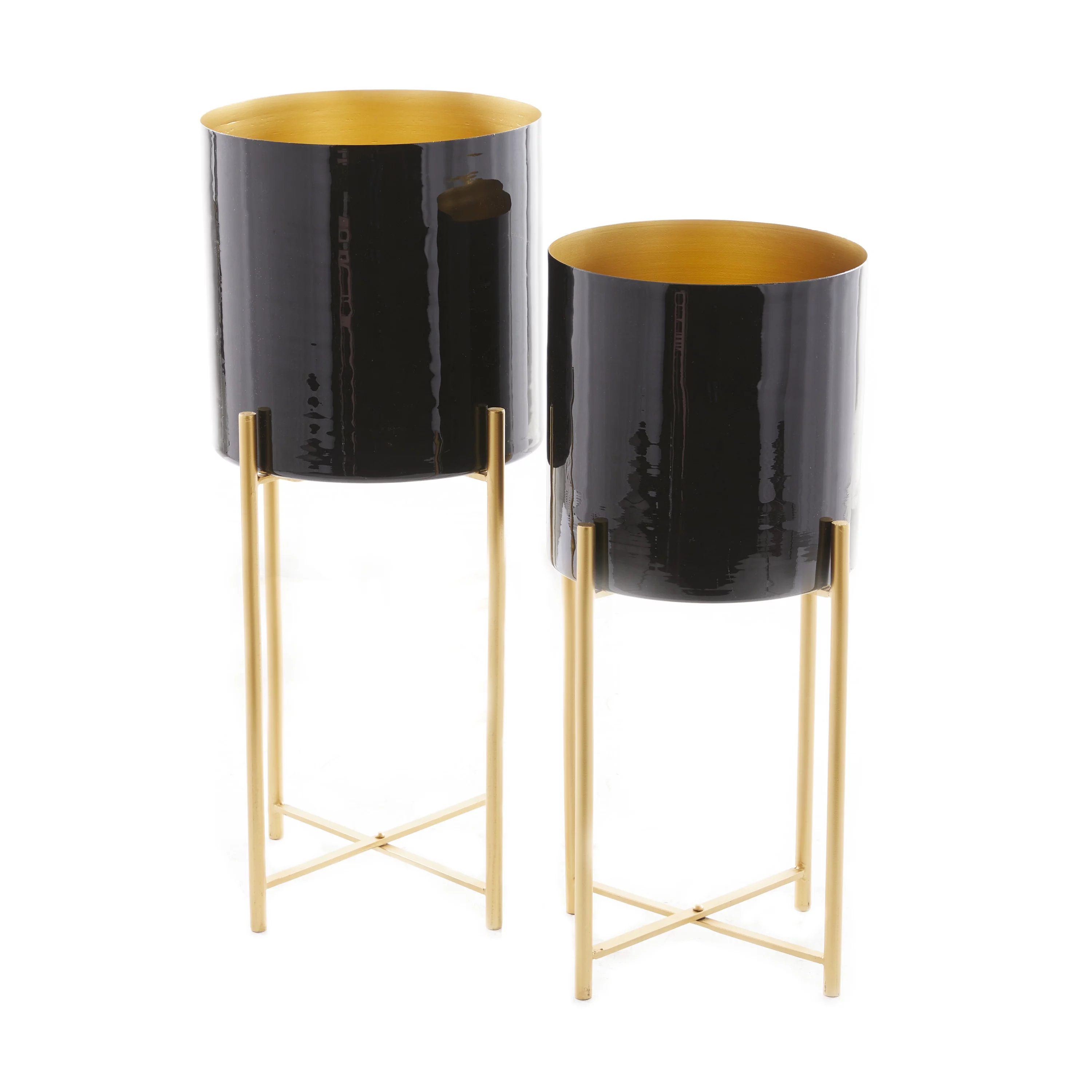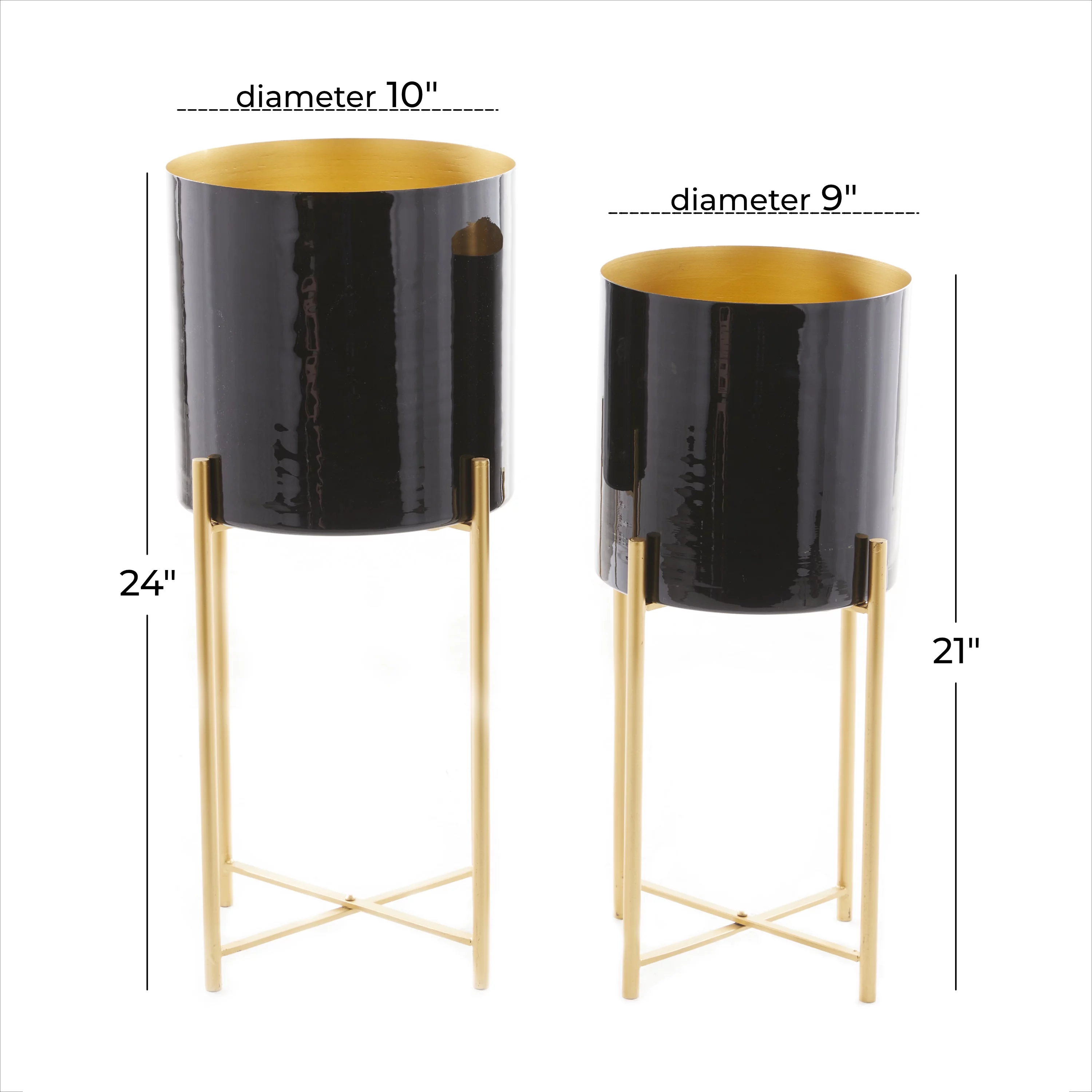 CosmoLiving by Cosmopolitan 24", 21"H Indoor Outdoor Black Metal Planter with Removable Stand (2 Count)