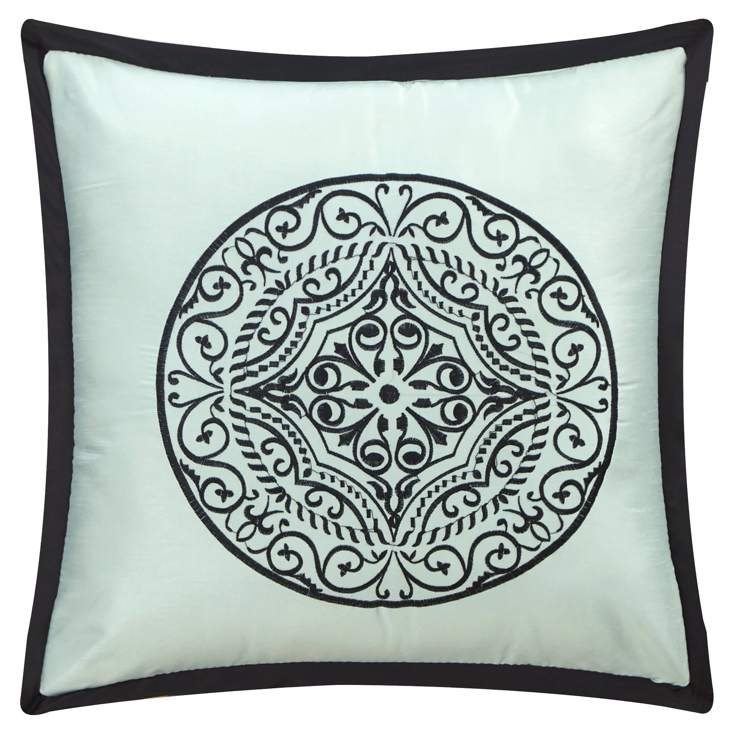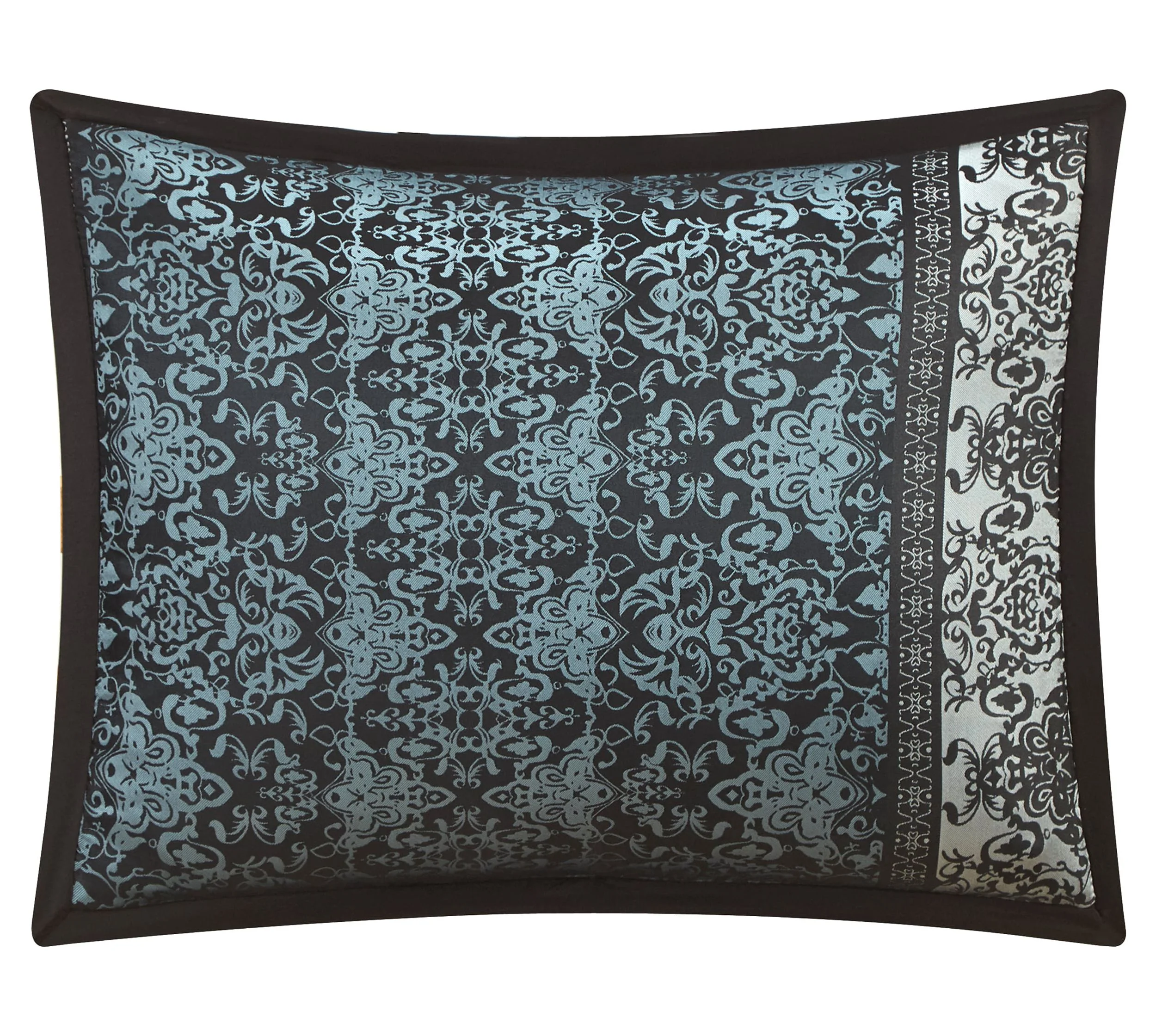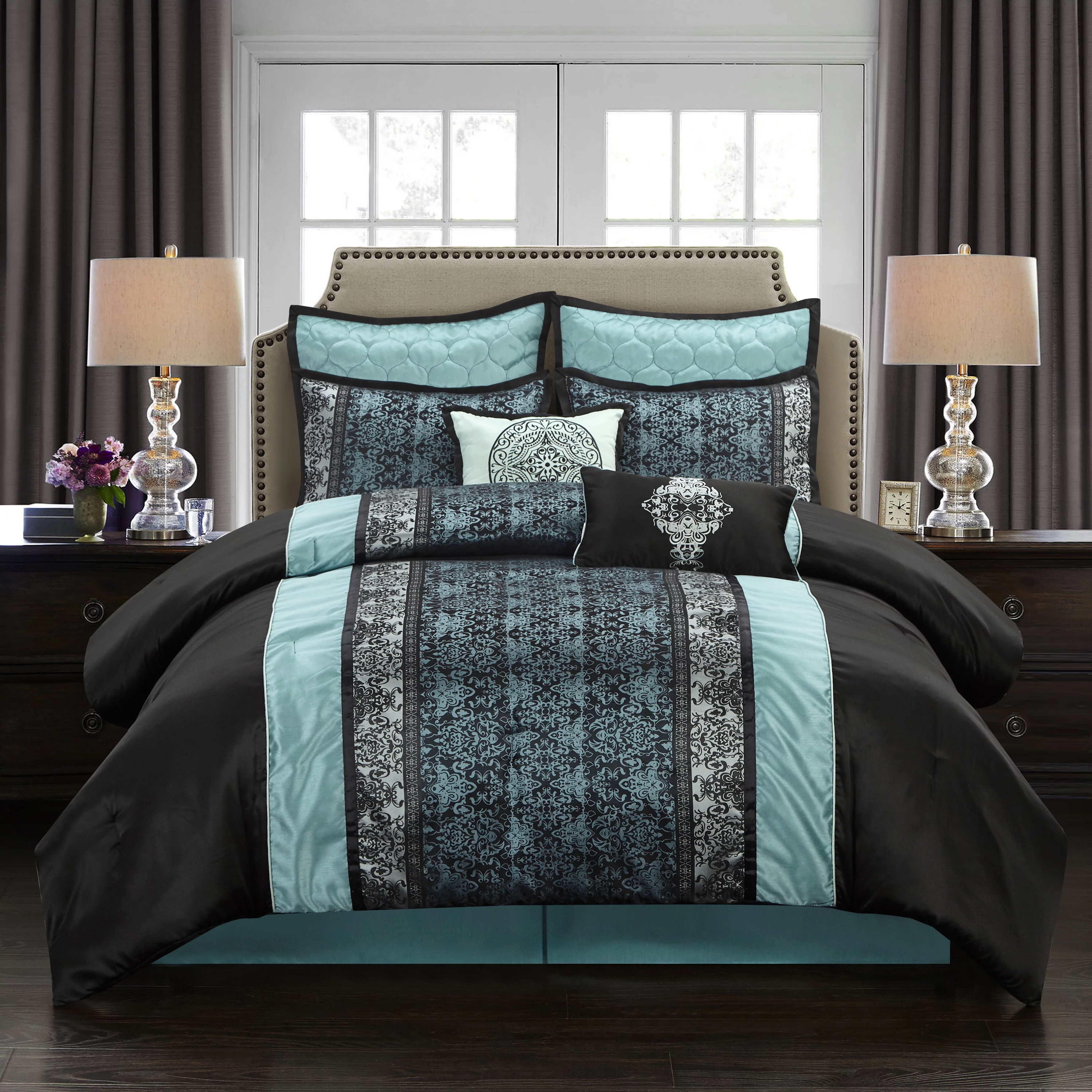 Nanshing Arabesque 8 Piece Damask Jacquard Comforter Set, Black/Blue, Queen