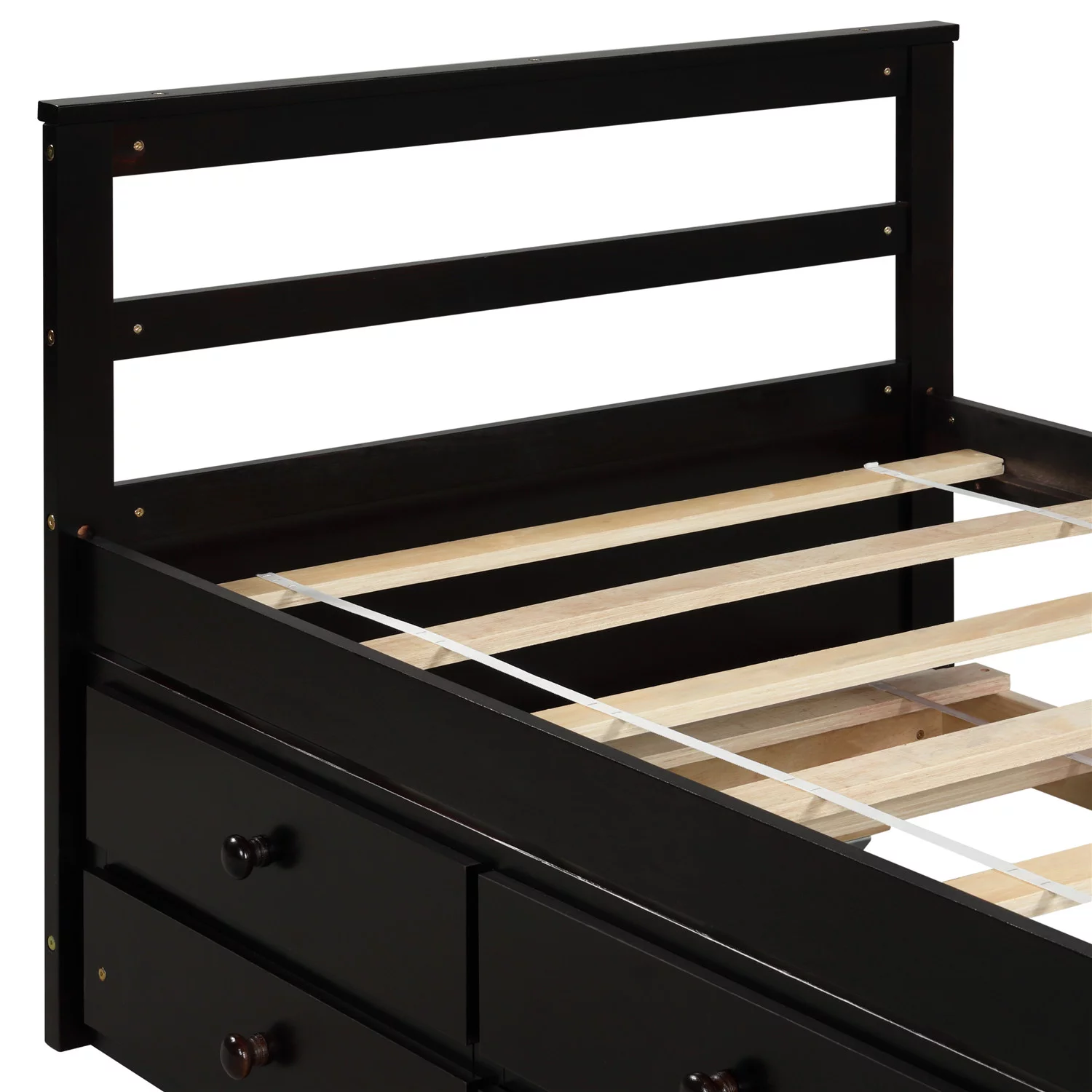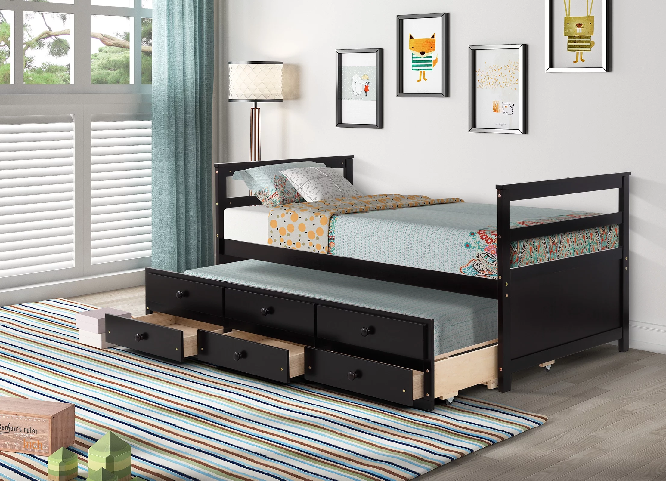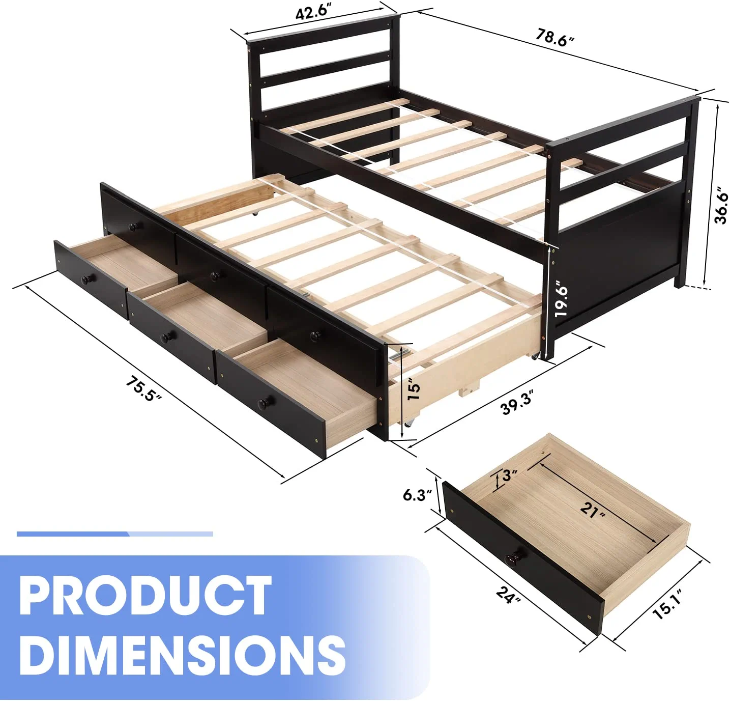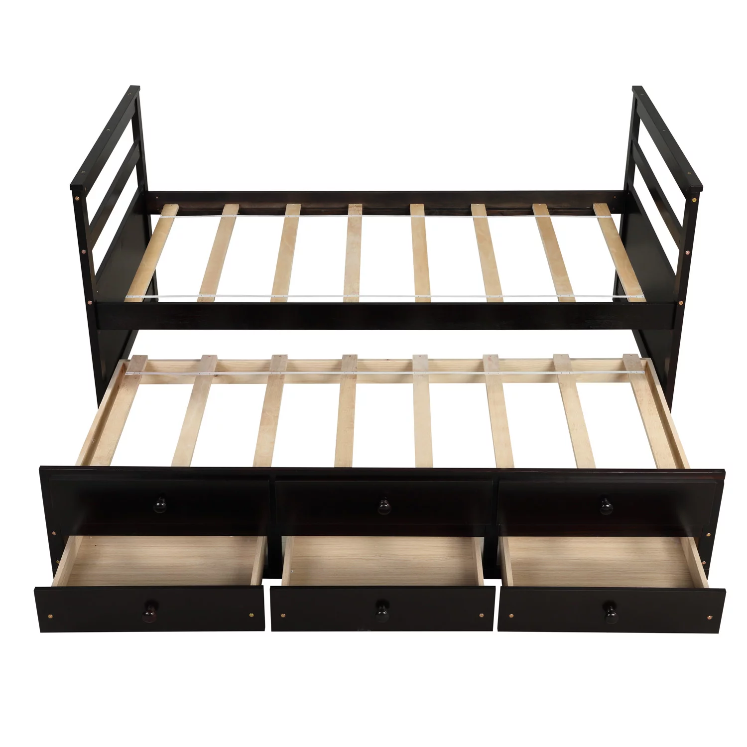 Superjoe Twin Trundle Bed with 3 Drawers Captain Bed Daybed, Wood Frame with Storage, Great for Kids Teens Guests, Brown