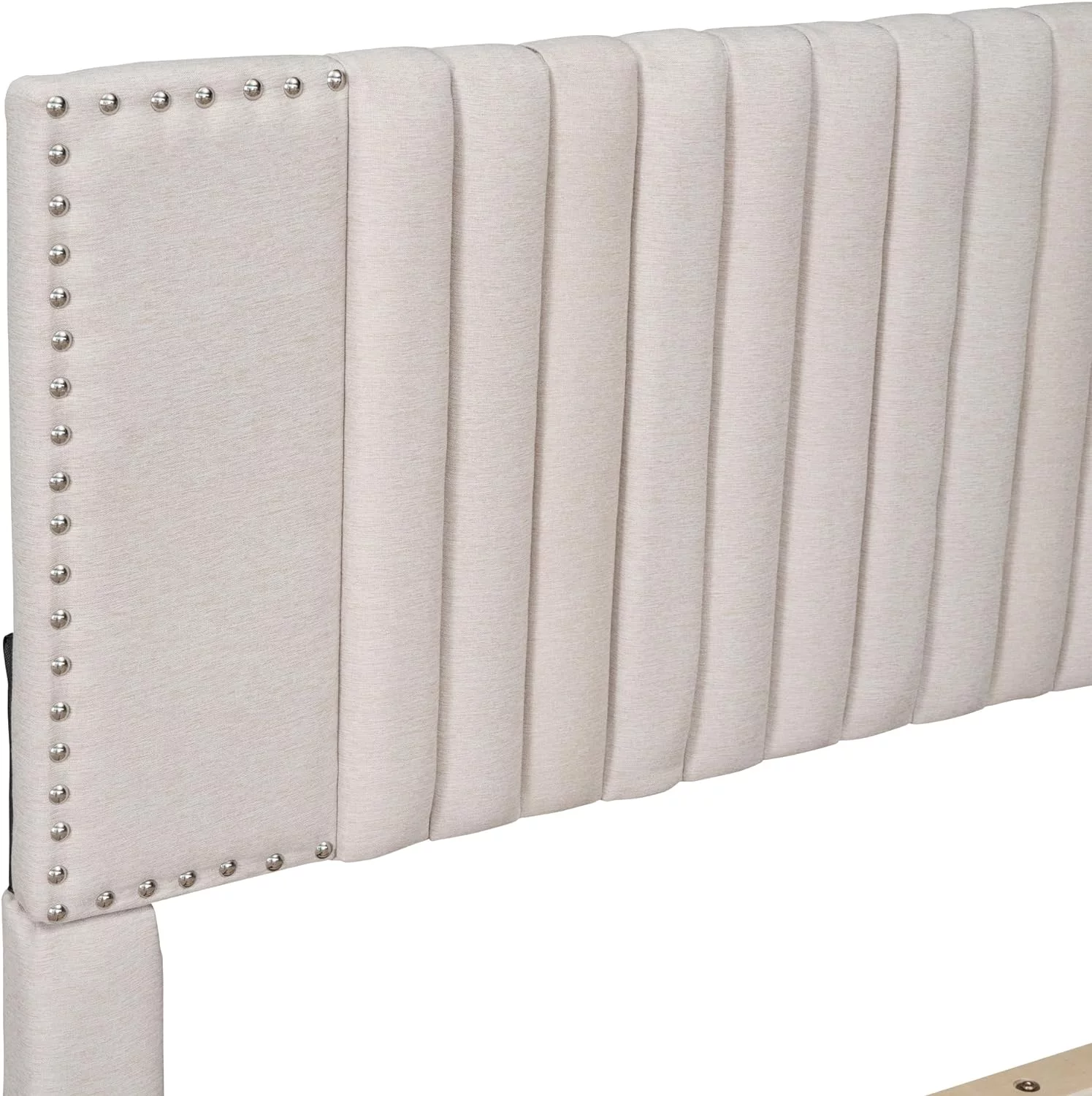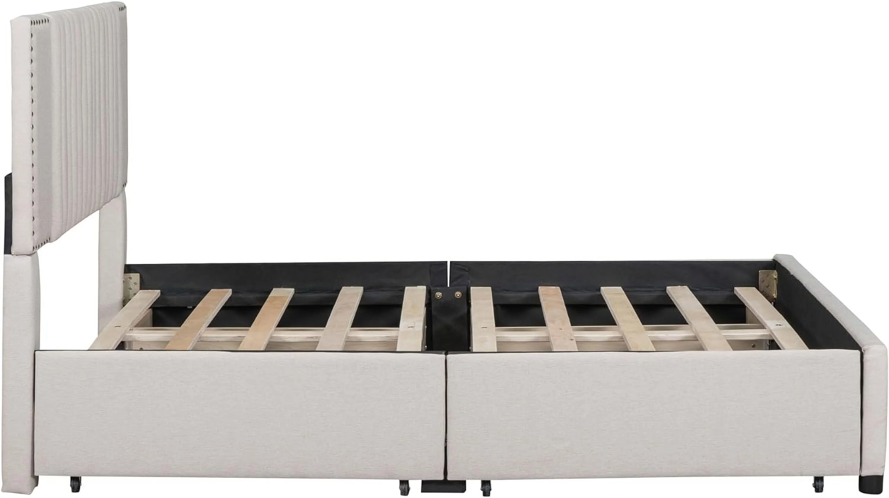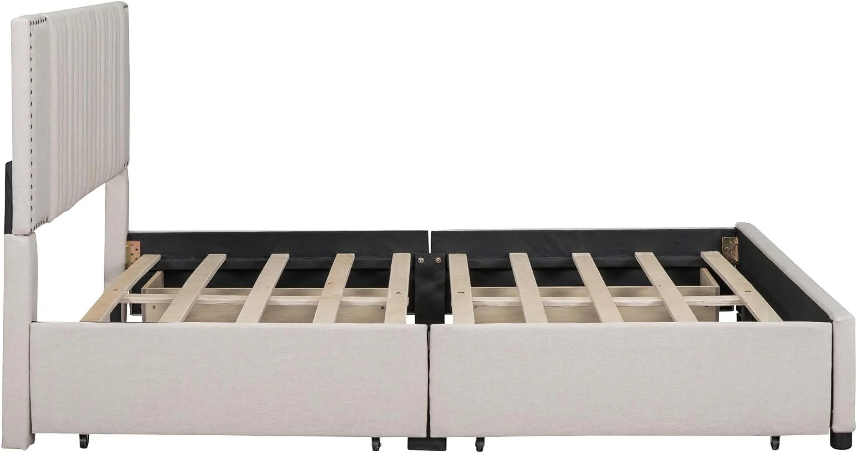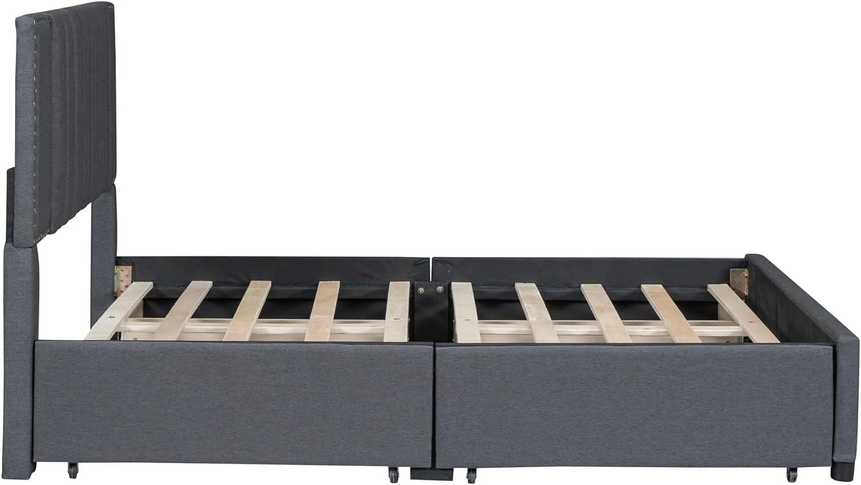 Upholstered Platform Queen Bed with Stud Trim Headboard and Footboard and 4 Drawers, Gray