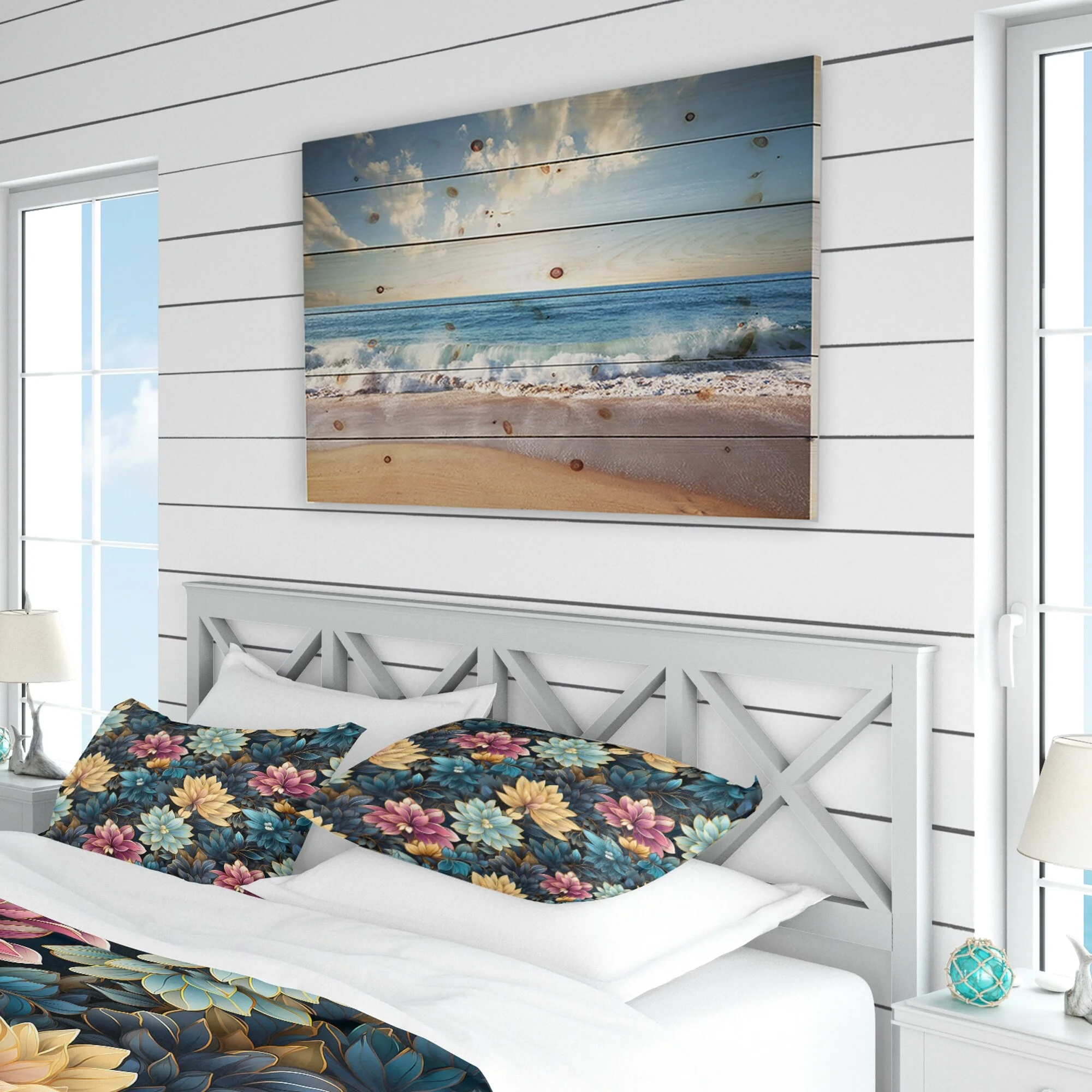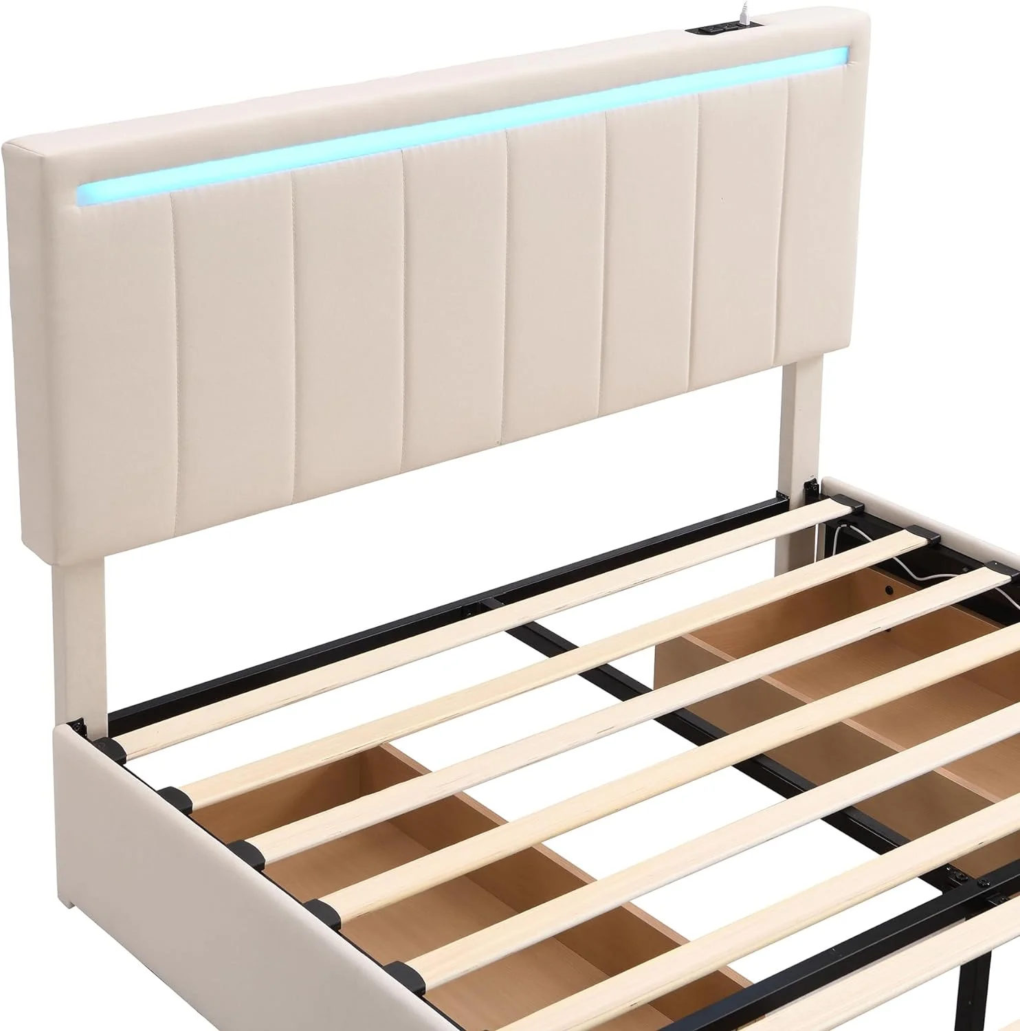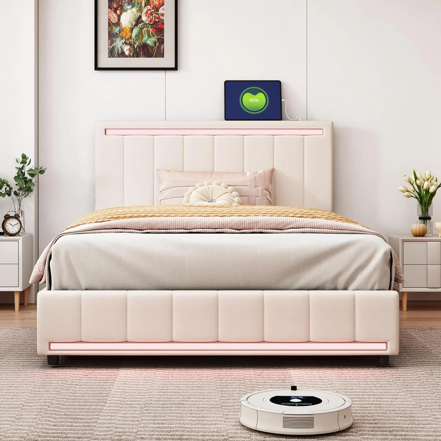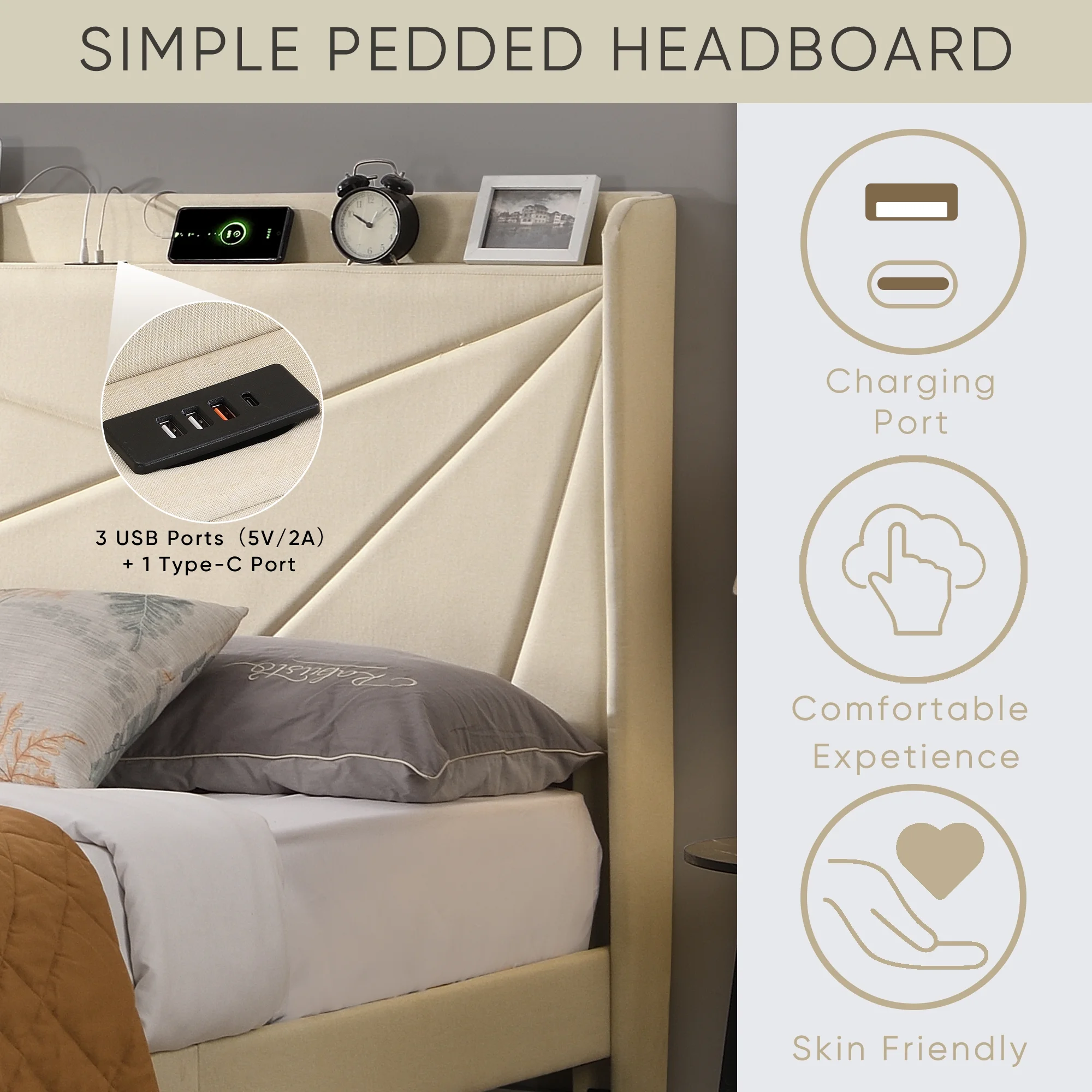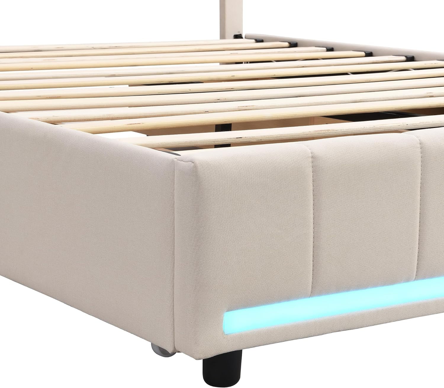 Upholstered Platform Queen Bed with Stud Trim Headboard and Footboard and 4 Drawers, Gray