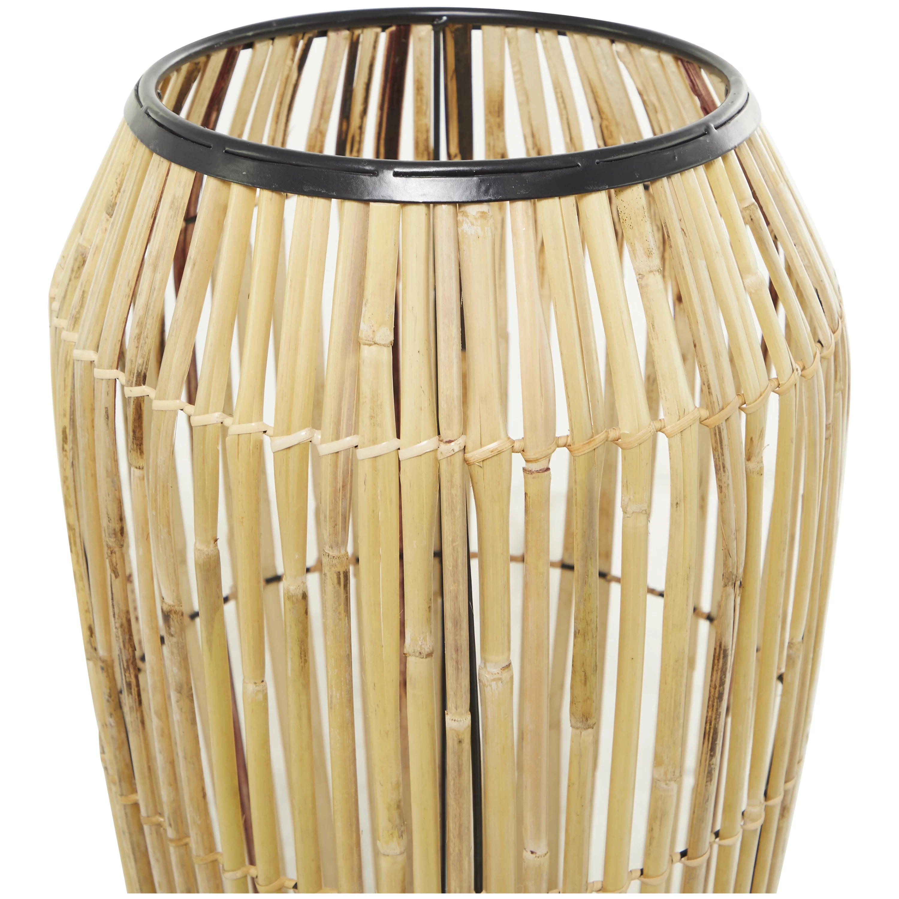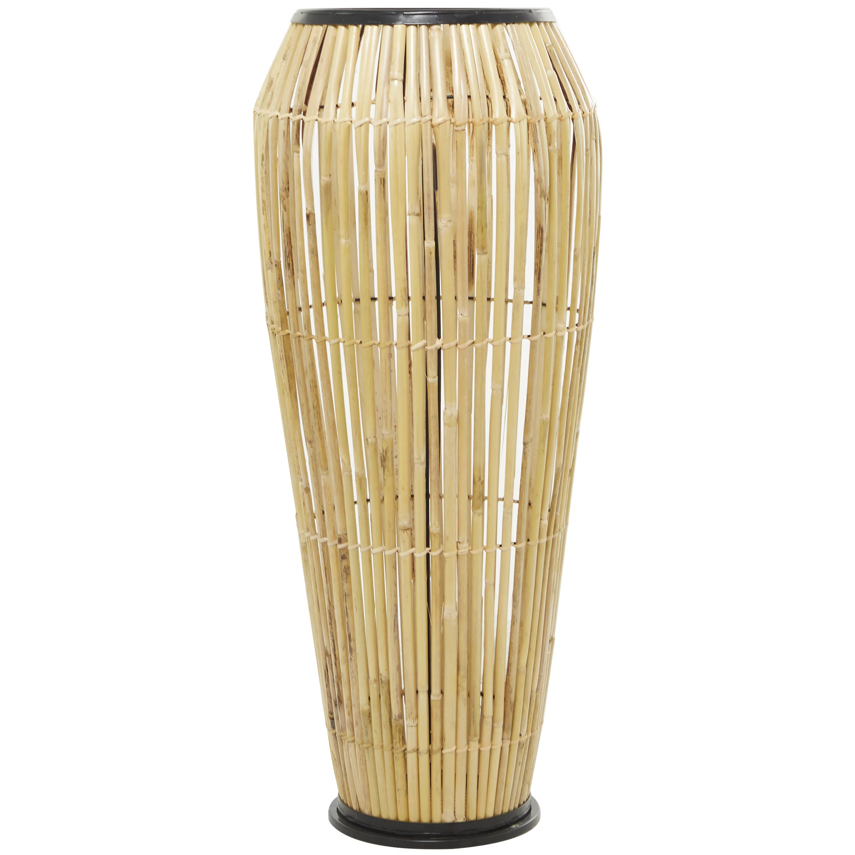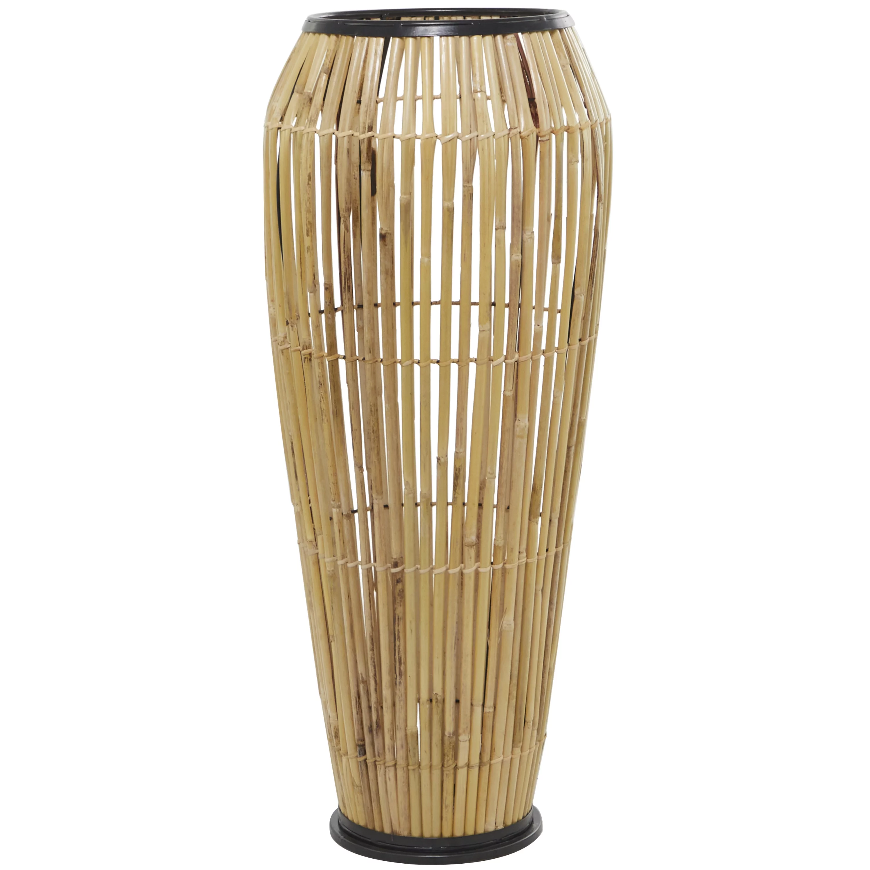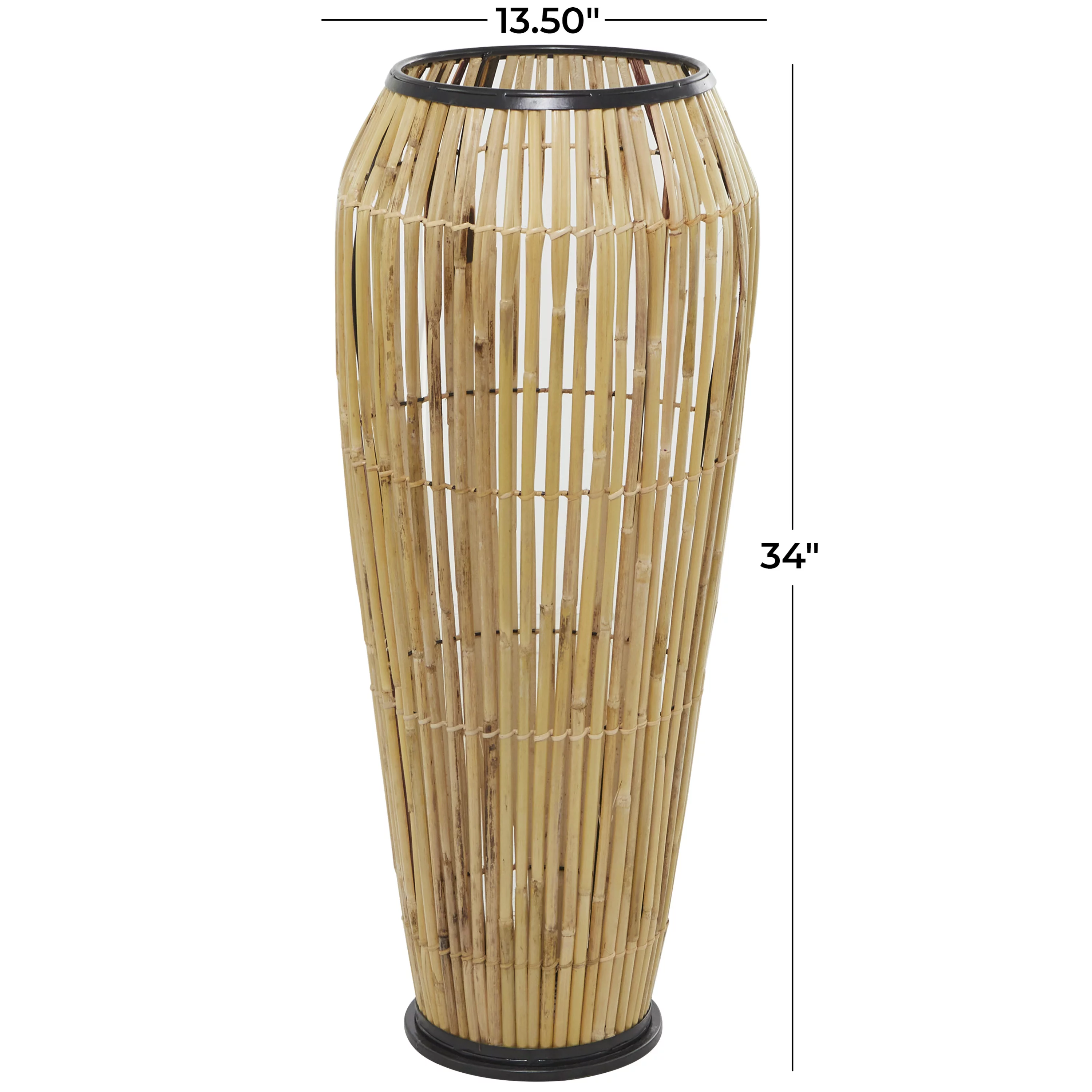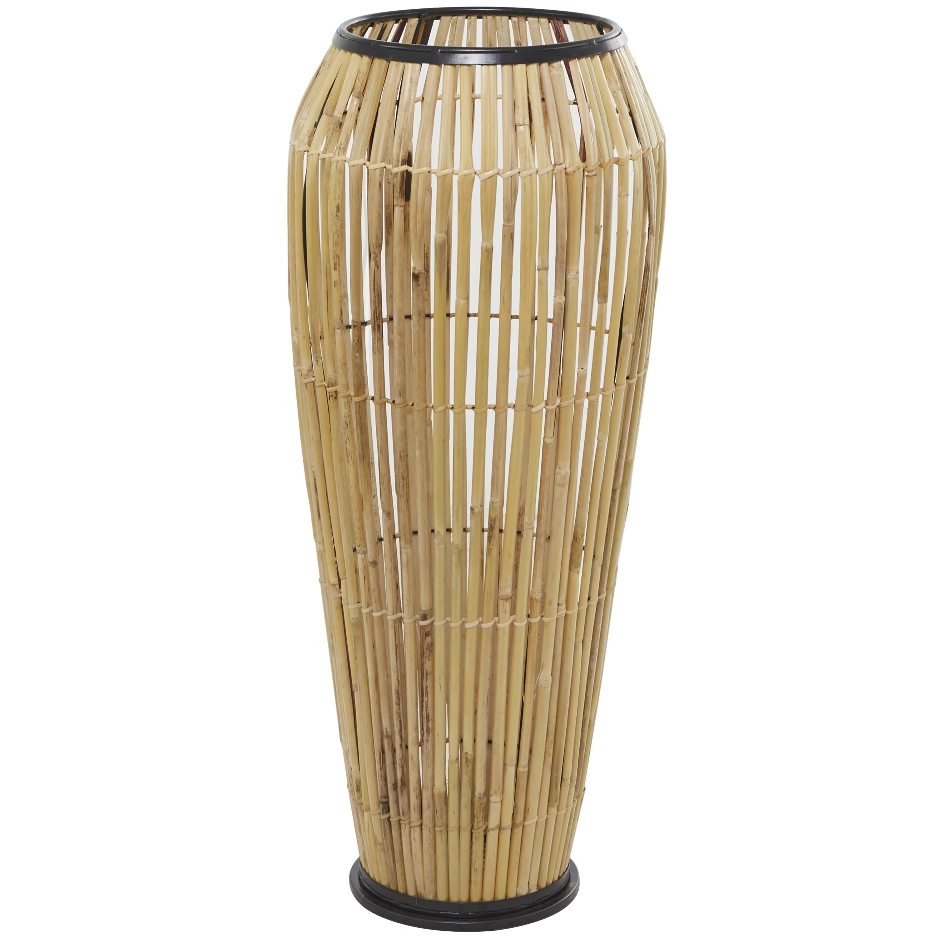 The Novogratz 34" Handmade Slatted Frame Brown Wicker Vase with Black Metal Accents