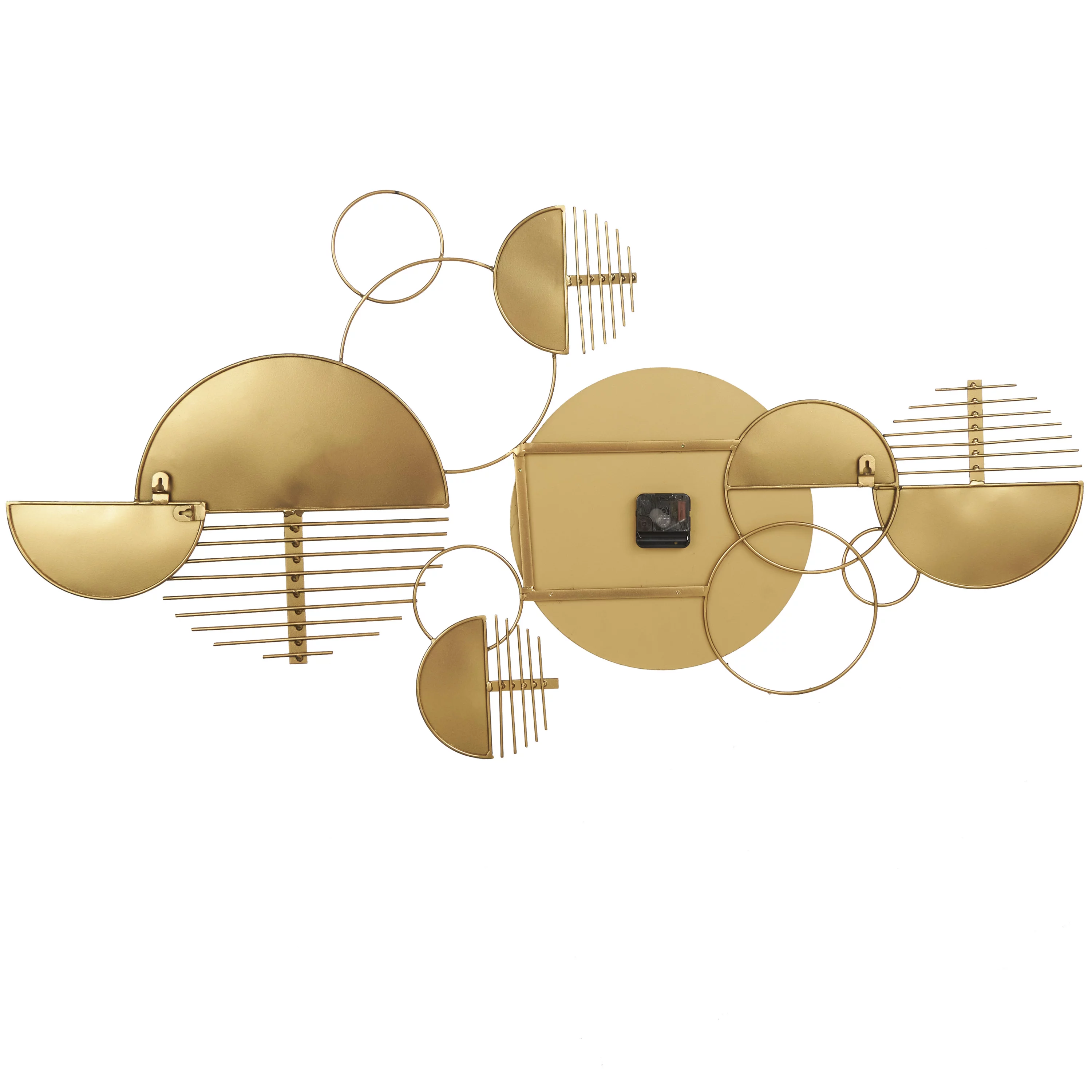 The Novogratz 44" x 23" Black Metal Geometric Half Moon Wall Clock with Adjustable Clock Face