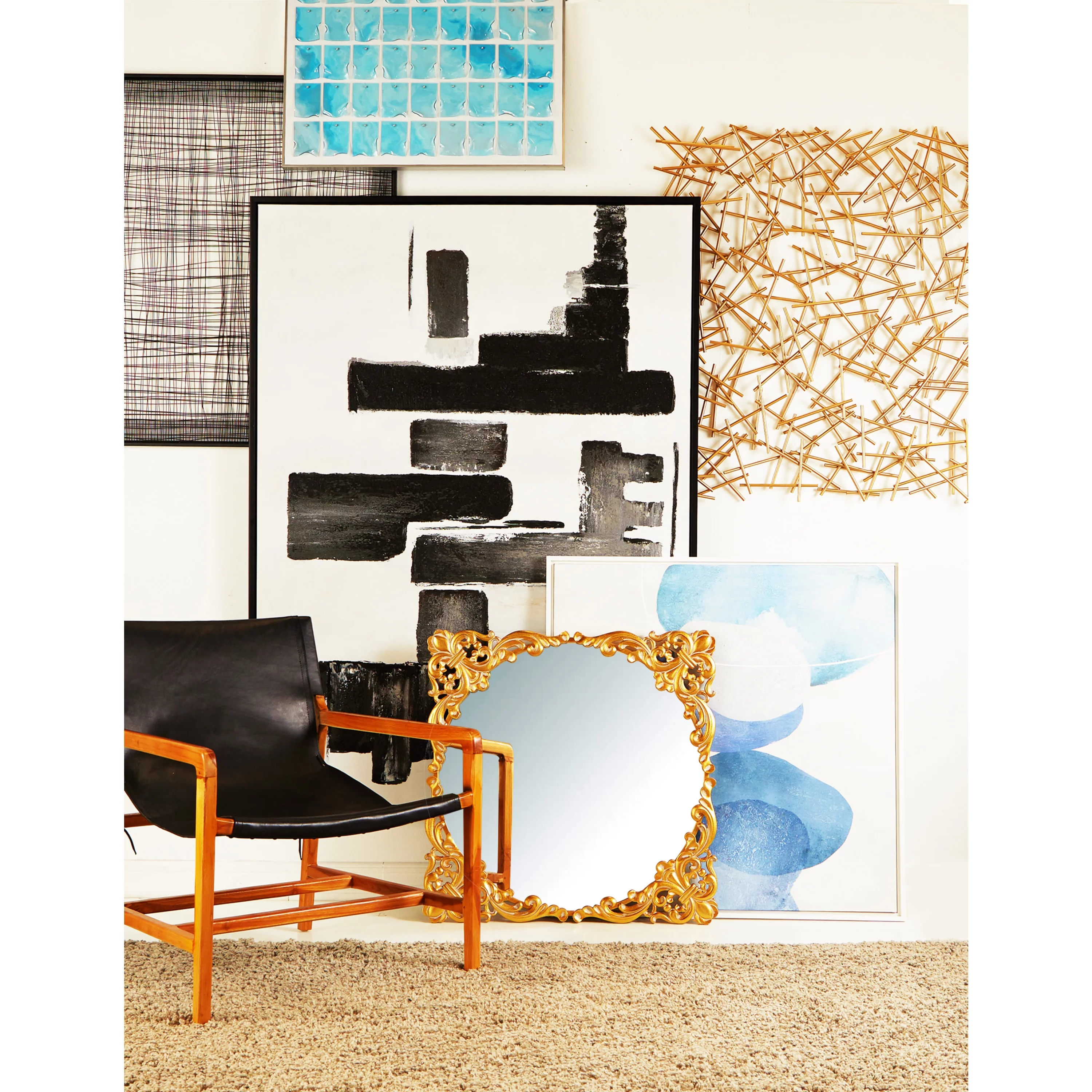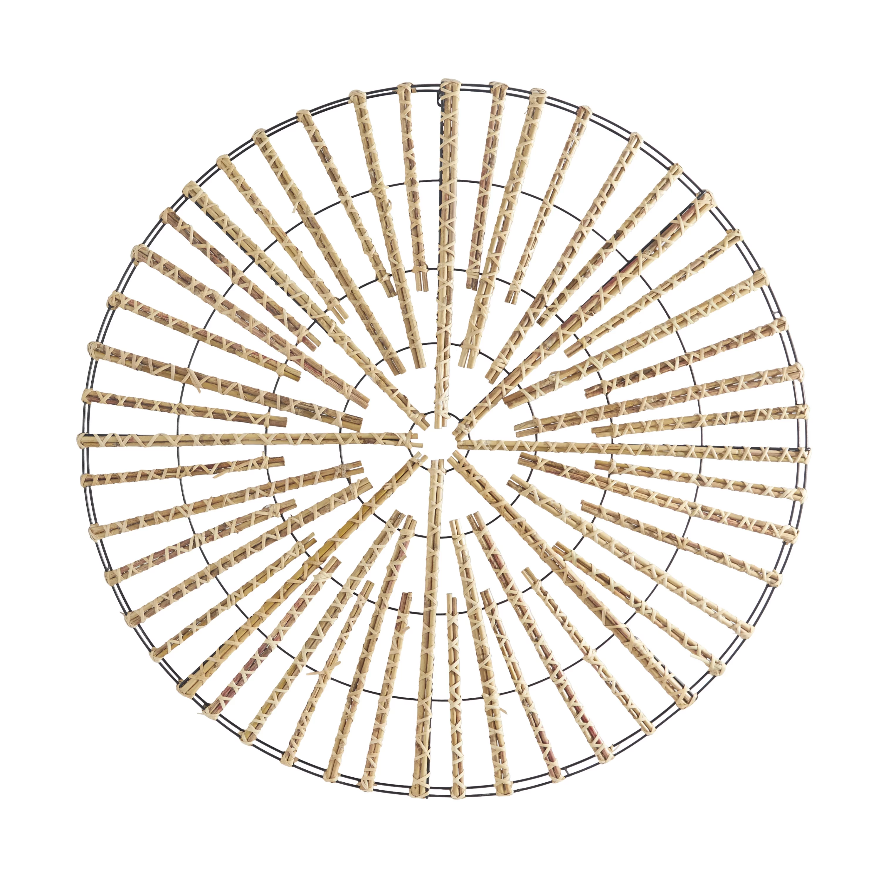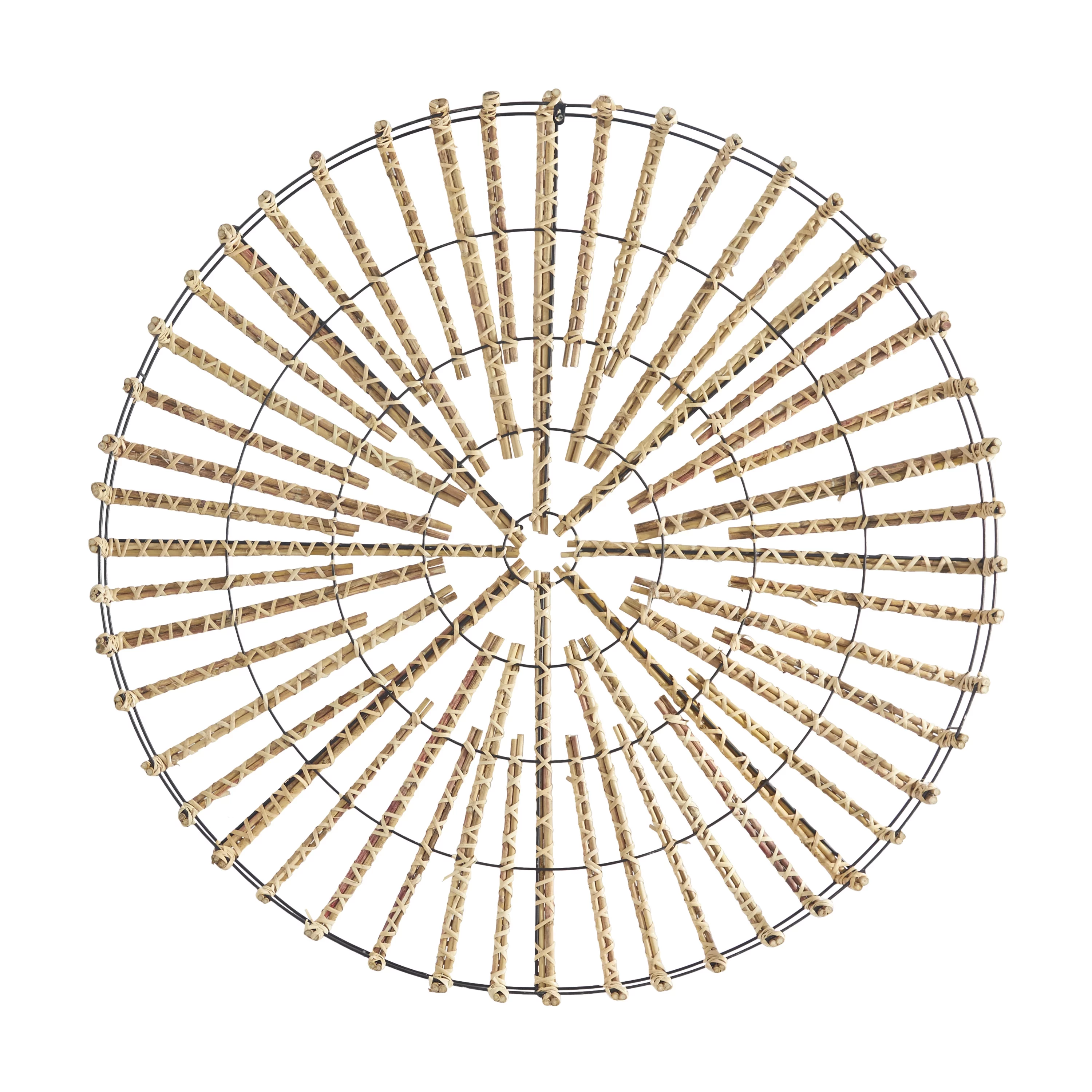 The Novogratz Light Brown Rattan Handmade Wrapped Stick Geometric Wall Decor with Black Metal Frame