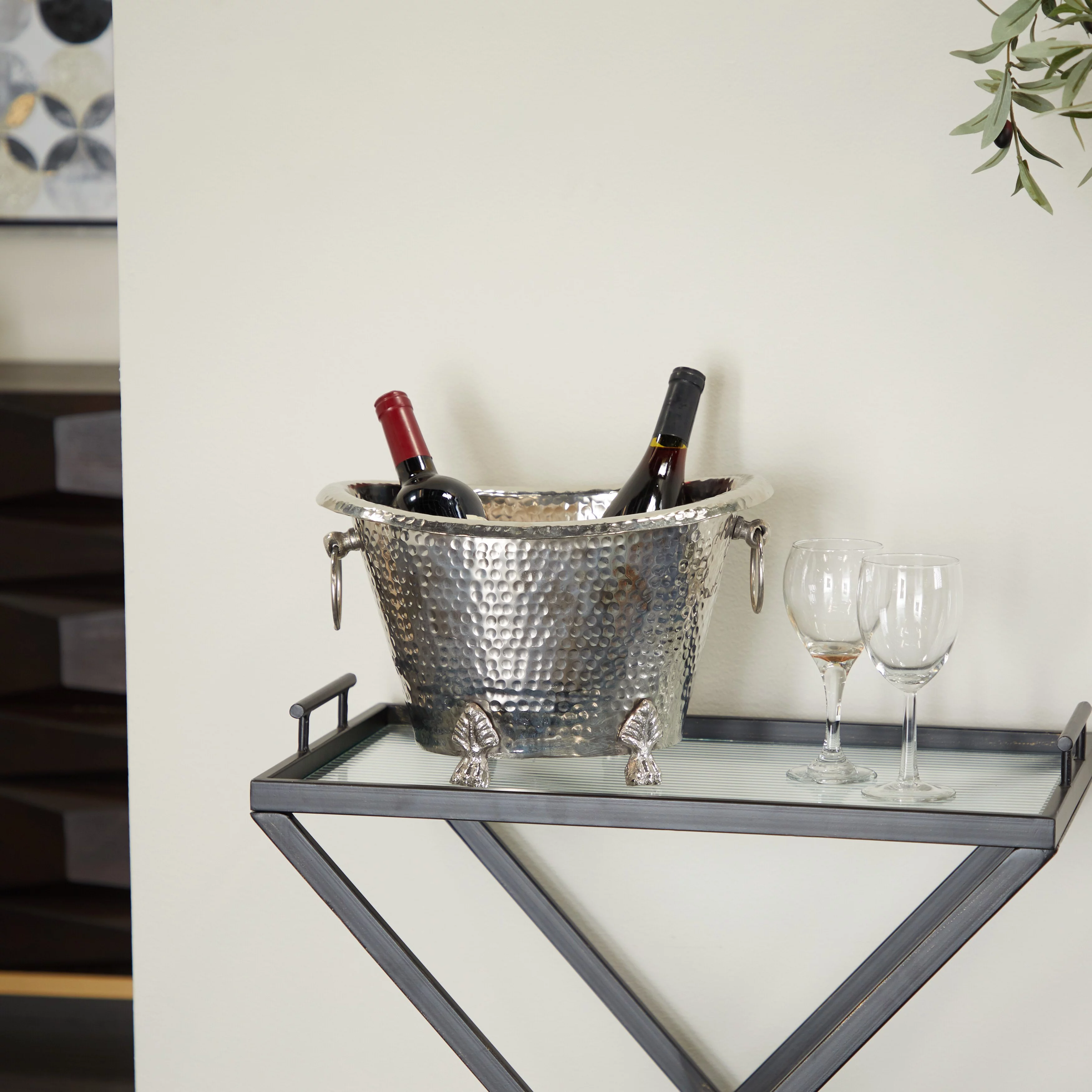 The Novogratz Silver Aluminum Metal 6 or 4 Bottle Ice Bucket 14 x 11 x 9
