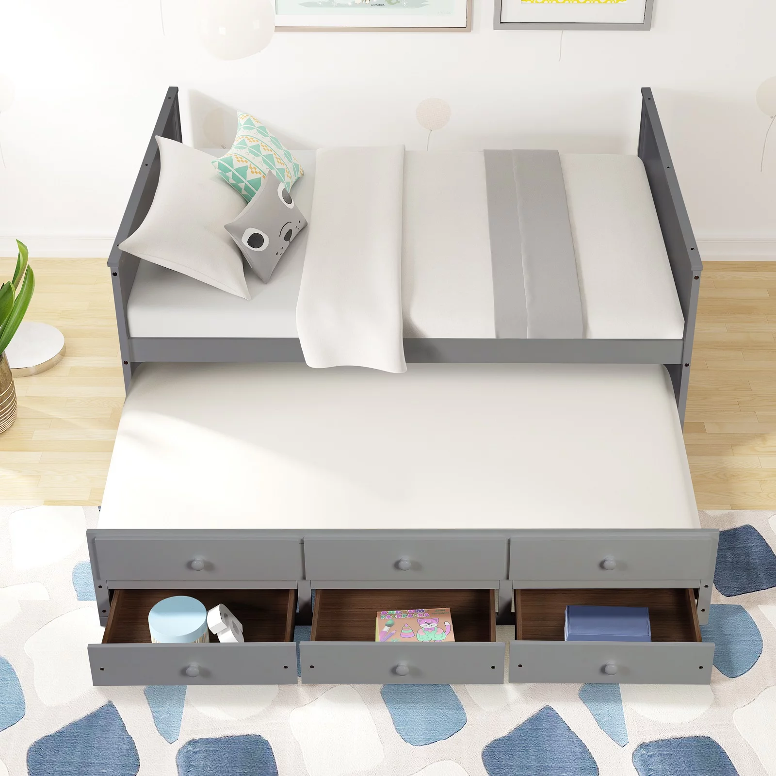 SENTERN Wood Daybed with Three Drawers ,Twin Size Daybed,No Box Spring Needed