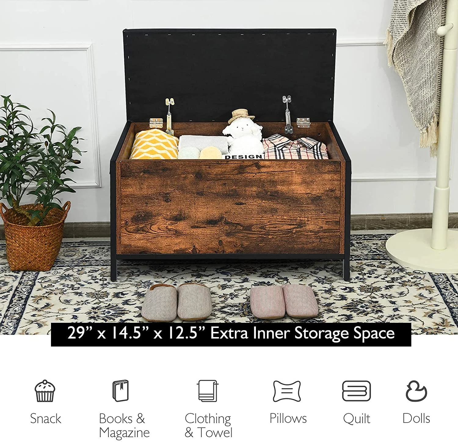 Storage Ottoman Bench, Button Tufted Foot Rest Stool For Living Bed Room (Brown)