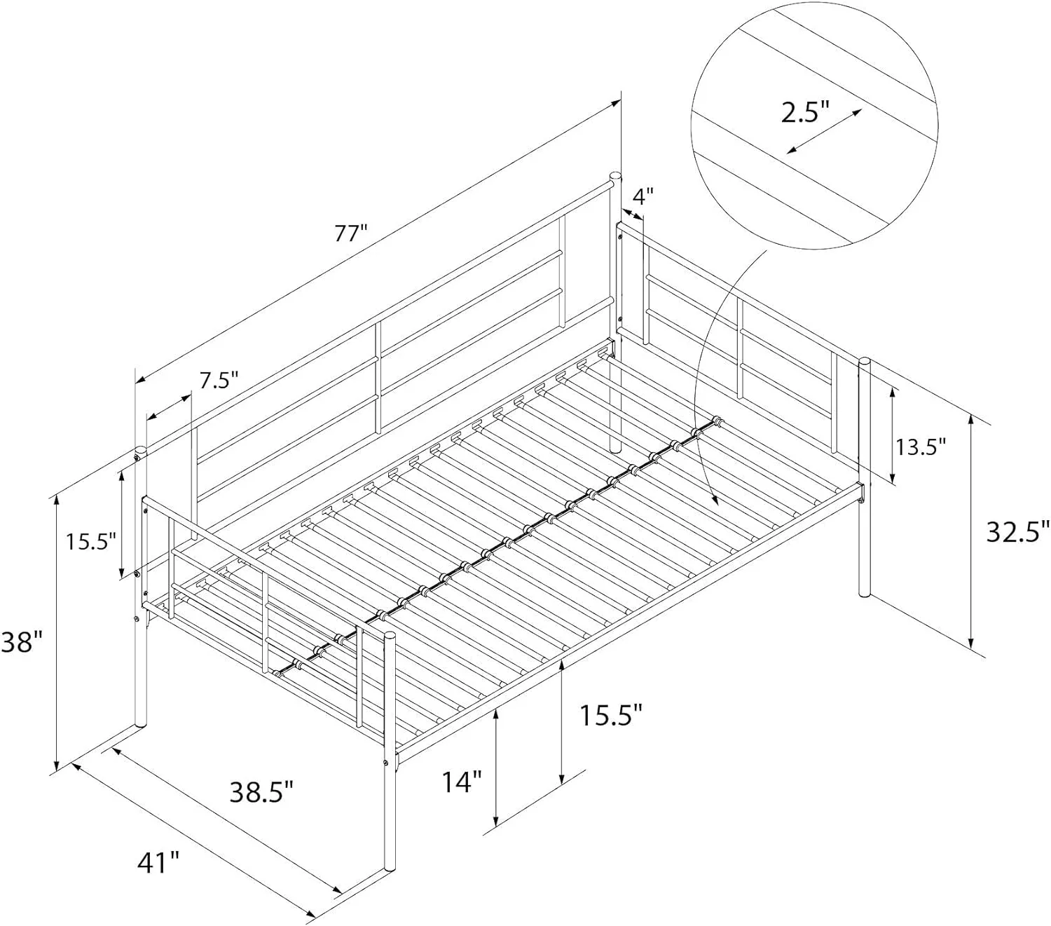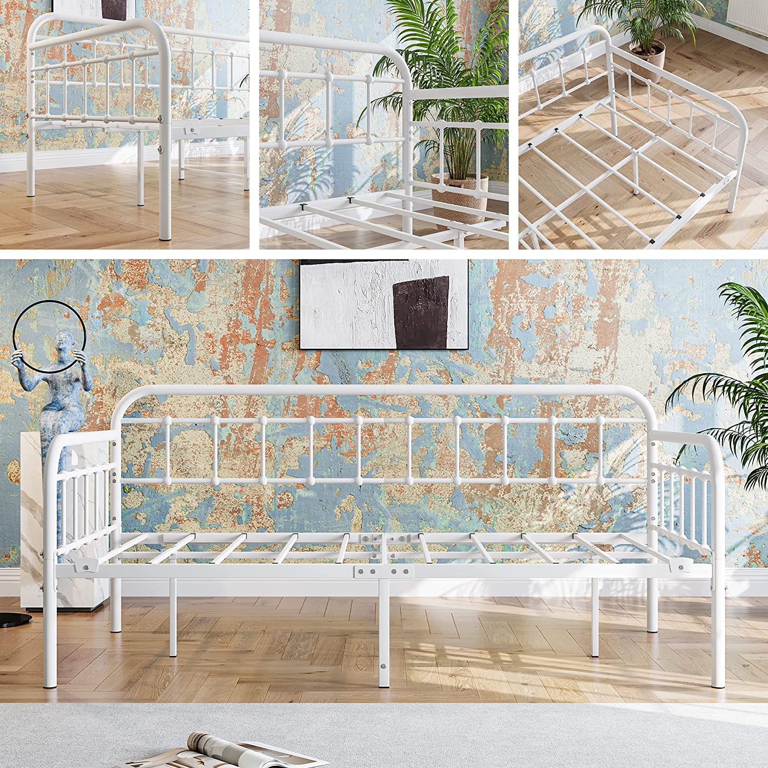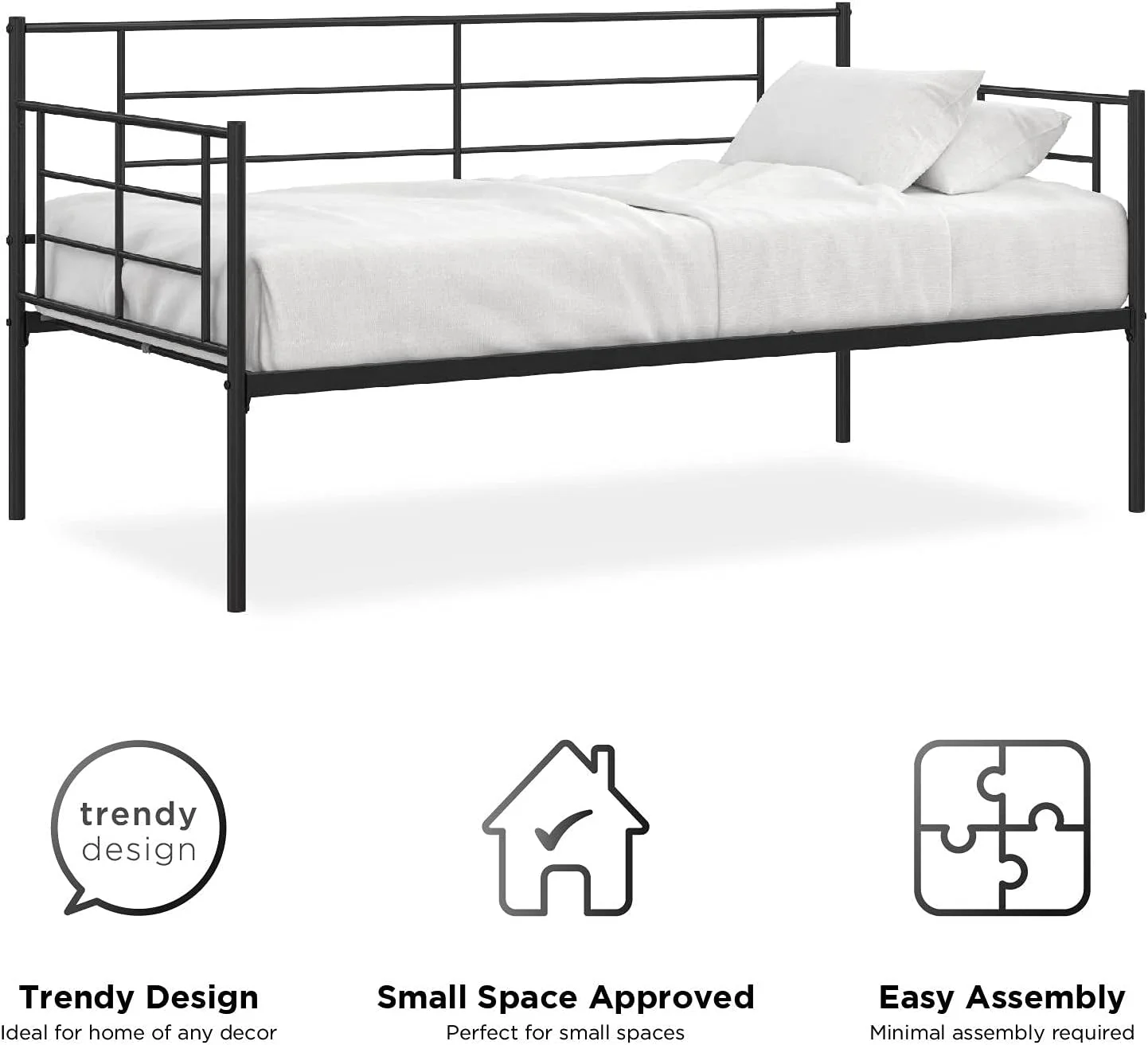 JIAH Metal Daybed Frame with Steel Slats Platform Furniture,Twin, Dark Black