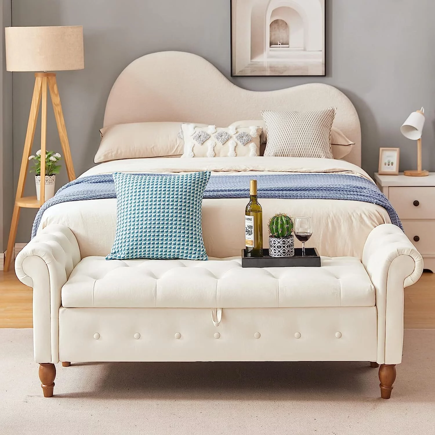 Velvet Upholstered Entryway Bench Bed Foot Stool with Horseshoe-shaped Metal Base Bedroom Grey