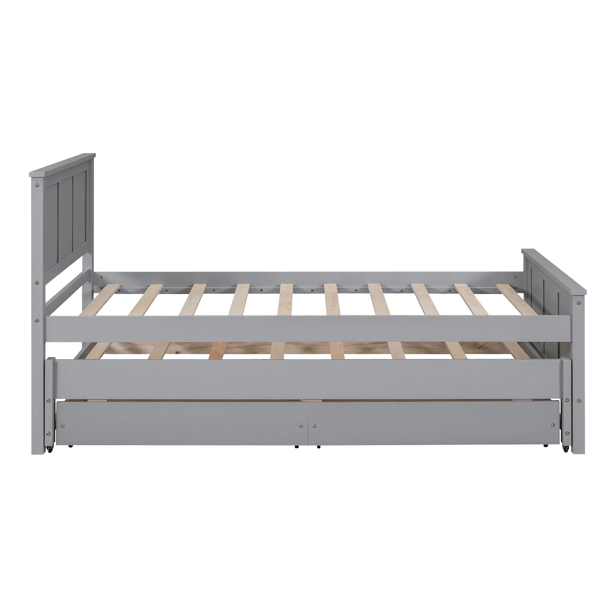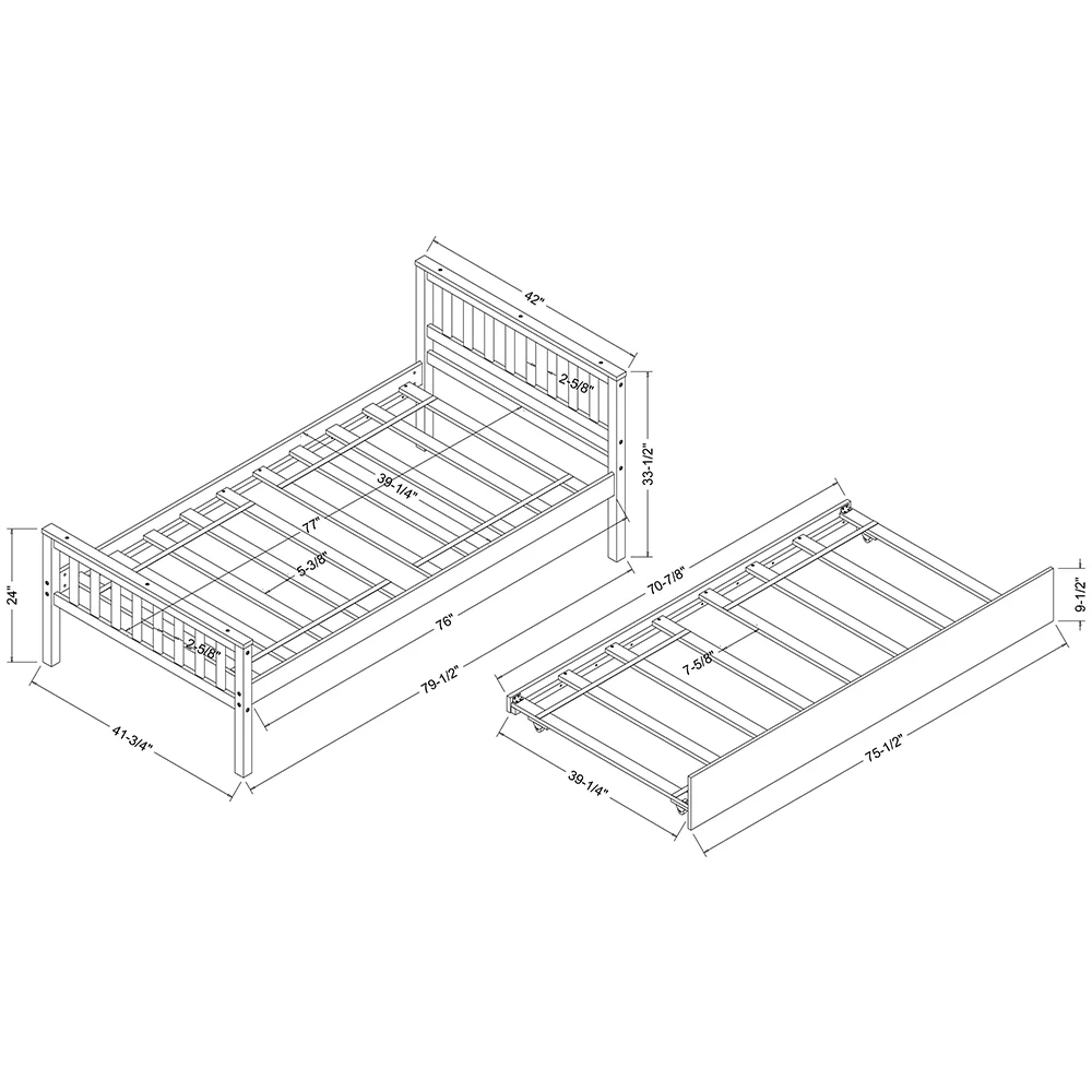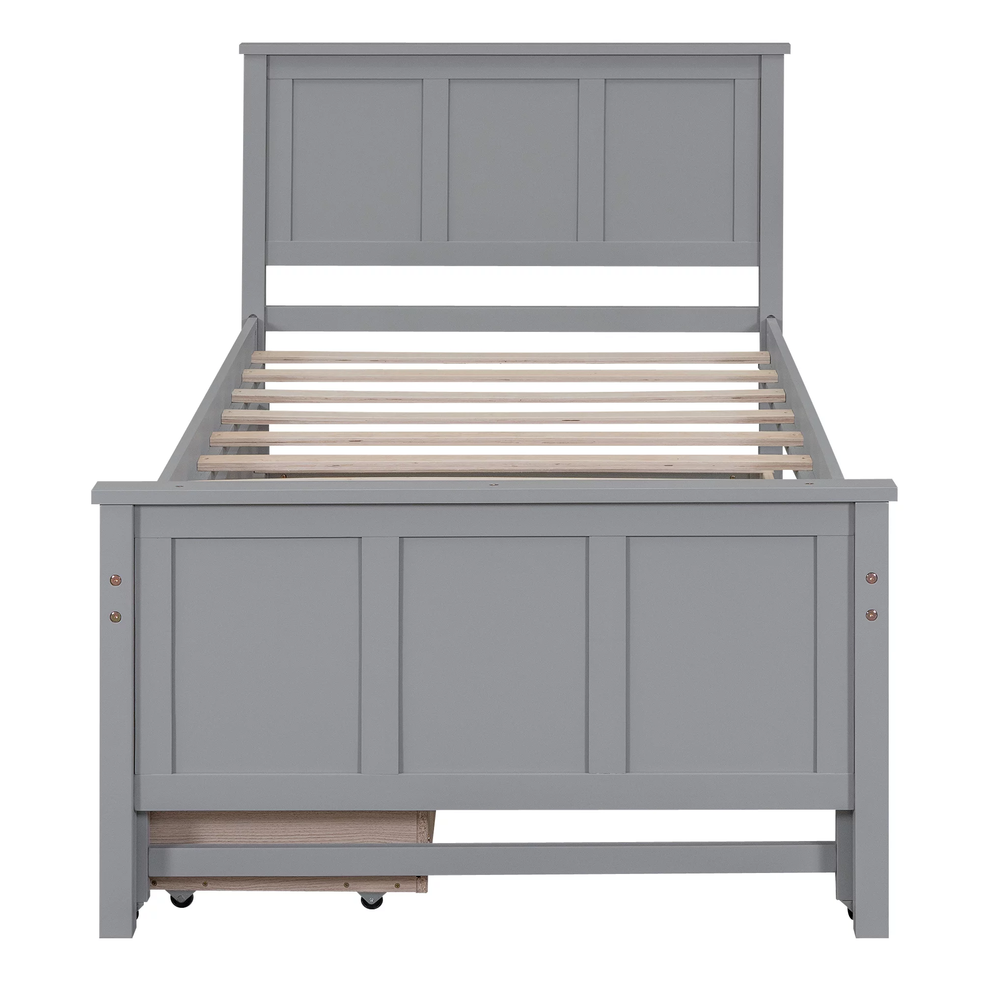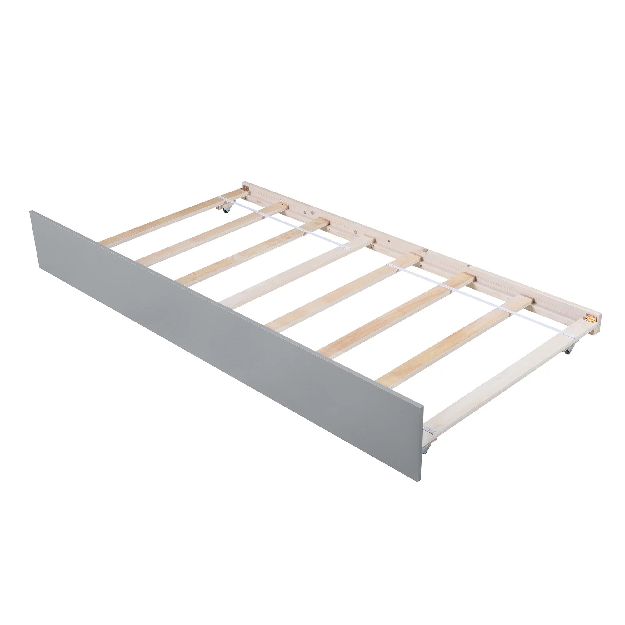 Gray Classic Design Twin size Solid Pine Frame Structure Platform Bed, With Trundle and 10 Reinforced Slats