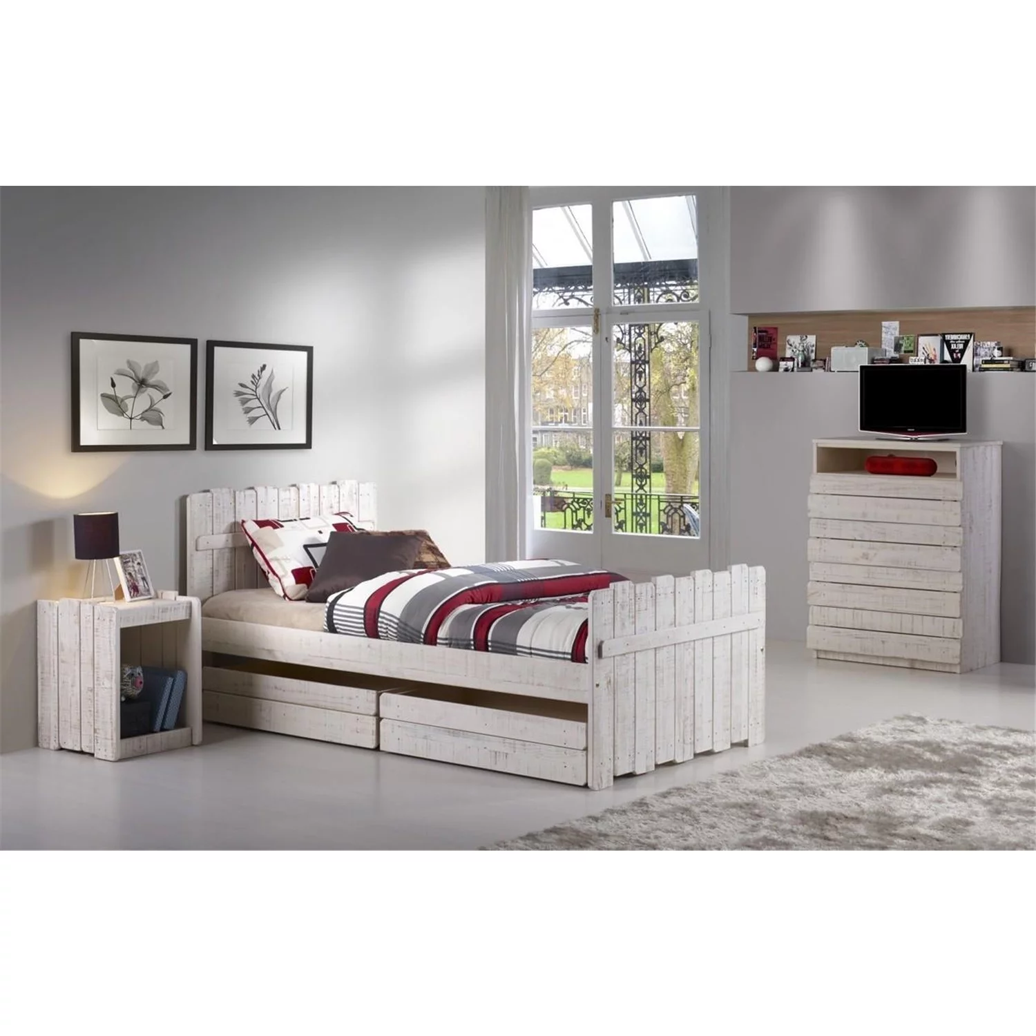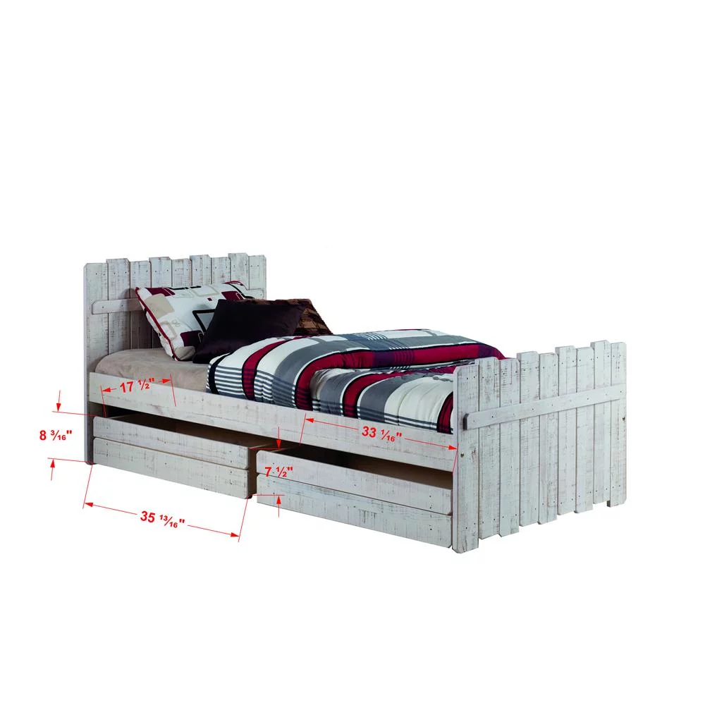 Donco Kids Twin Solid Wood Tree House Panel Bed with Drawers in Rustic Sand