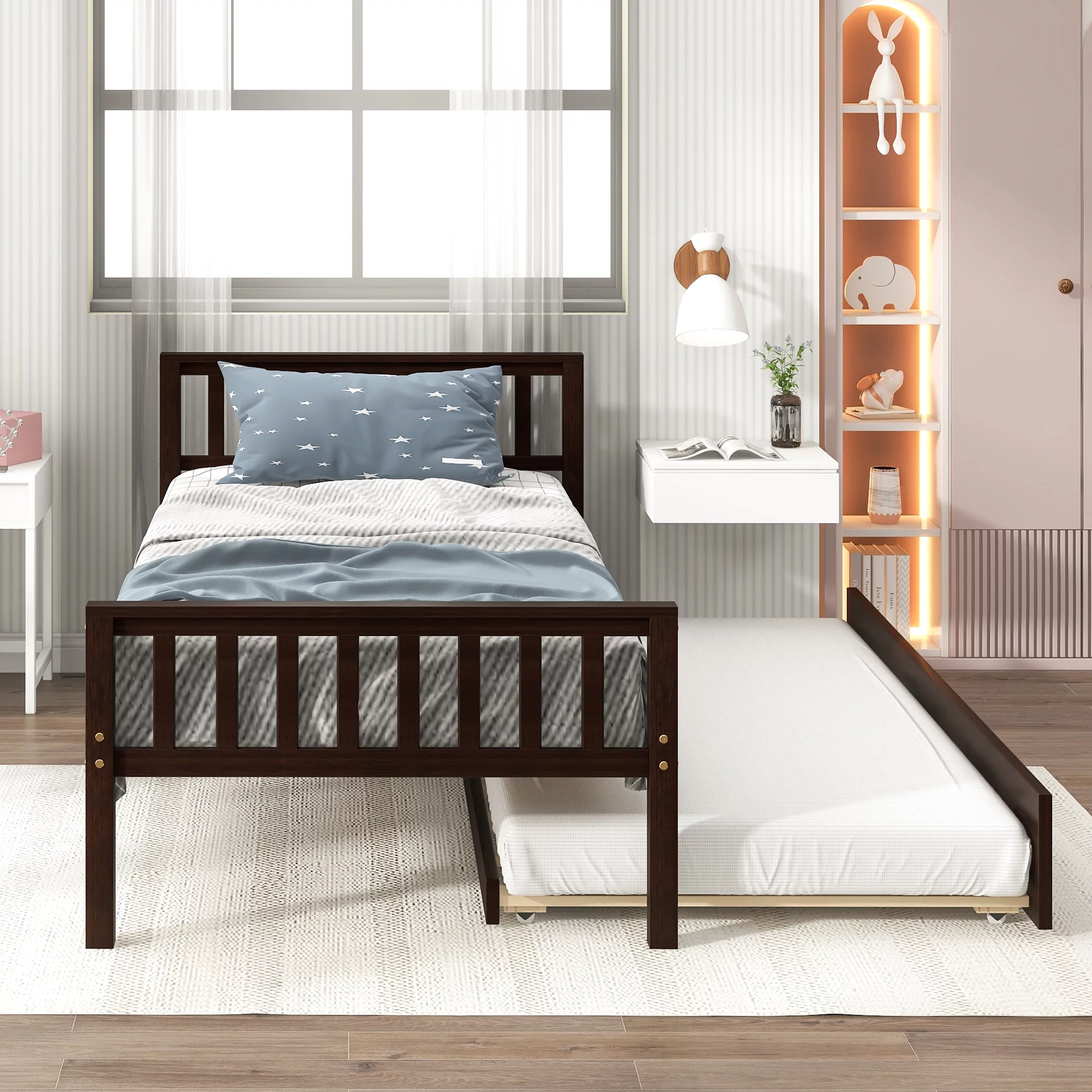 uhomepro Wood Twin Platform Bed with Headboard & Footboard & Trundle for Child, Espresso