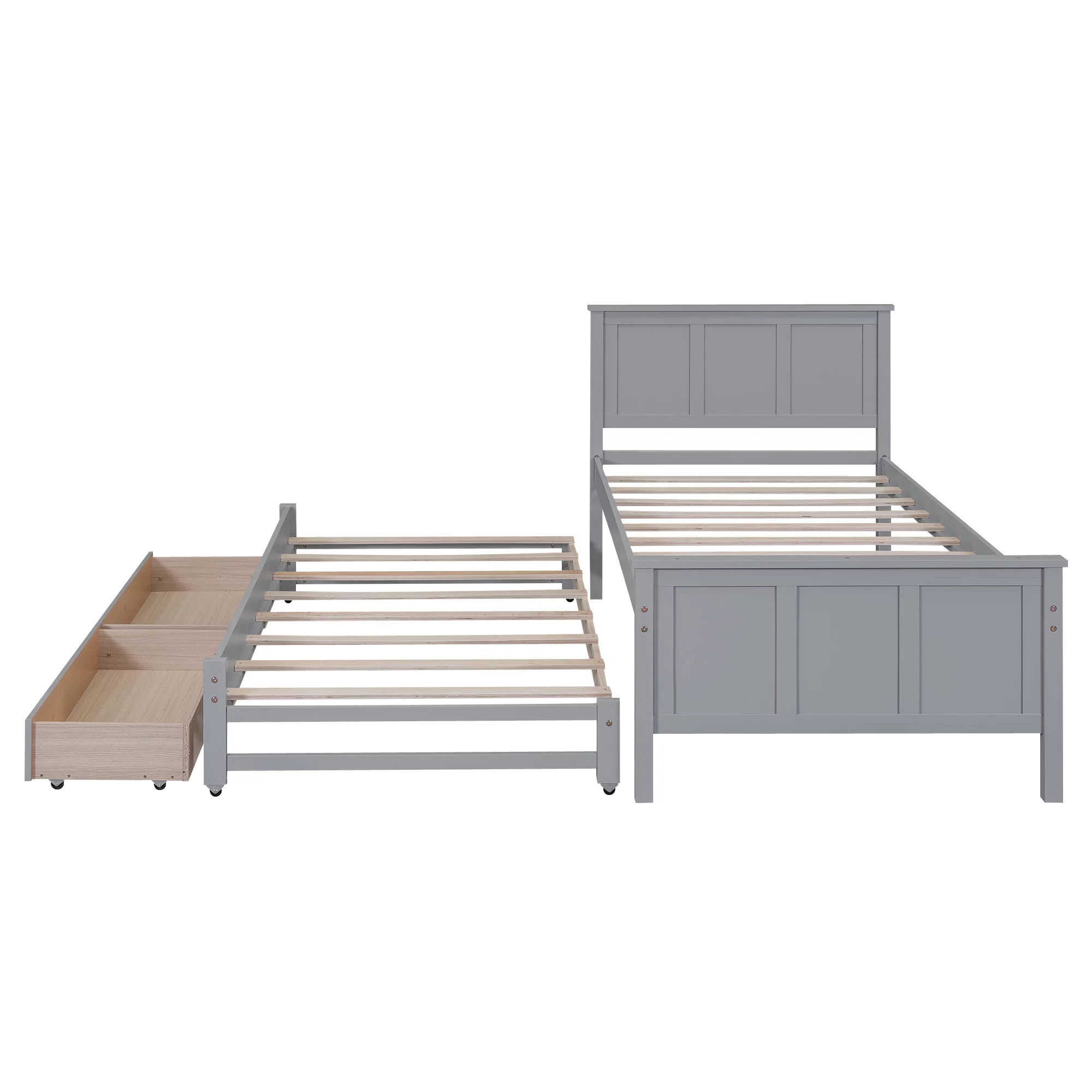 Twin Size Bed Frame Wooden Platform Bed with Trundle and Drawers/No Box Spring Needed/Noise Free (Gray)