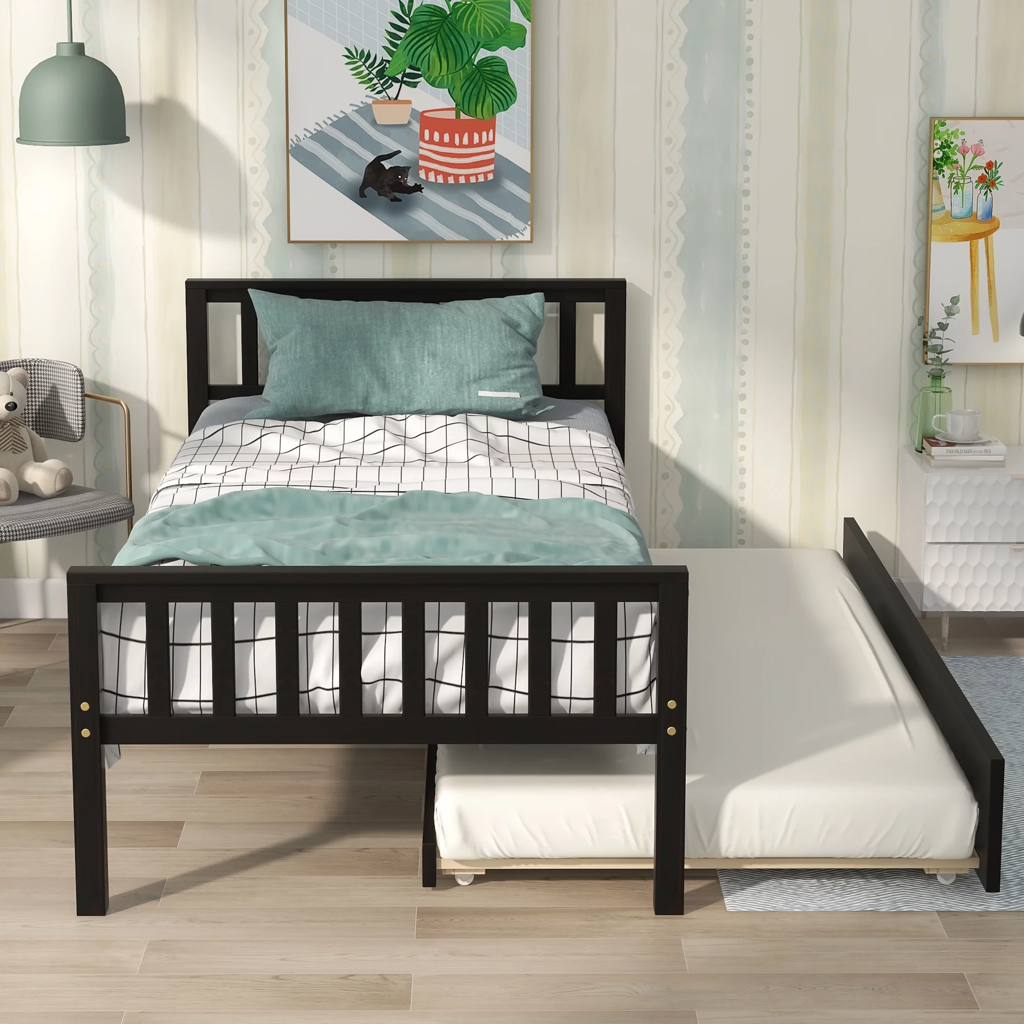 Platform Bed with Twin Size Trundle, Twin Size Frame, Espresso (New SKU:WF283063AAP)