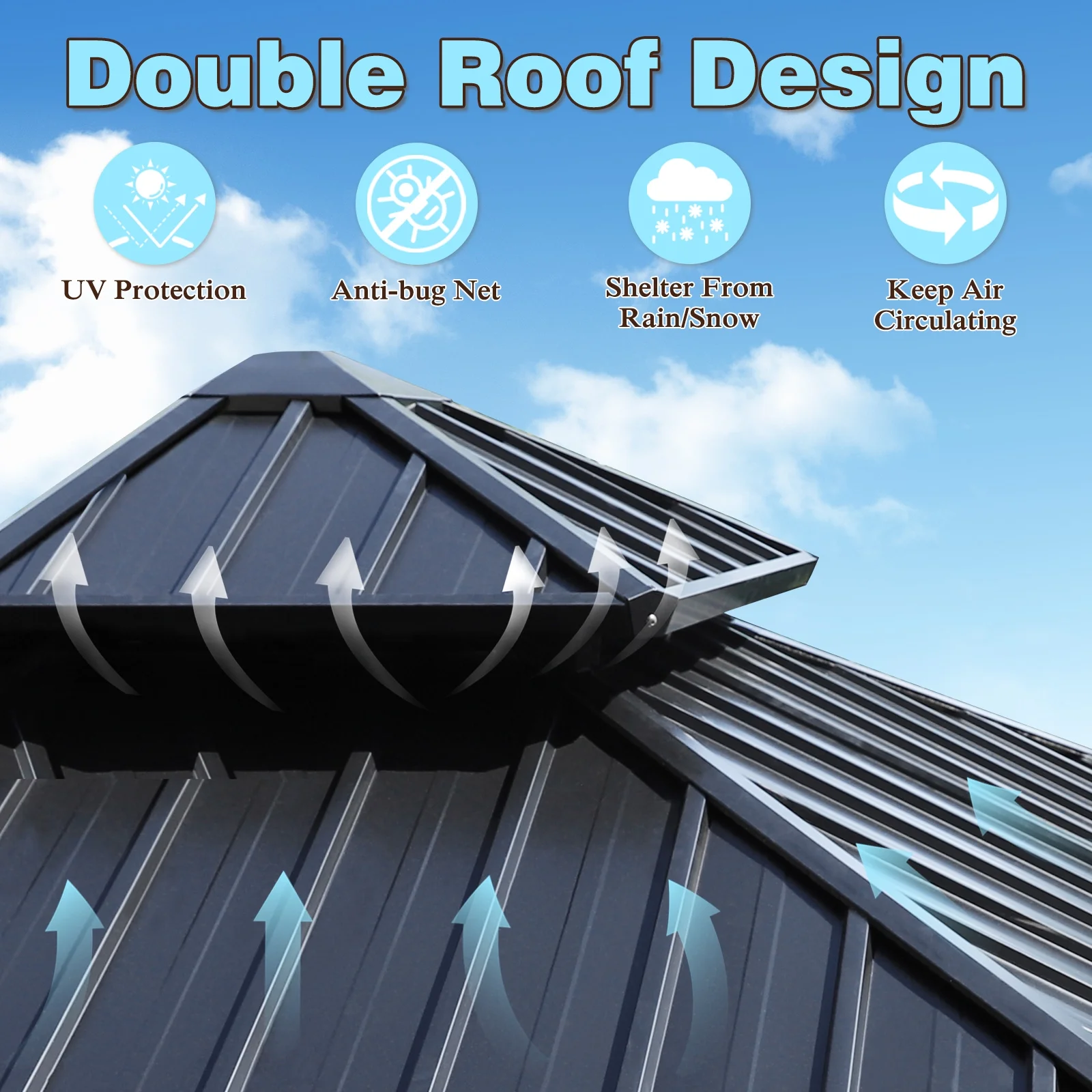 VEIKOUS 12'x12' Outdoor Hardtop Gazebo, Double Roof Metal Gazebo for Patio, Garden, Lawn, Party, Gray
