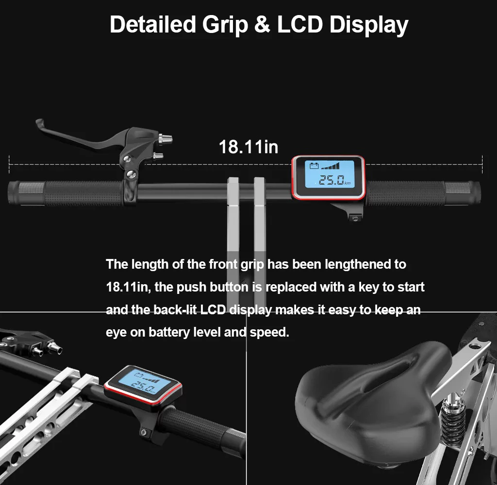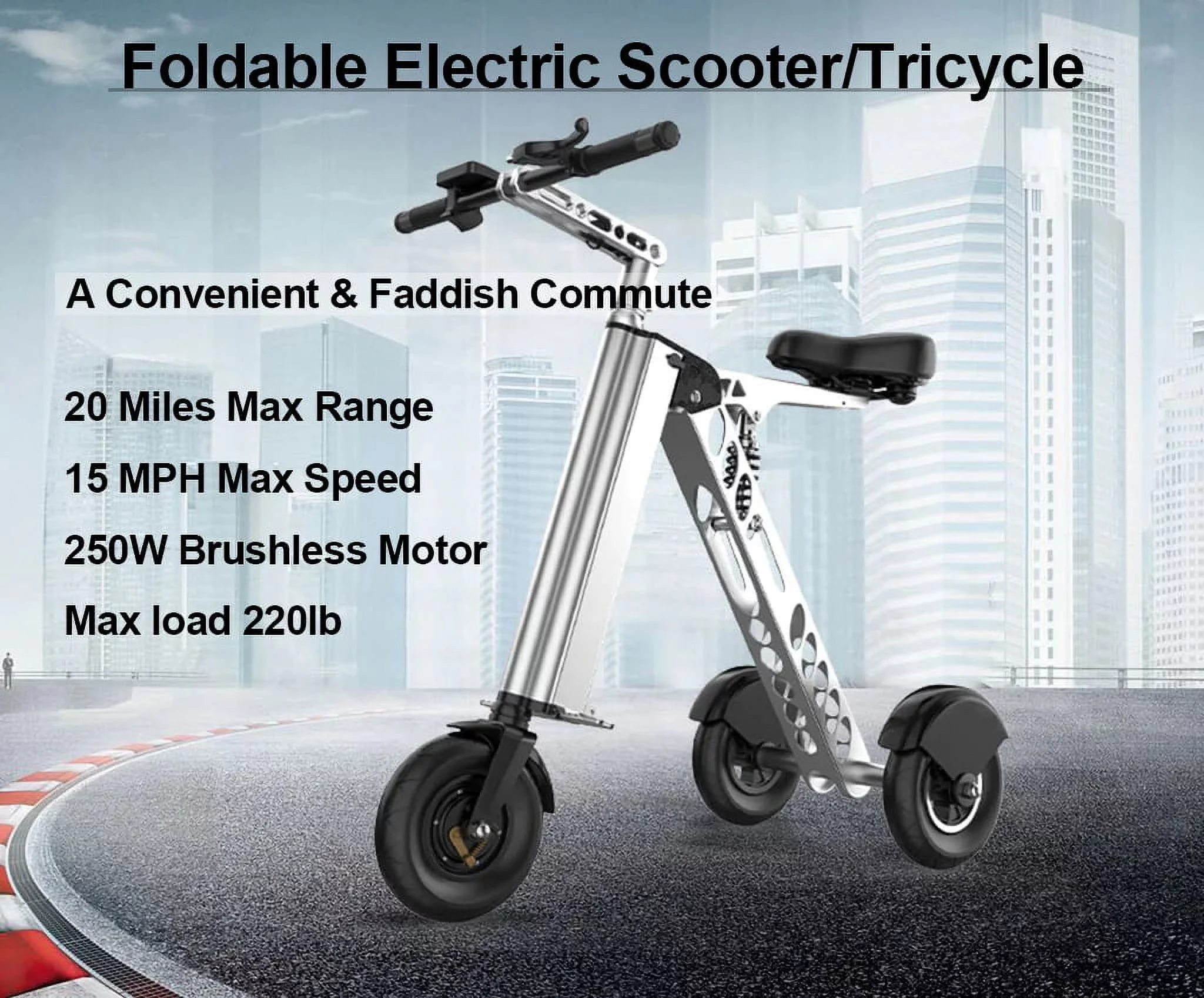 Ienyrid Electric Scooter Tricycle Foldable Electric Tricycle with Seat Ebike for Adult & Teens