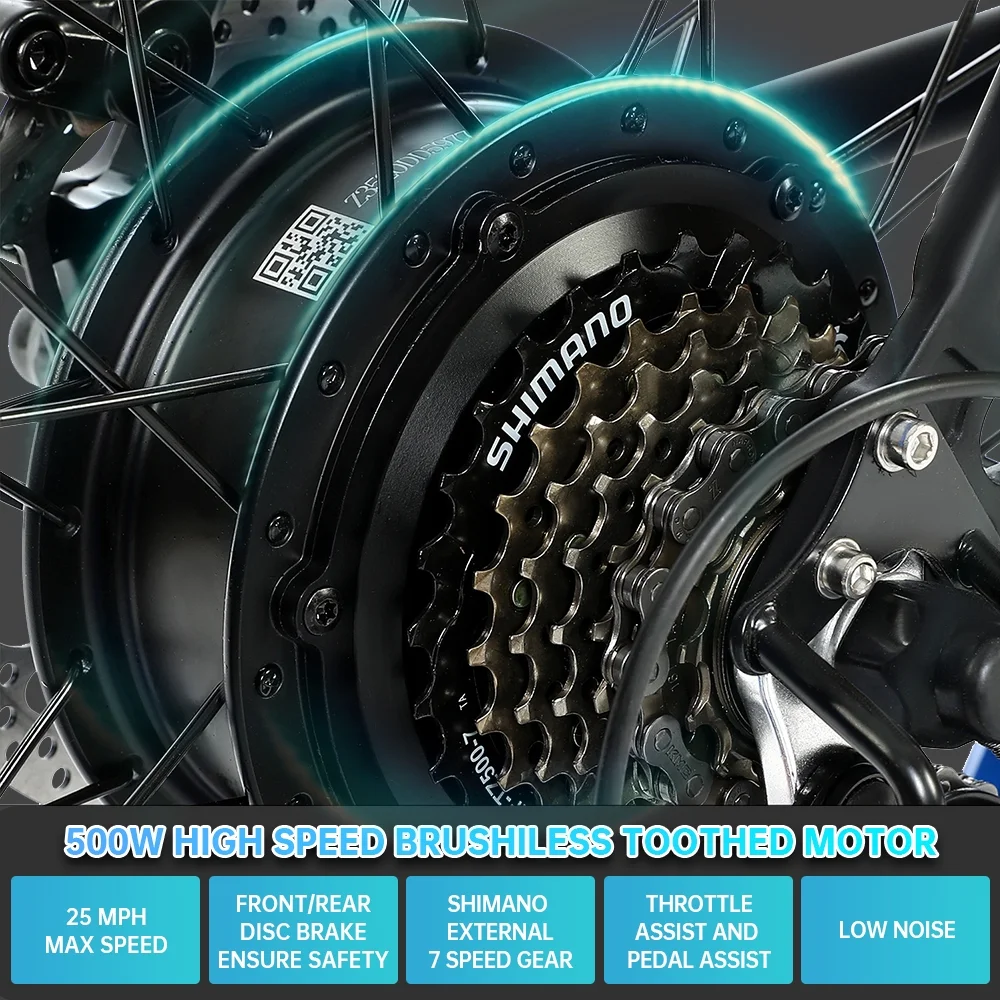 ECOTRIC 20" 500W 12.5Ah Folding Electric Bicycle e-Bike Fat Tire Foldable Pedal Assist Bike UL2849-A-E516646