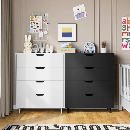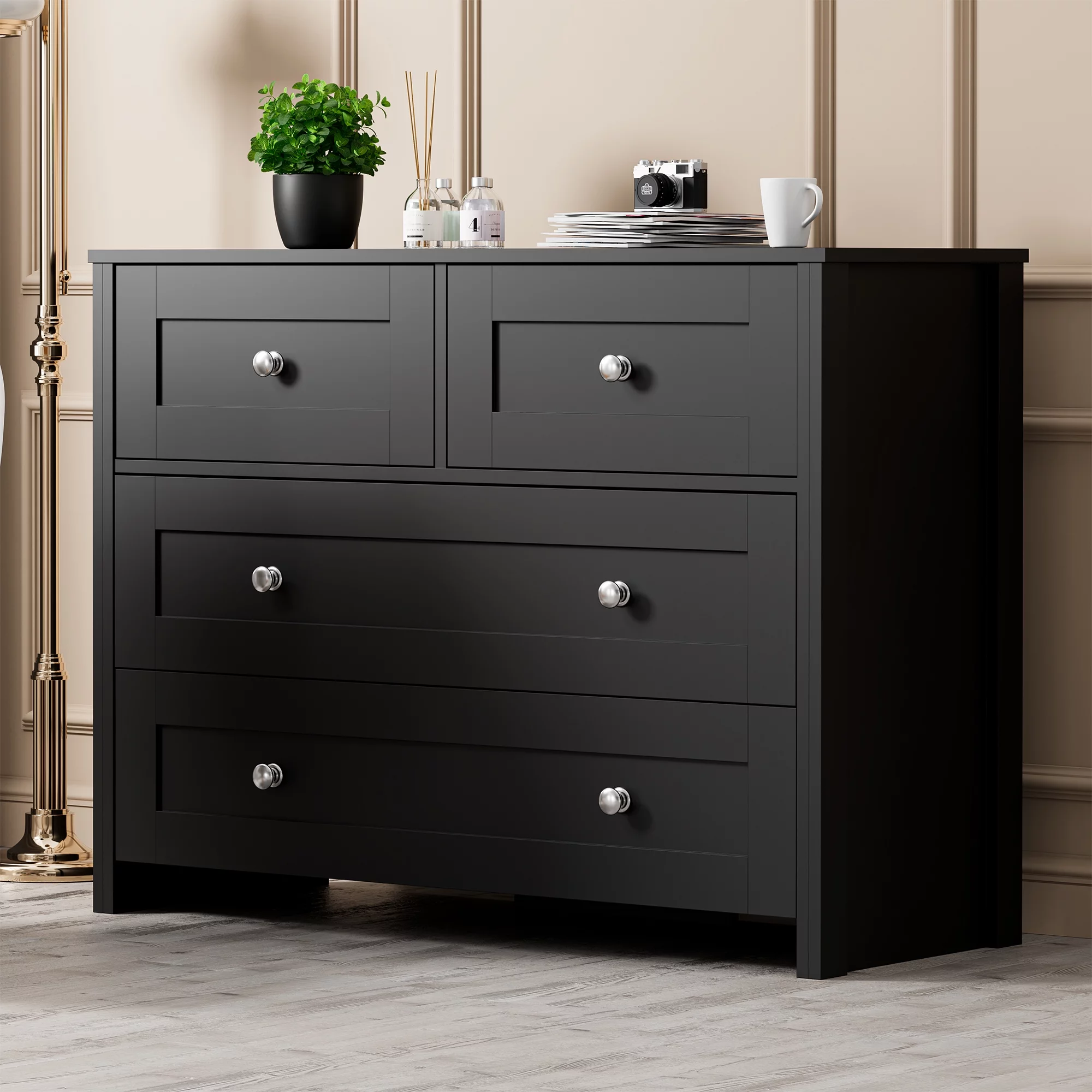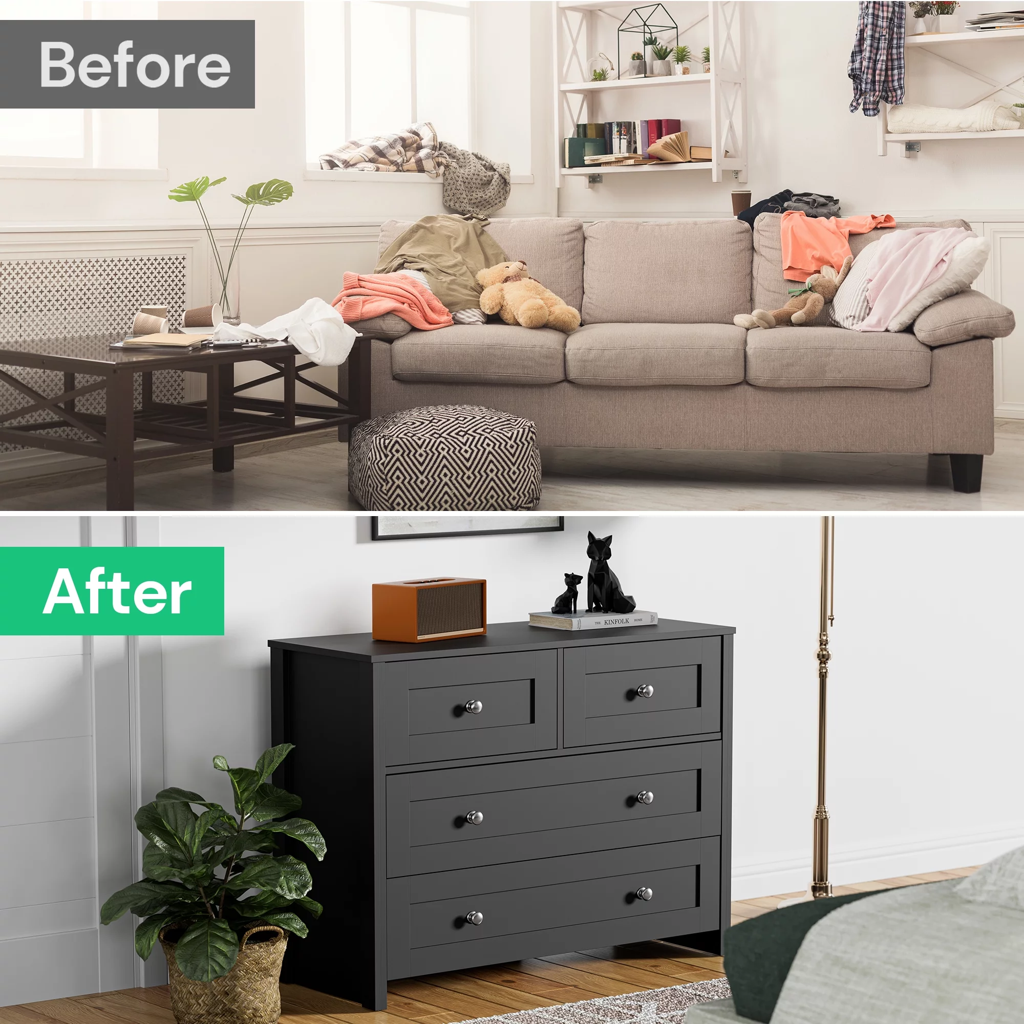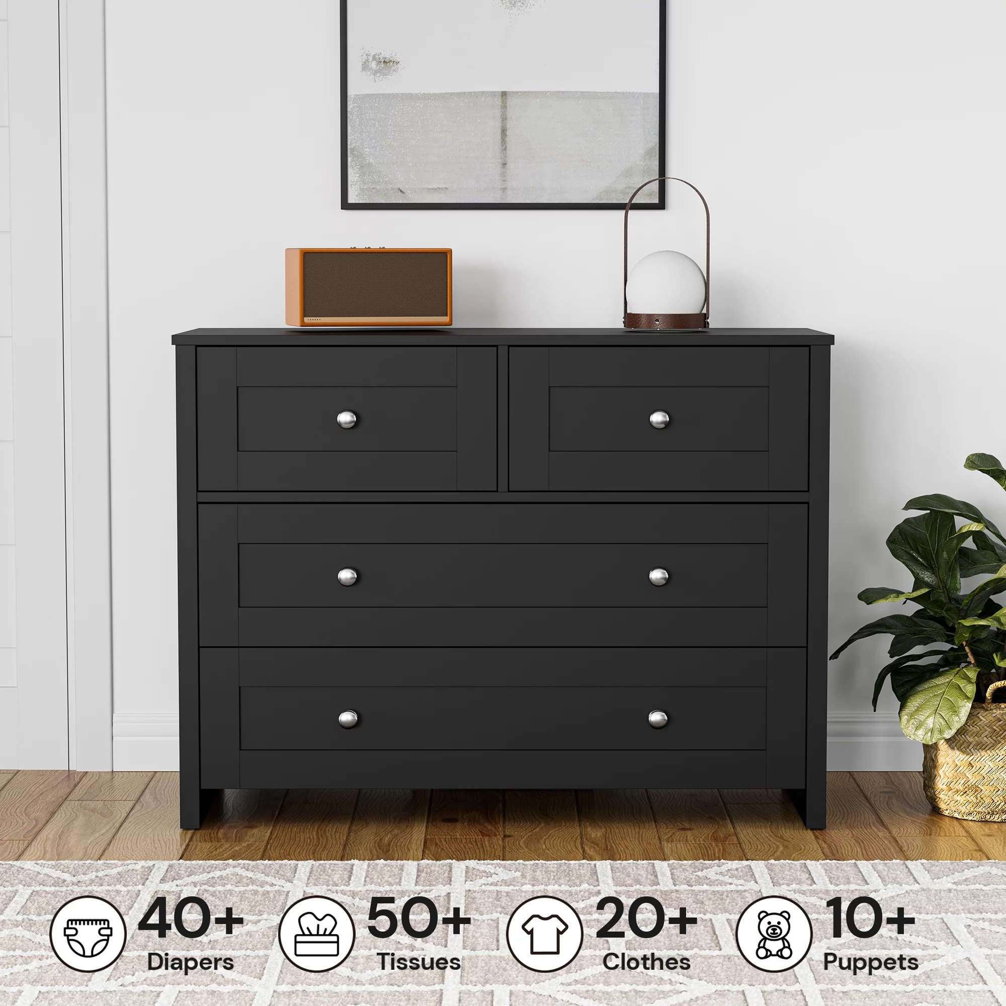 VEIKOUS 4 Drawers Wood Dresser for Bedroom, Living Room and Closet Organization, Black