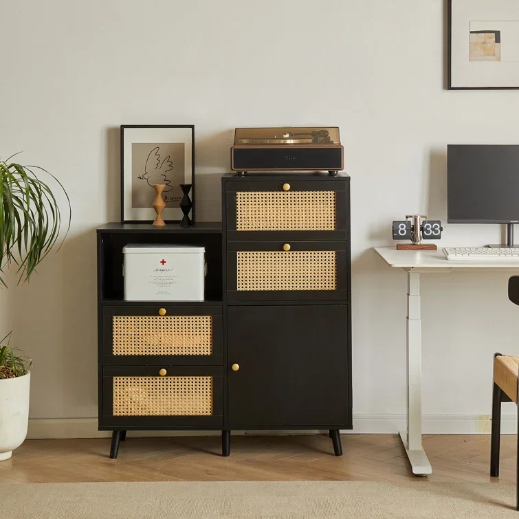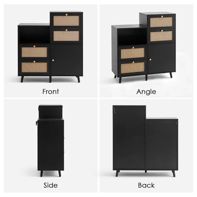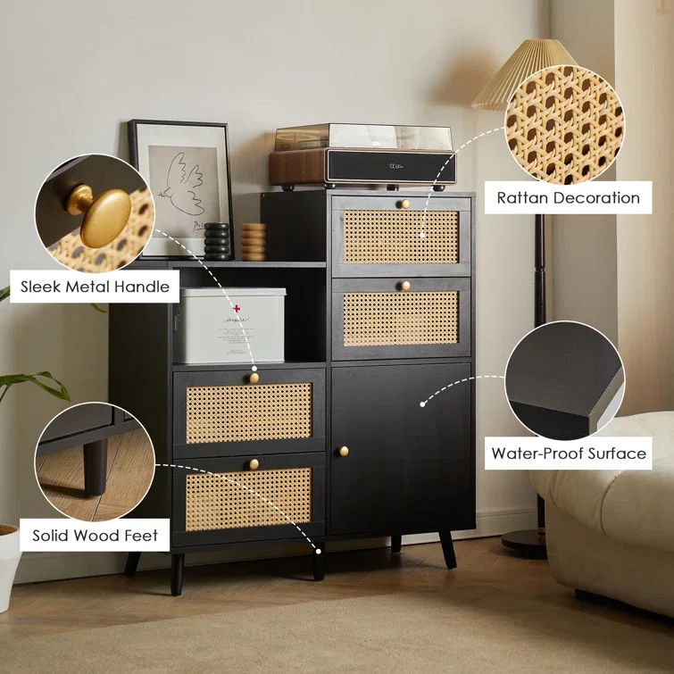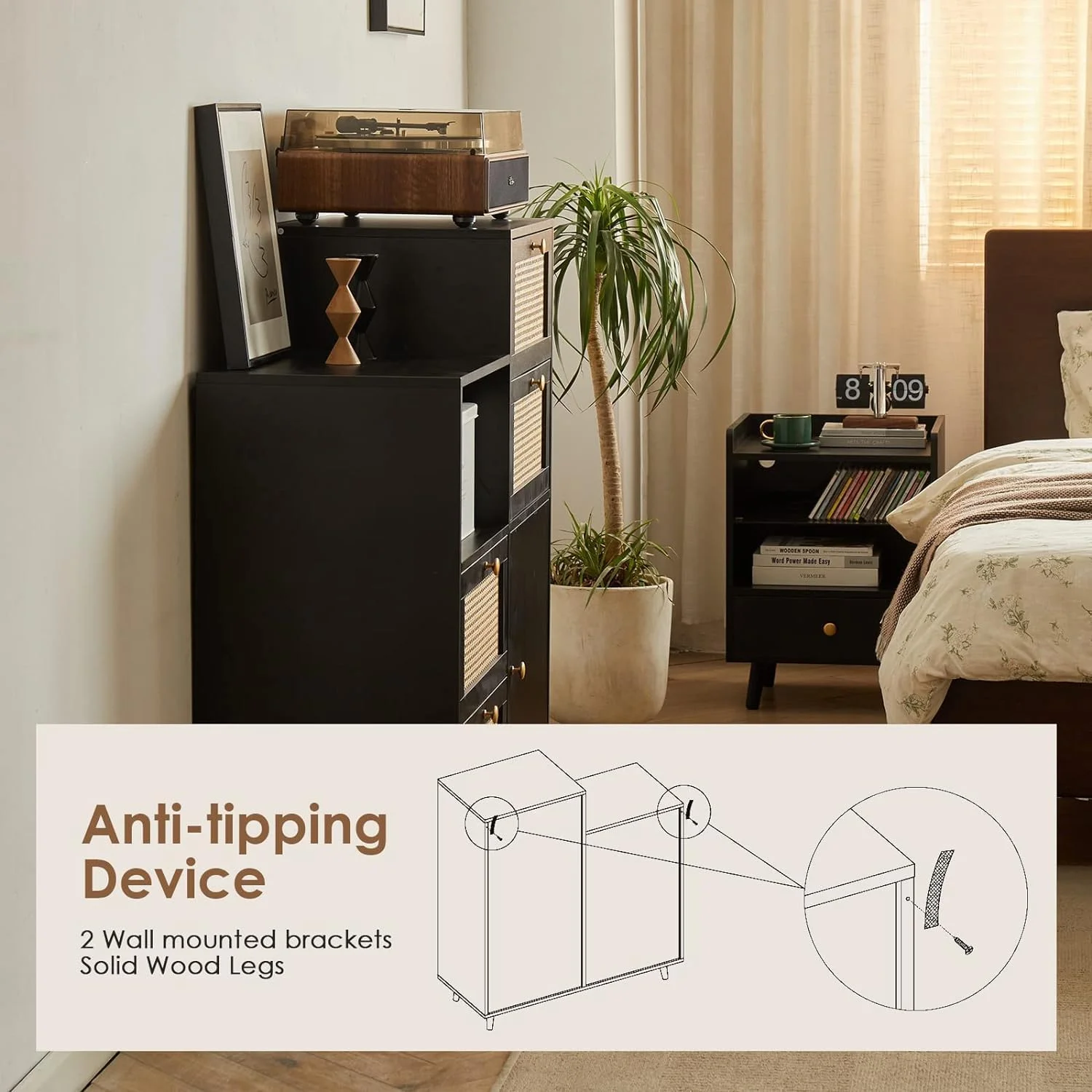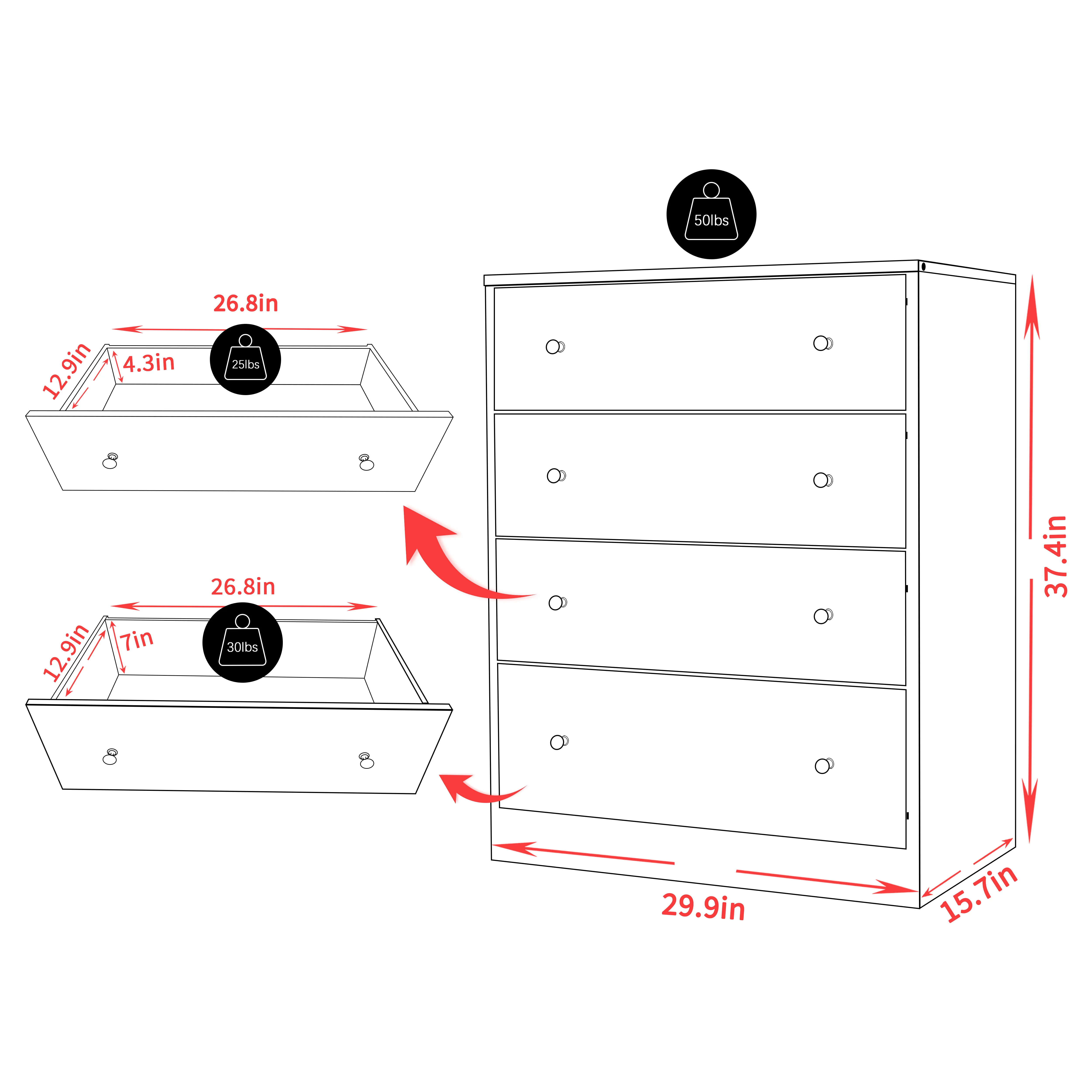 VEIKOUS 4 Drawers Wood Dresser for Bedroom, Living Room and Closet Organization, Black