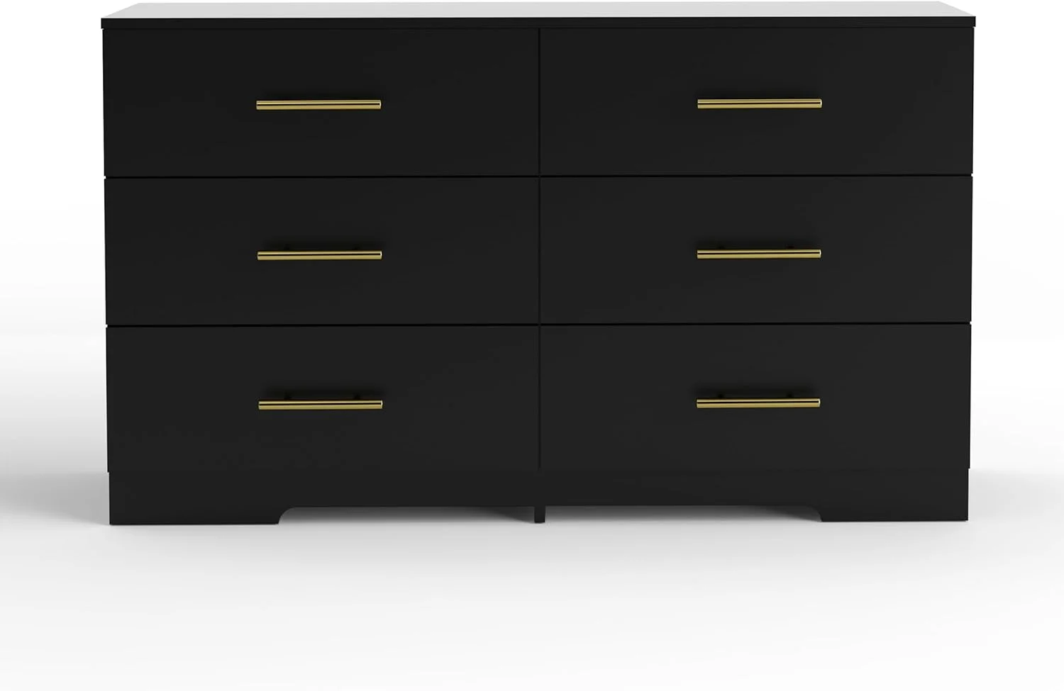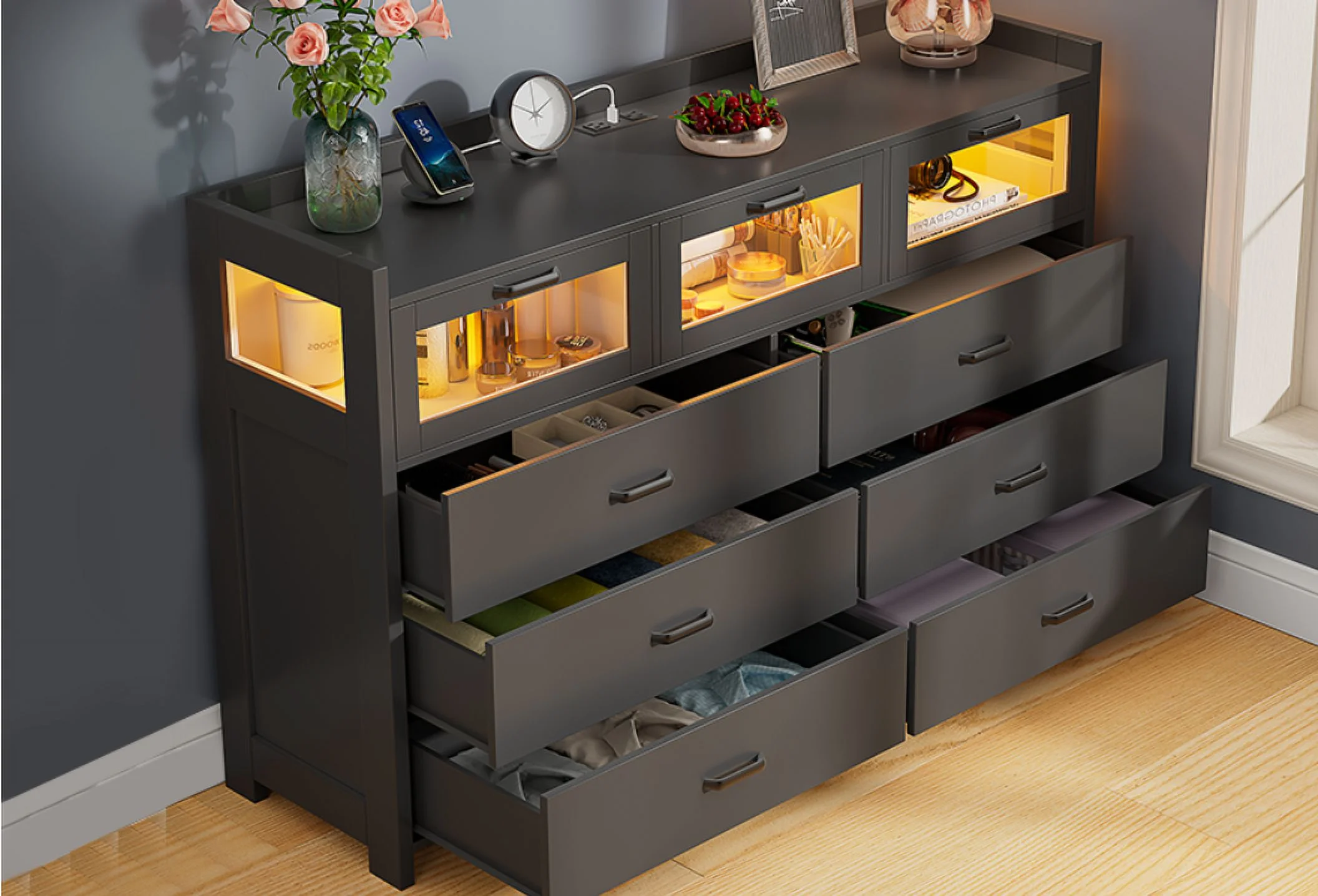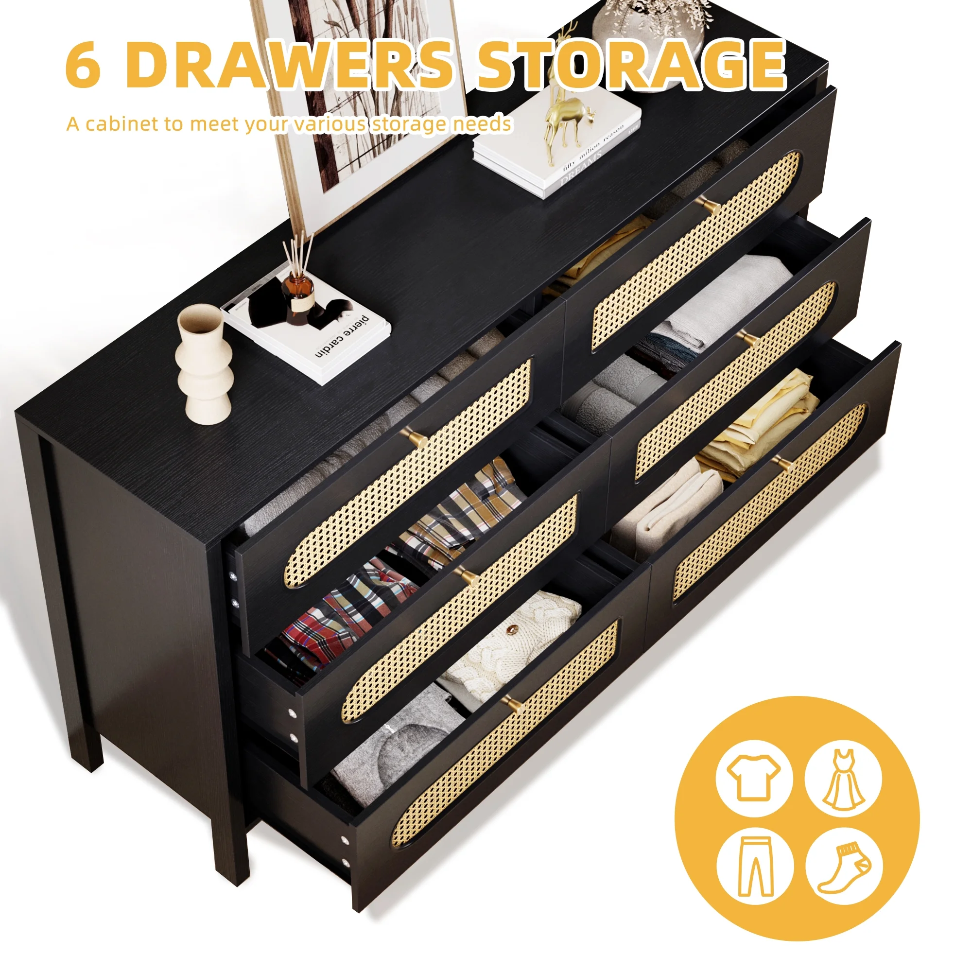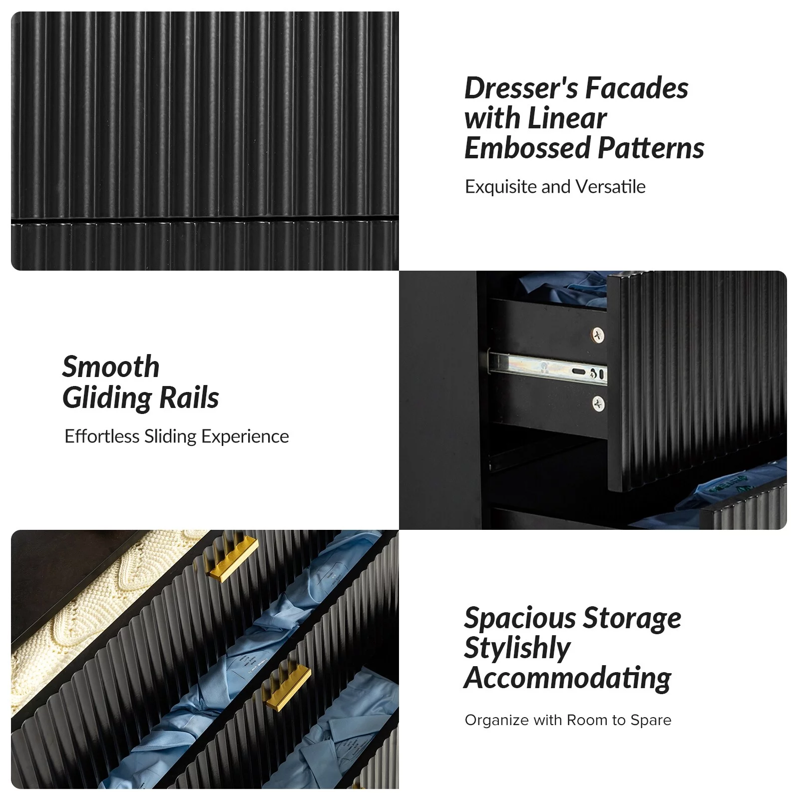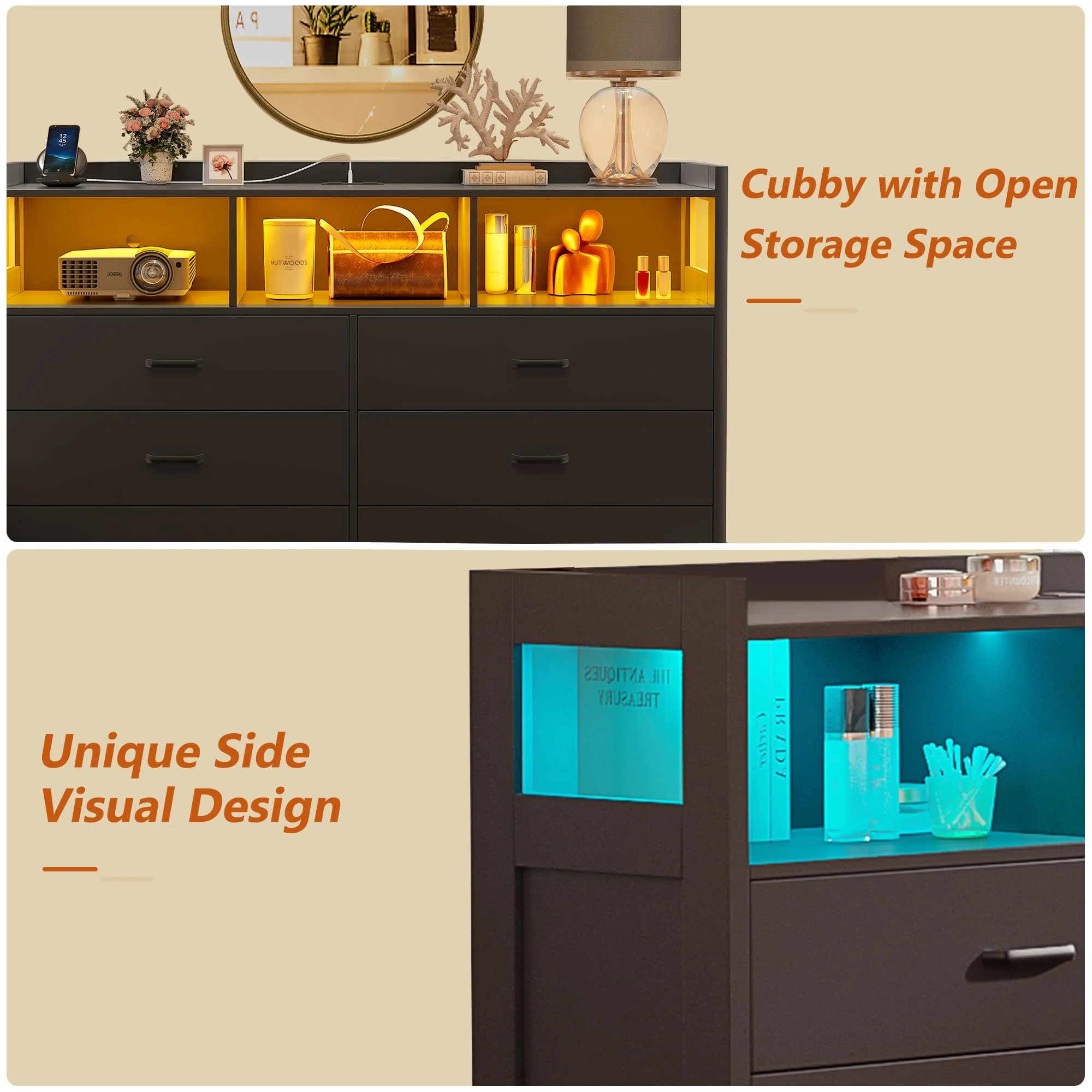 Black 6 Drawer Dresser for Bedroom with Led Lights,Modern LED Chest of Drawers Dresser for Living Room Closet