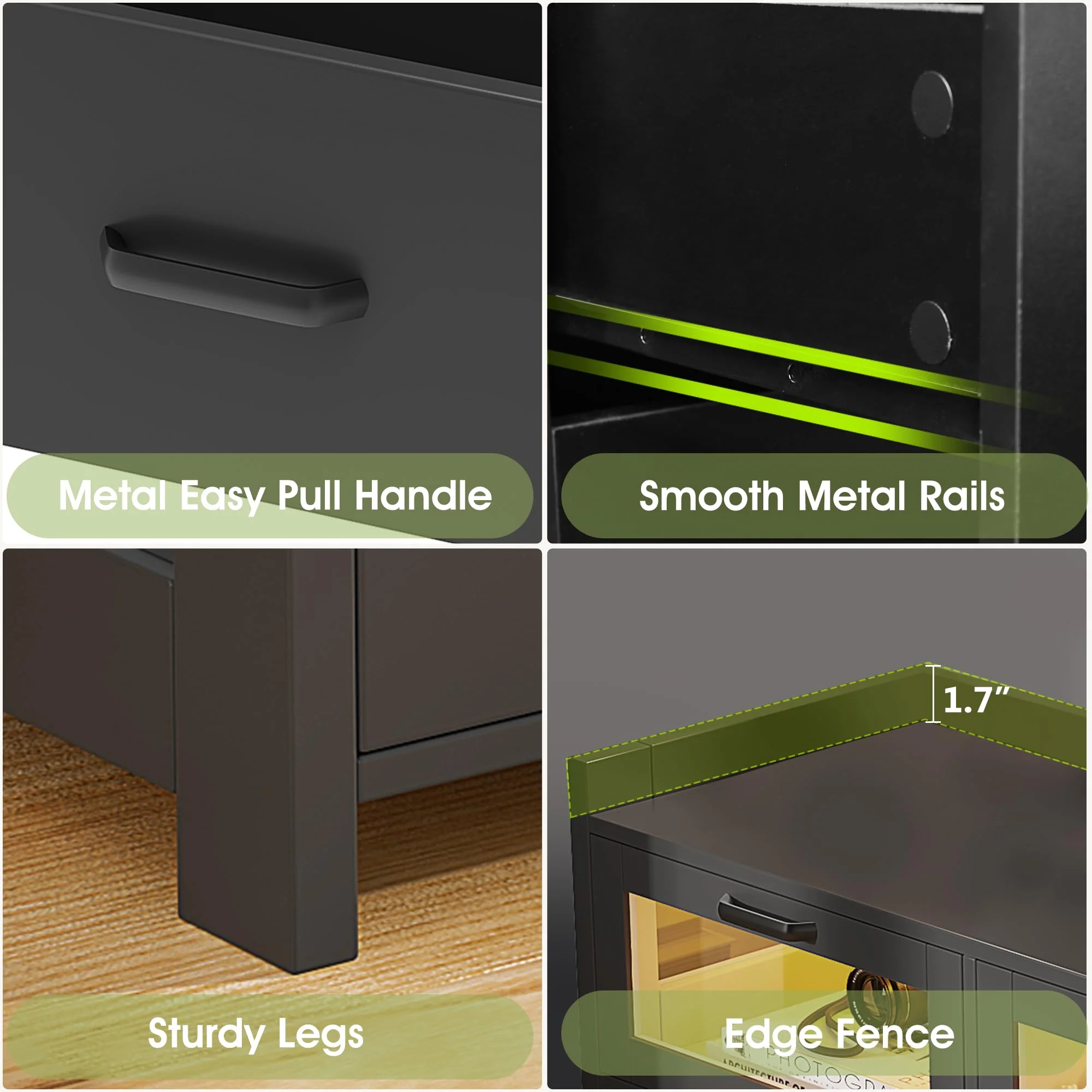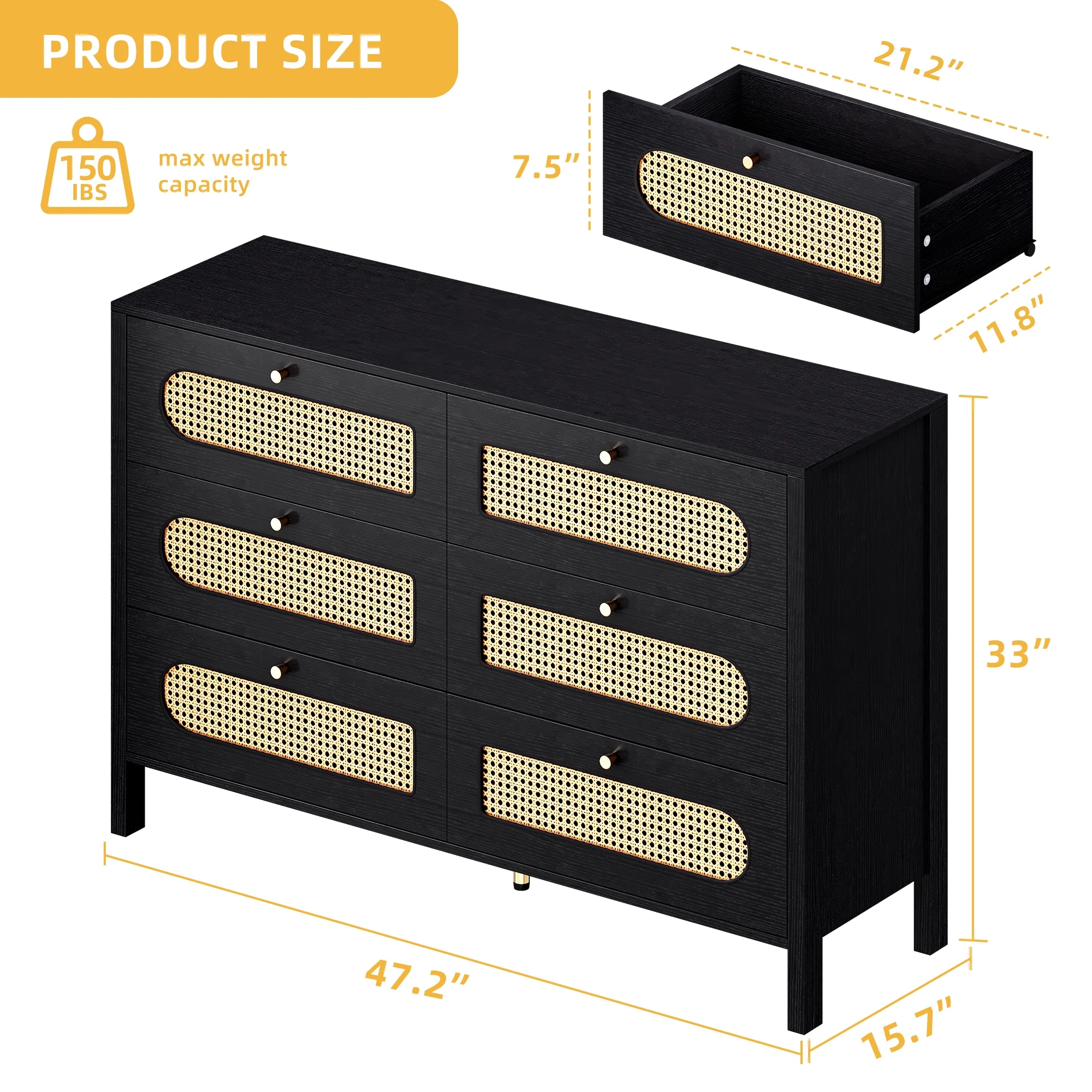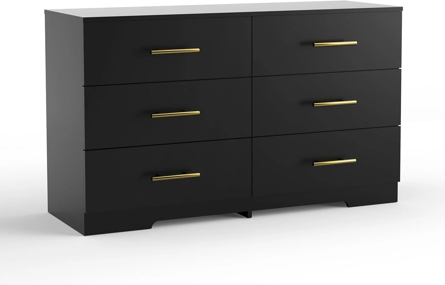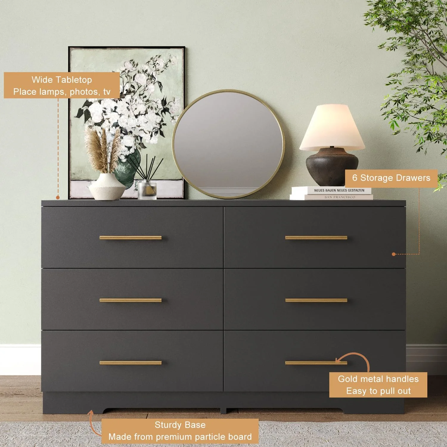 Black 6 Drawer Dresser for Bedroom with Led Lights,Modern LED Chest of Drawers Dresser for Living Room Closet