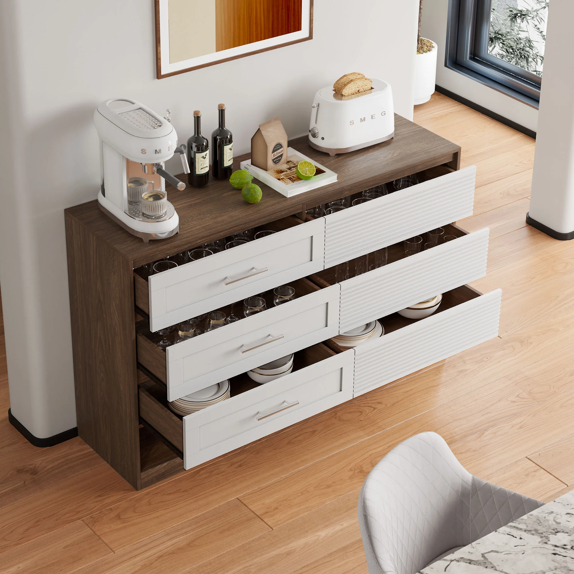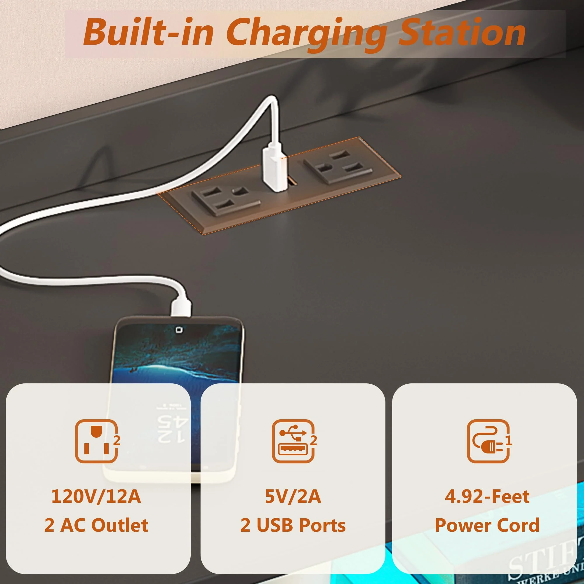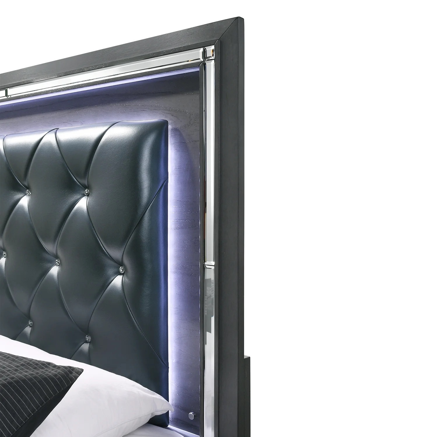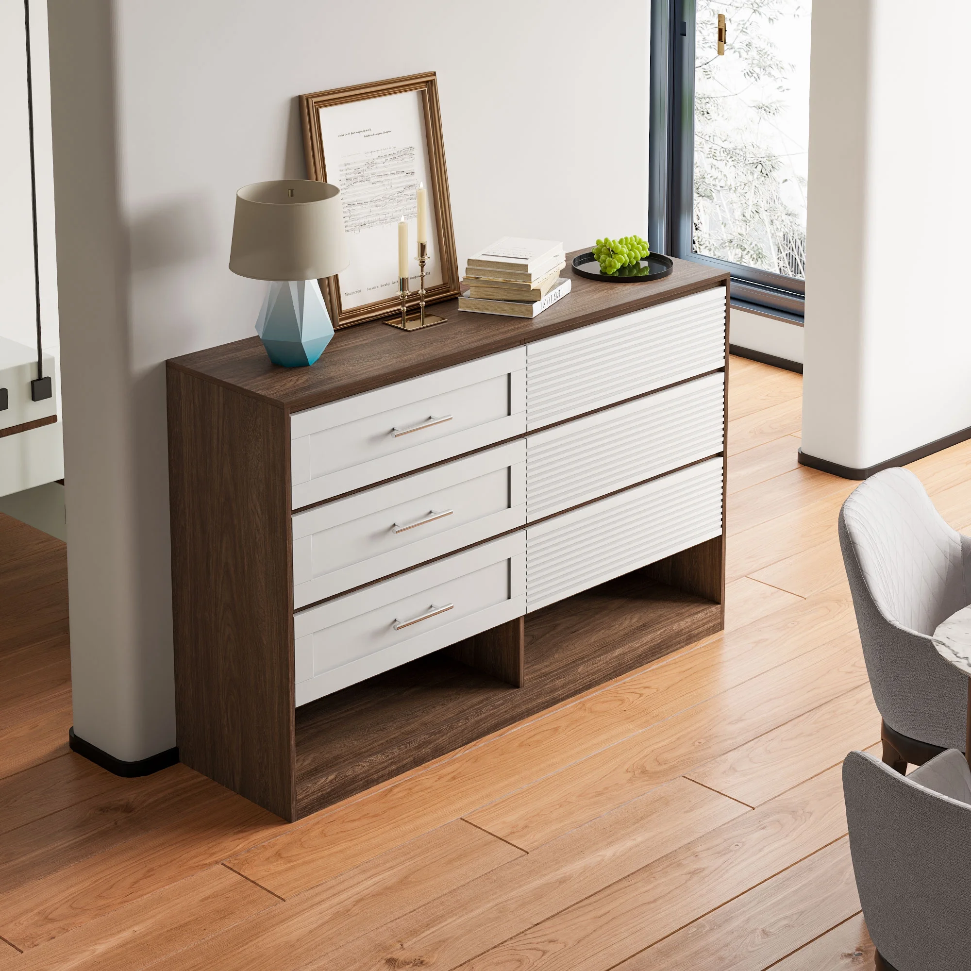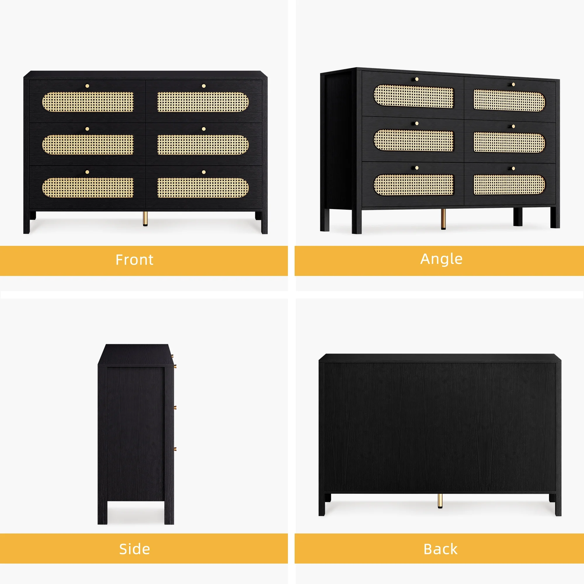 Black 6 Drawer Dresser for Bedroom with Led Lights,Modern LED Chest of Drawers Dresser for Living Room Closet