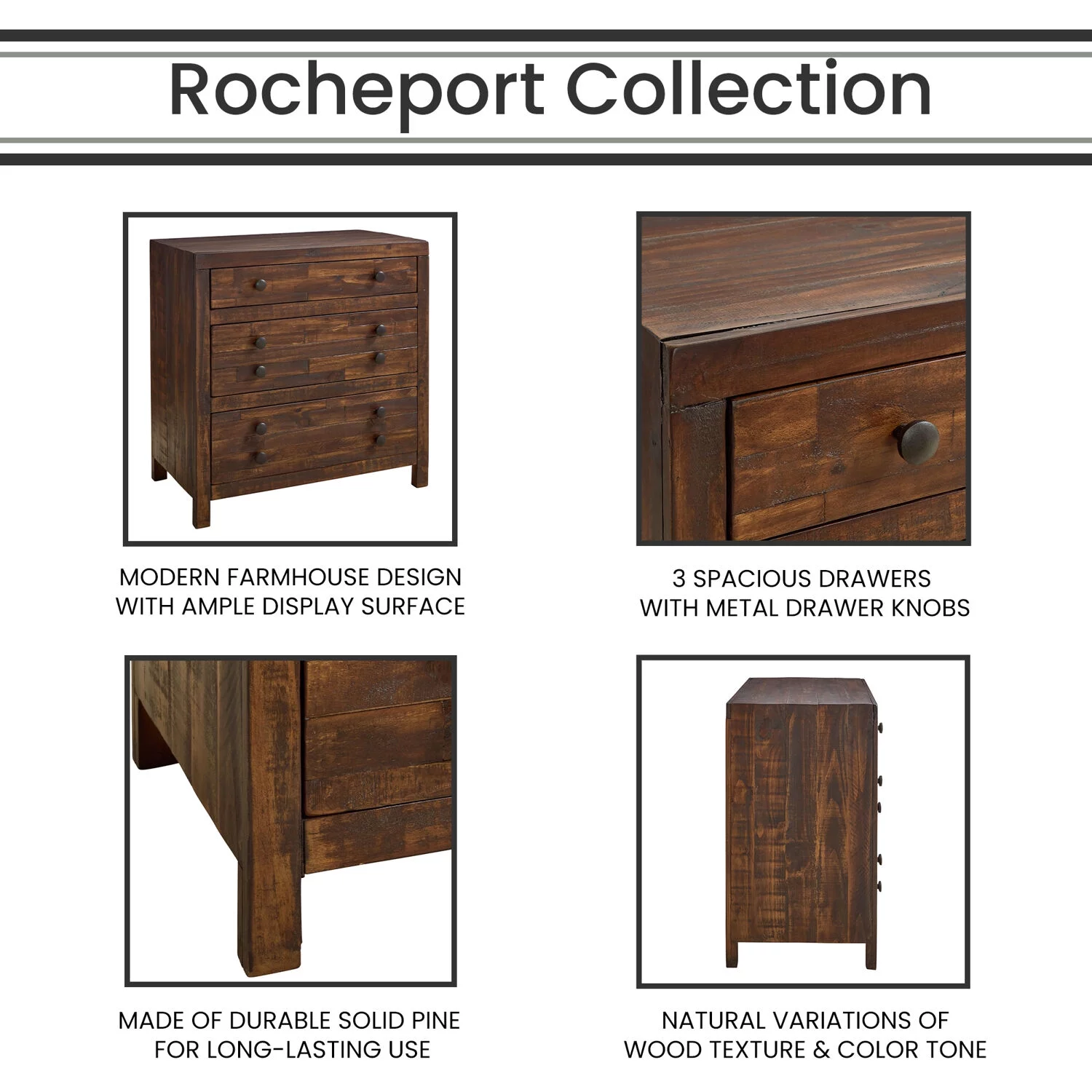 Hanover Rocheport 3-Drawer Accent Furniture Chest, 29-In. Height, Rustic Brown Finish, HLR007-RUS