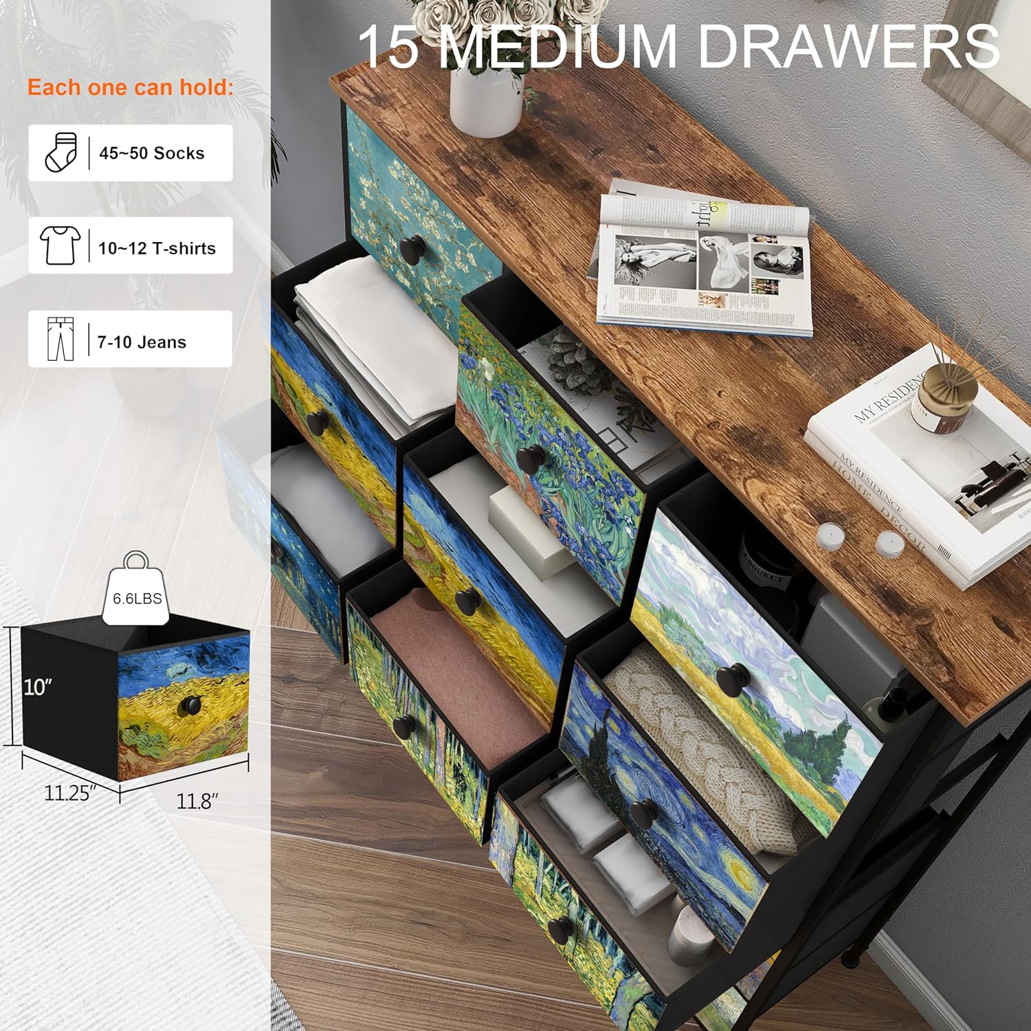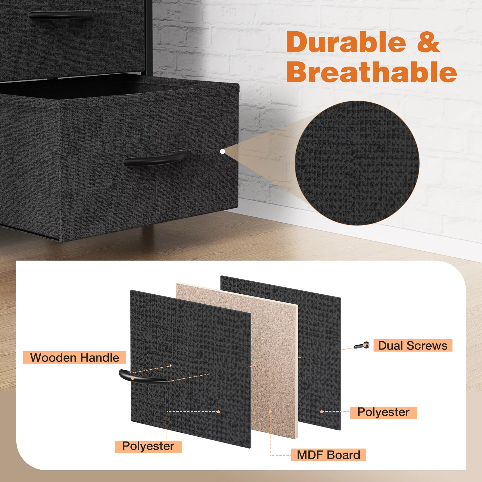 Huracan Dresser for Bedroom, Chest of Drawers, 5 Drawer Dresser, Closet Fabric Dresser with Metal Frame