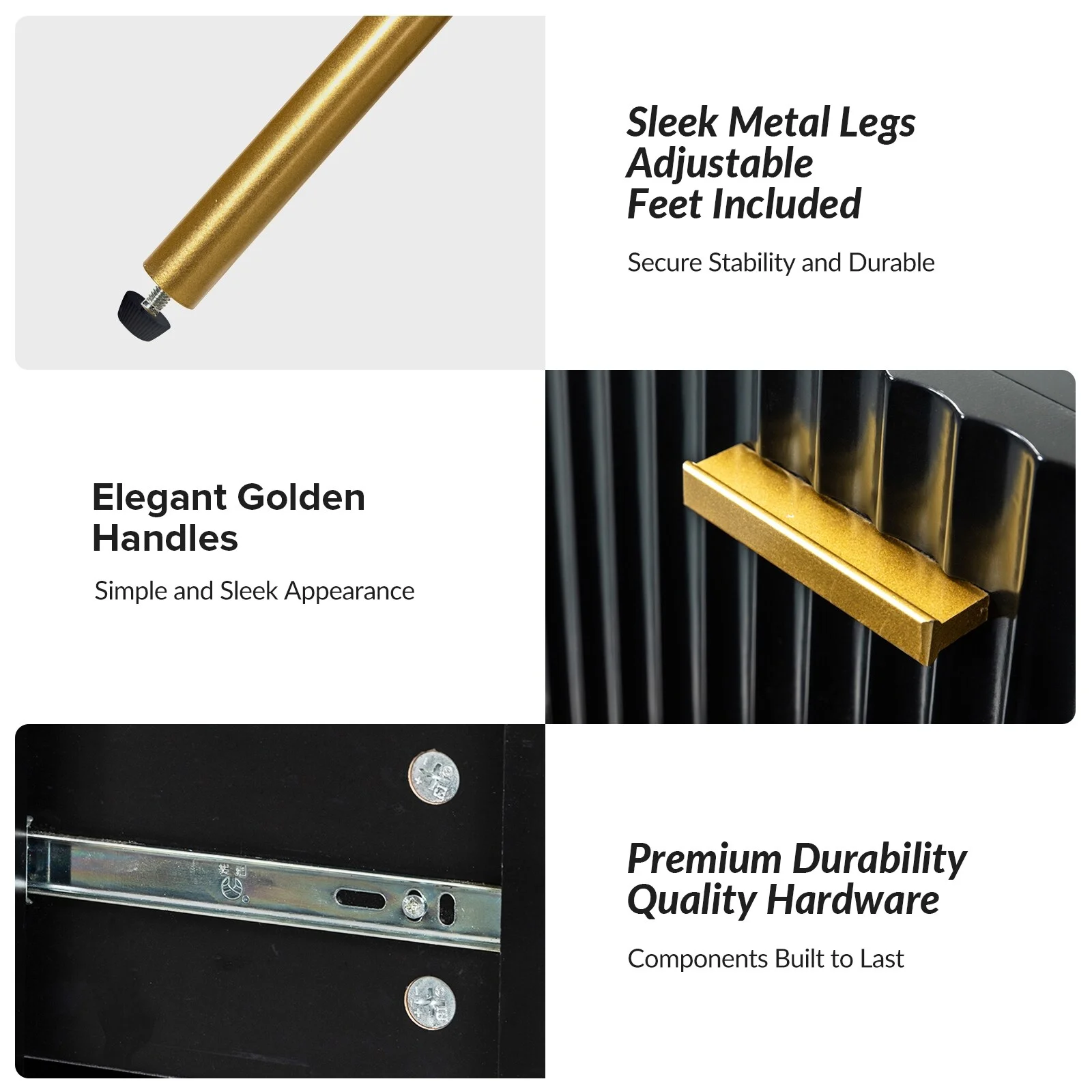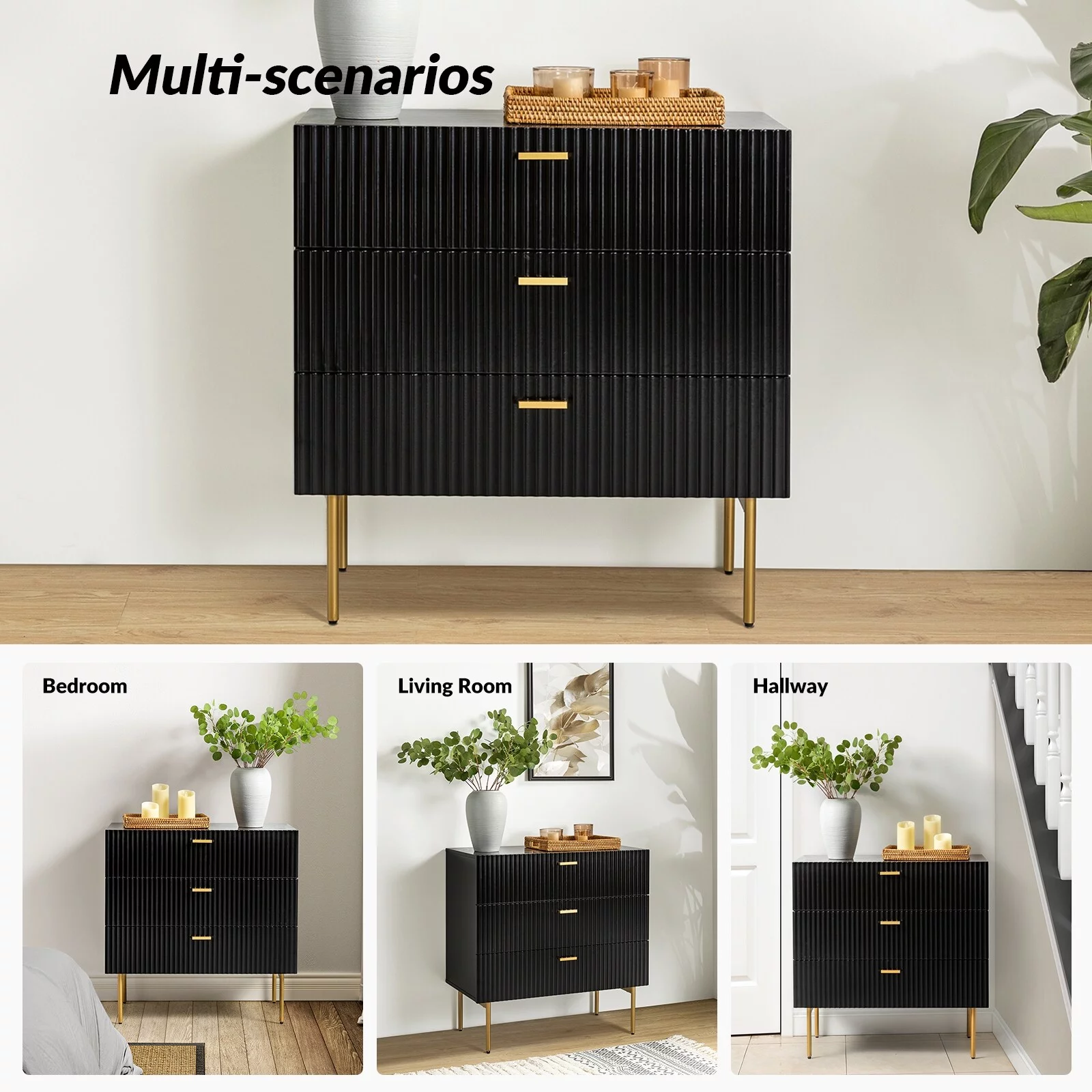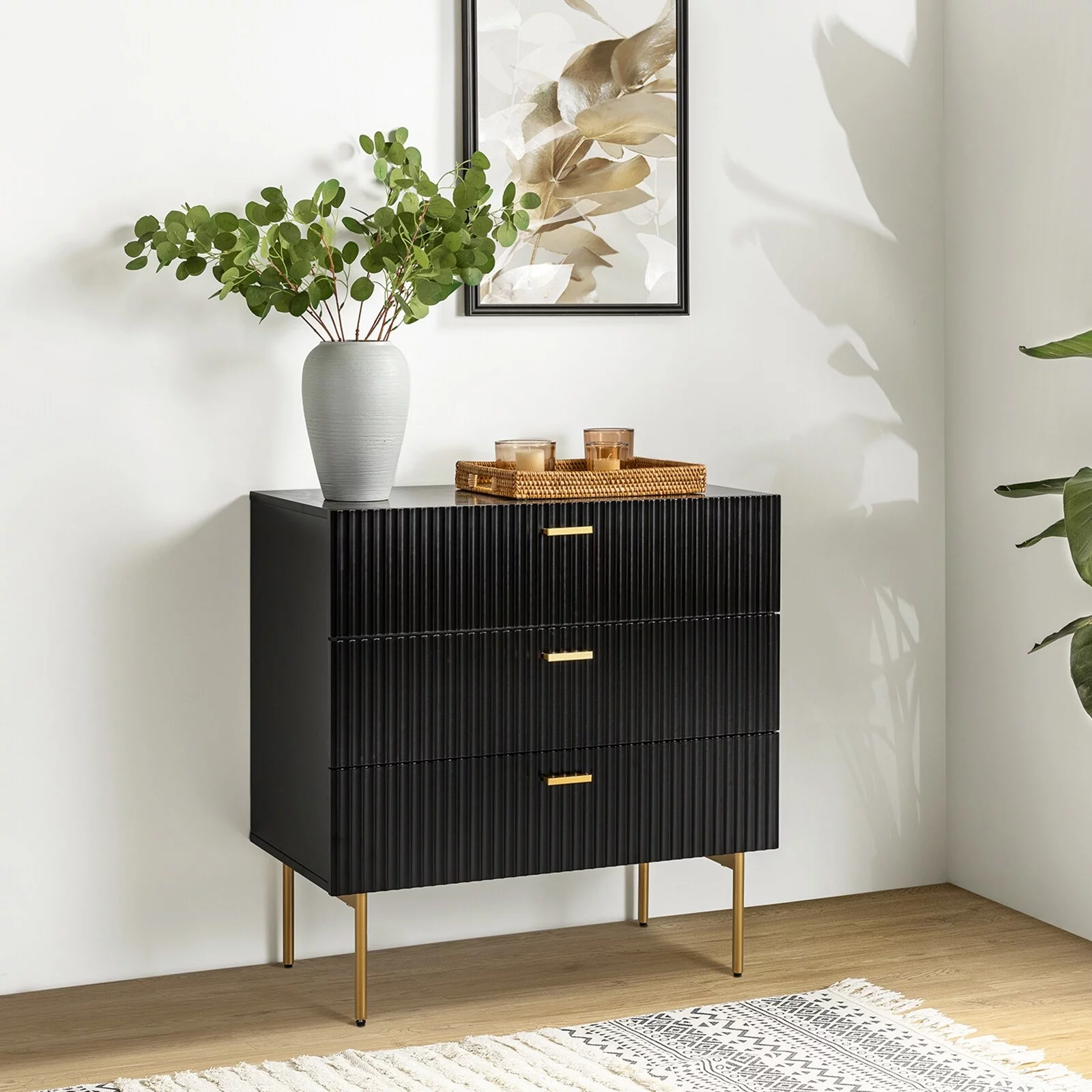 HULALA HOME Gilb Modern 3-Drawer Dresser Nightstand with Metal Legs by Black