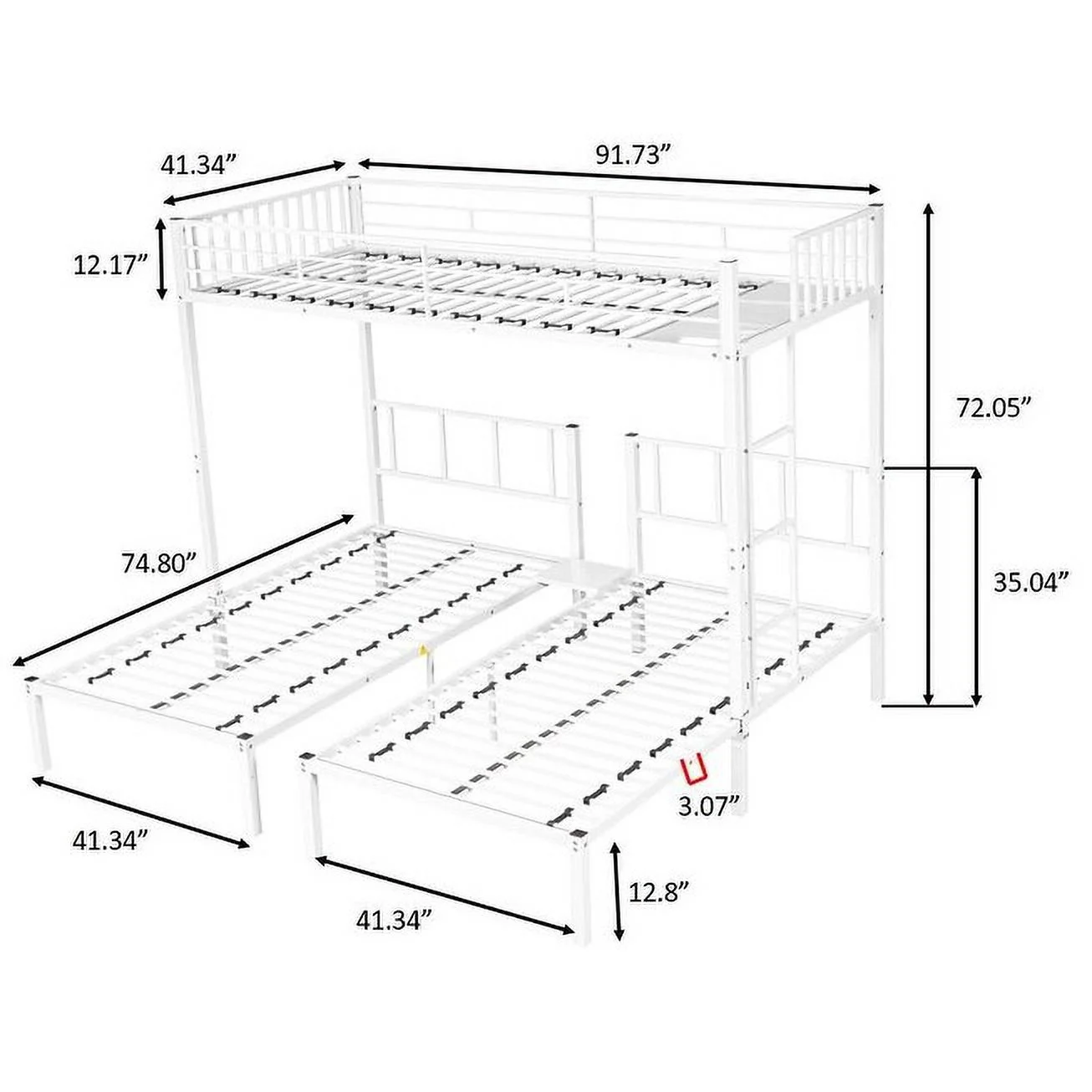 Steel Triple Twin Bunk Bed, Separable Design, Full-Length Guard Rails
