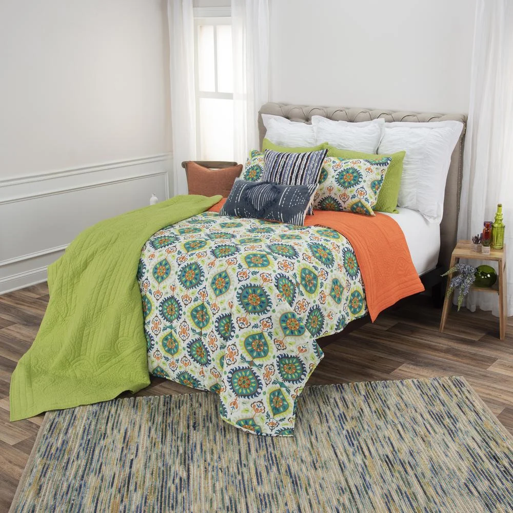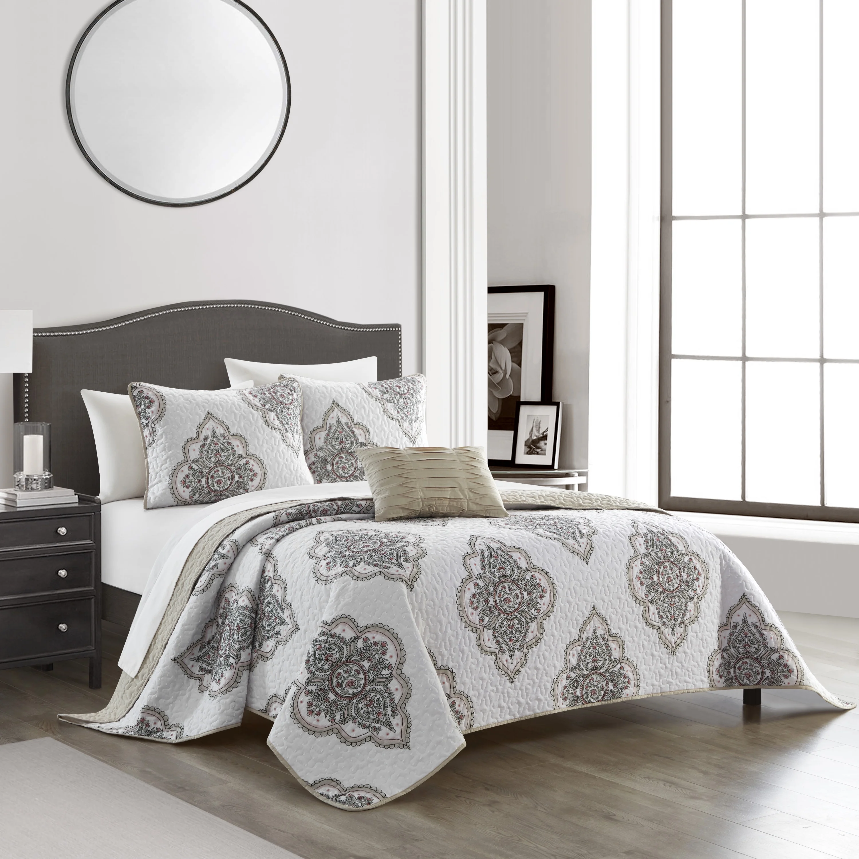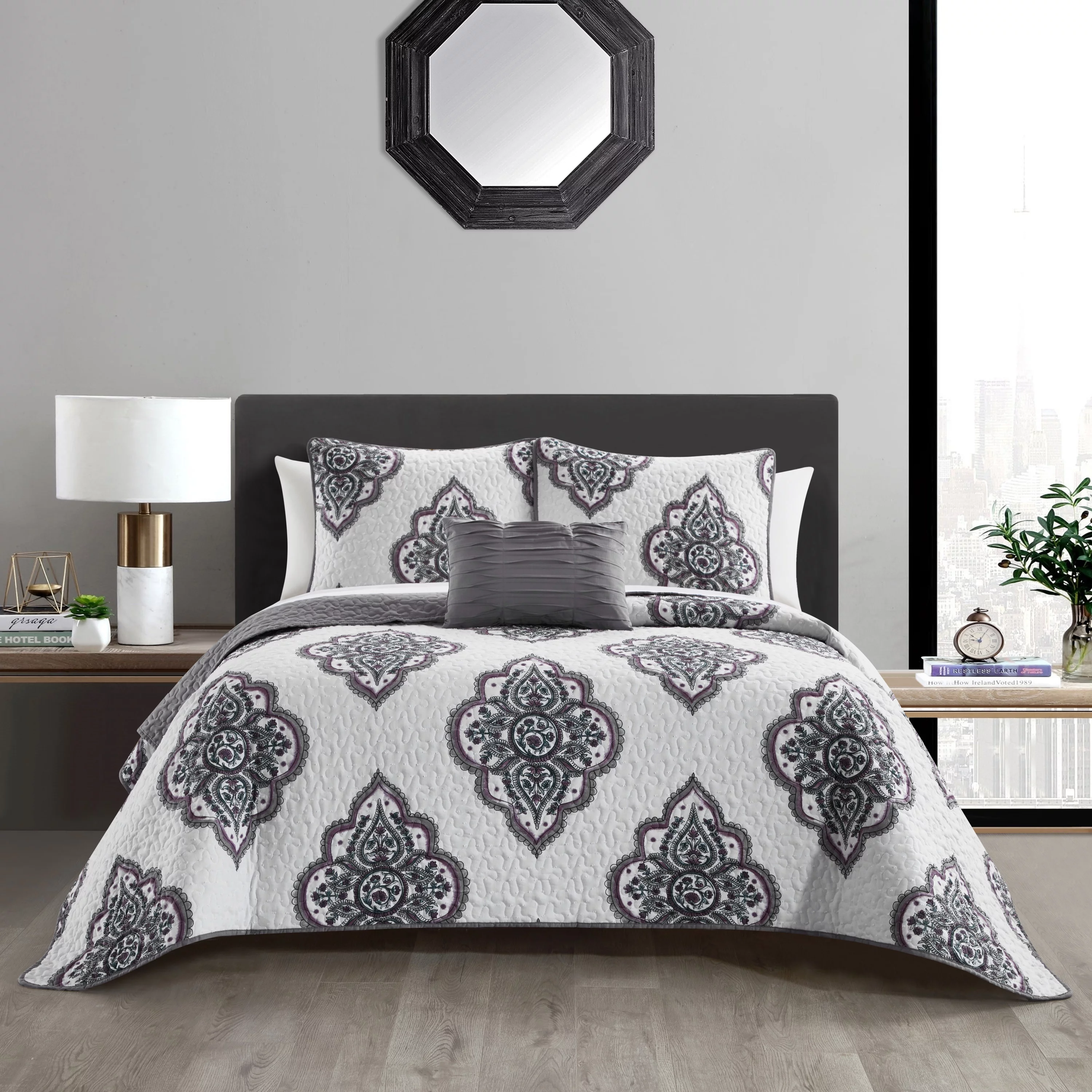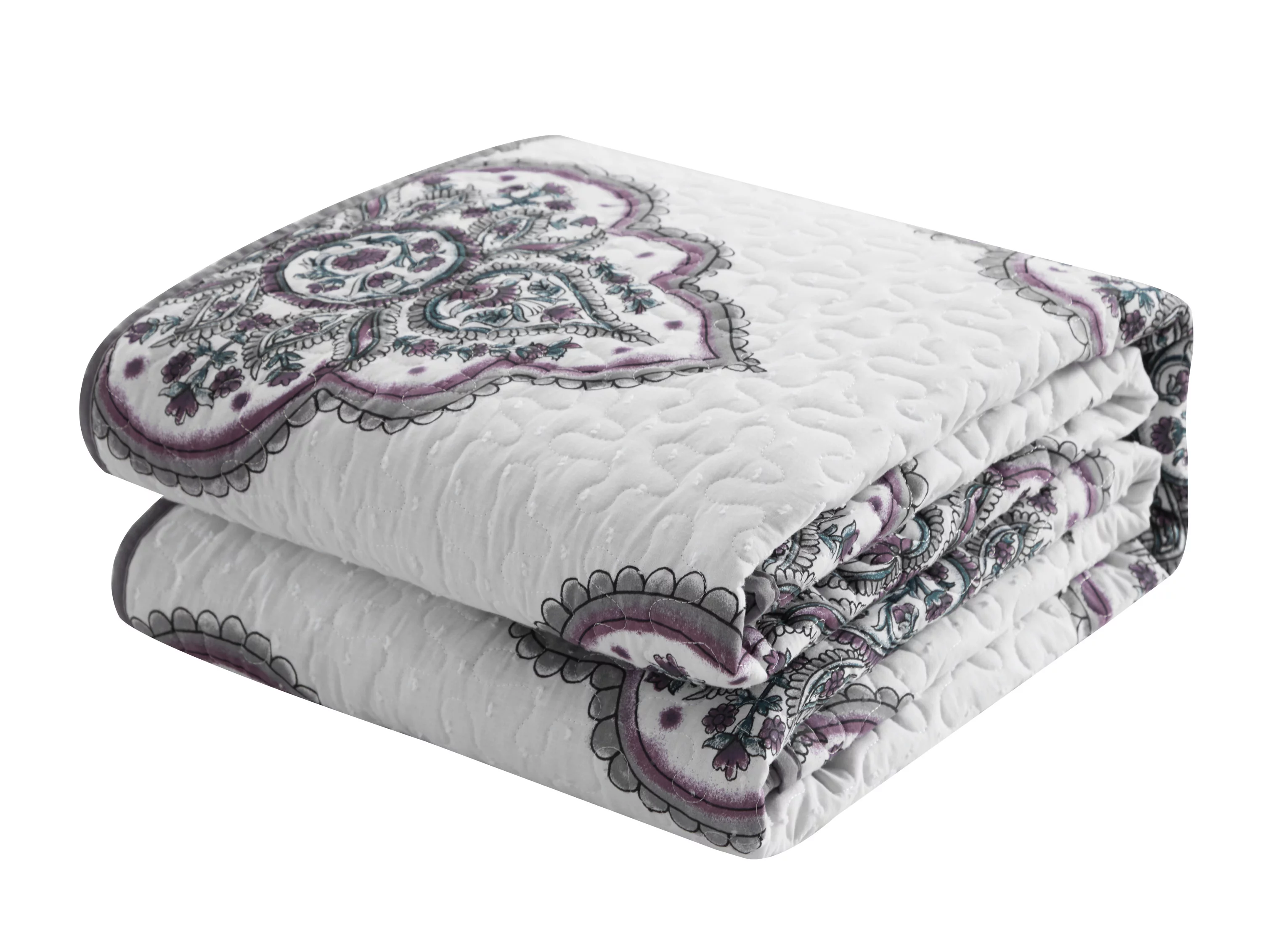 Boho Chic Moroccan Paisley Pattern Grey Orange Cotton 2 Piece Size Quilt Bedding Set