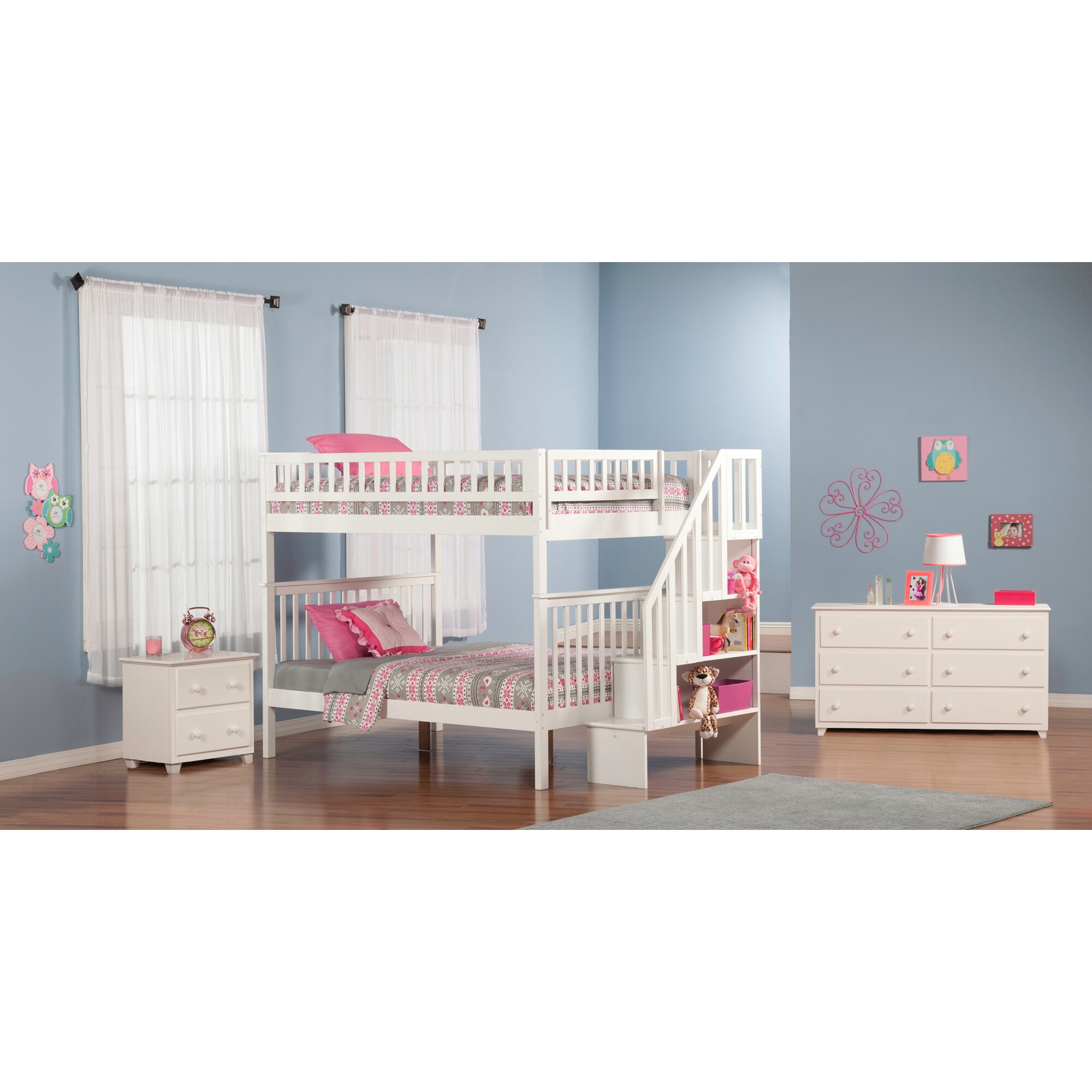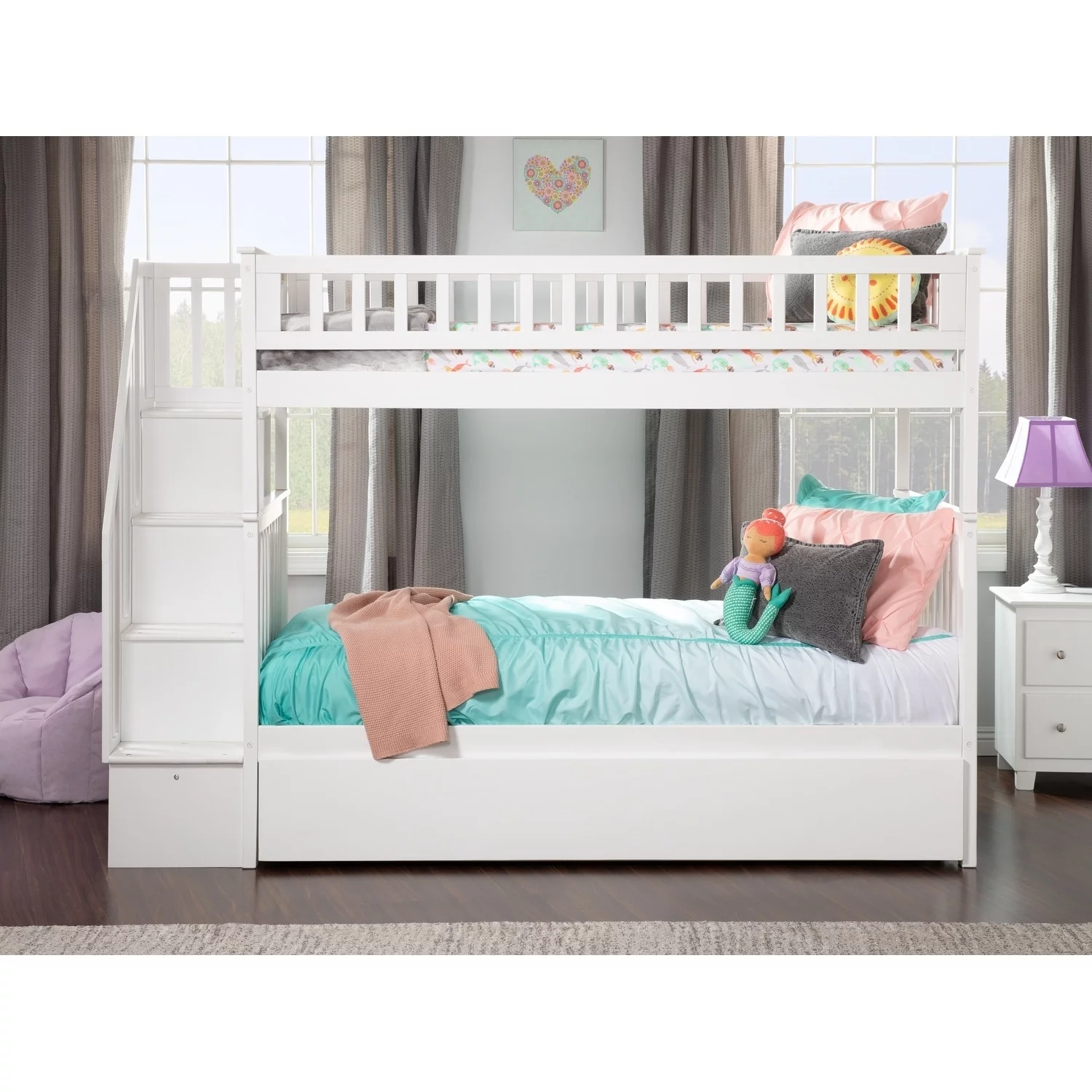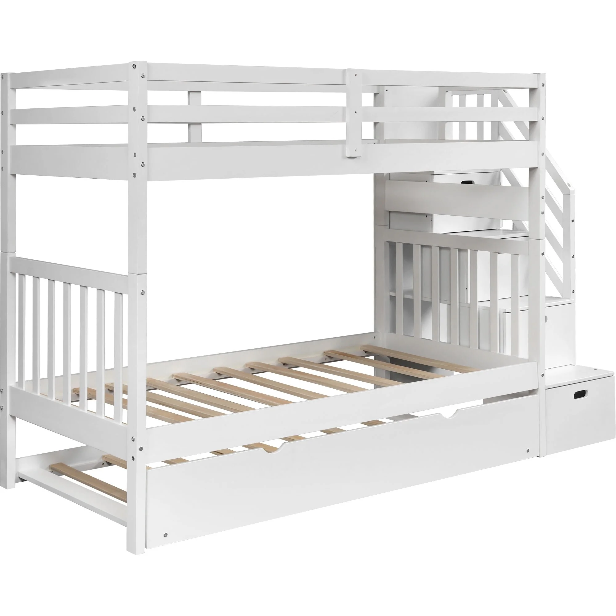 AFI Woodland Staircase Bunk Bed Twin over Twin with Twin Trundle in White