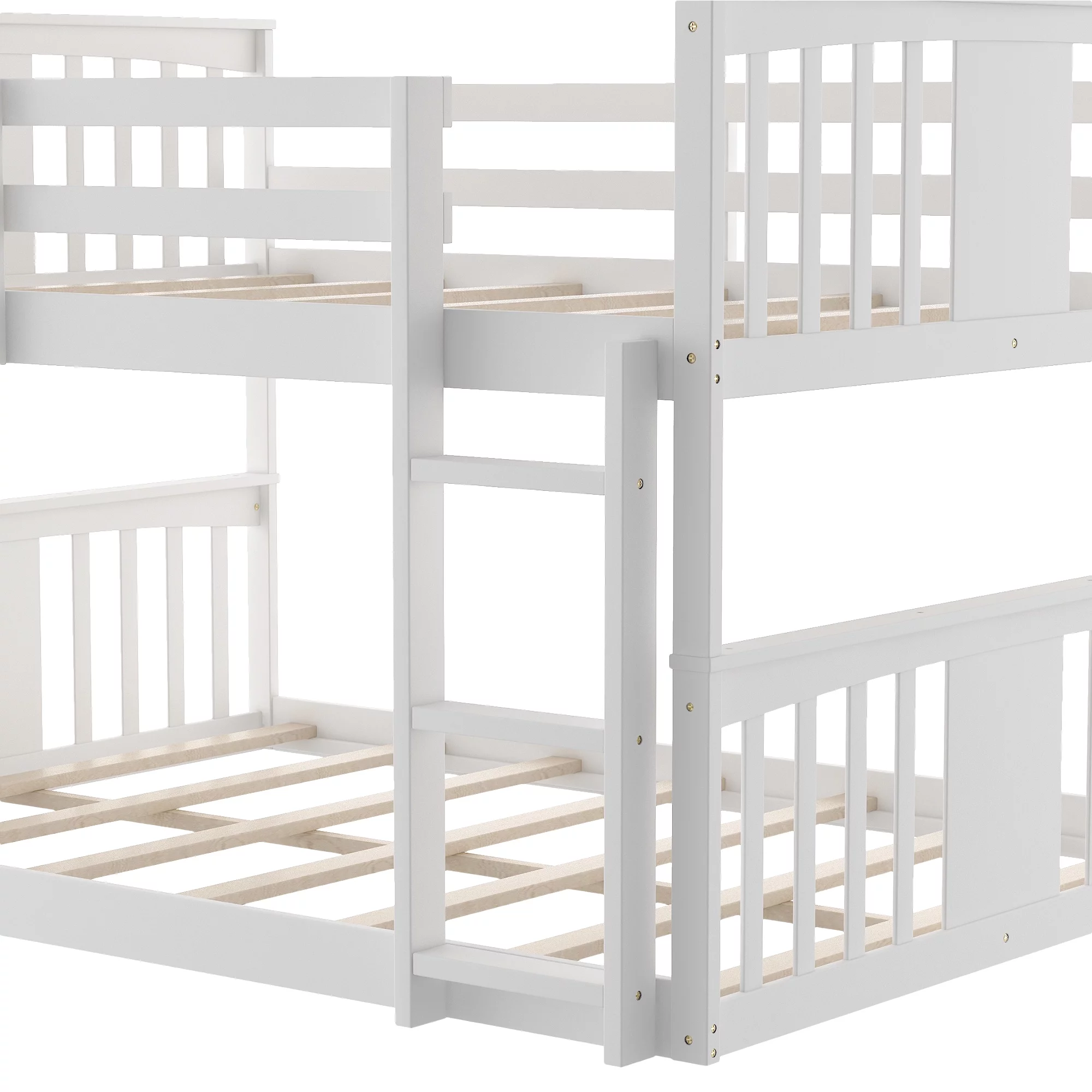Tatayosi Solid Wood Twin Over Full Bunk Bed with Two Storage Drawers White