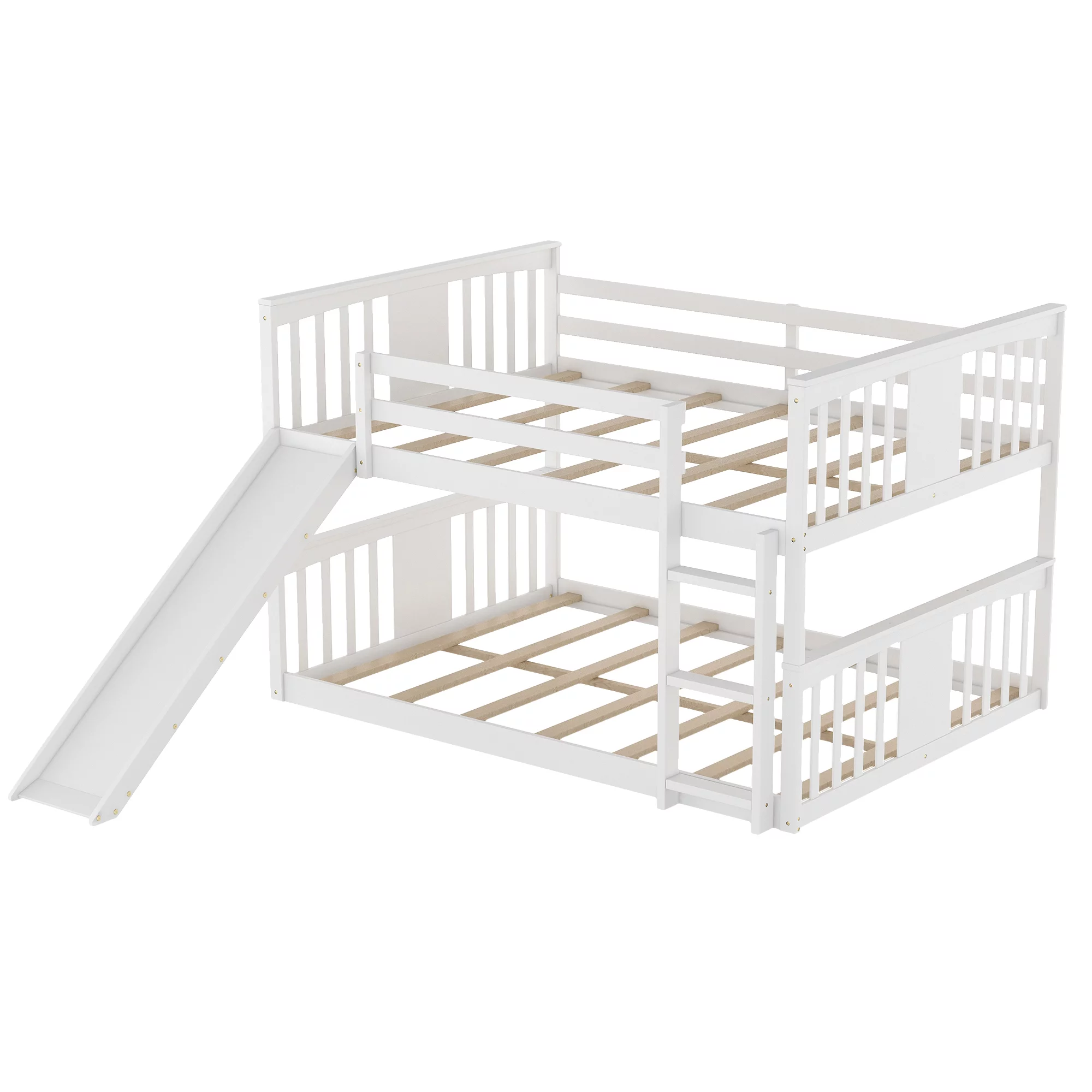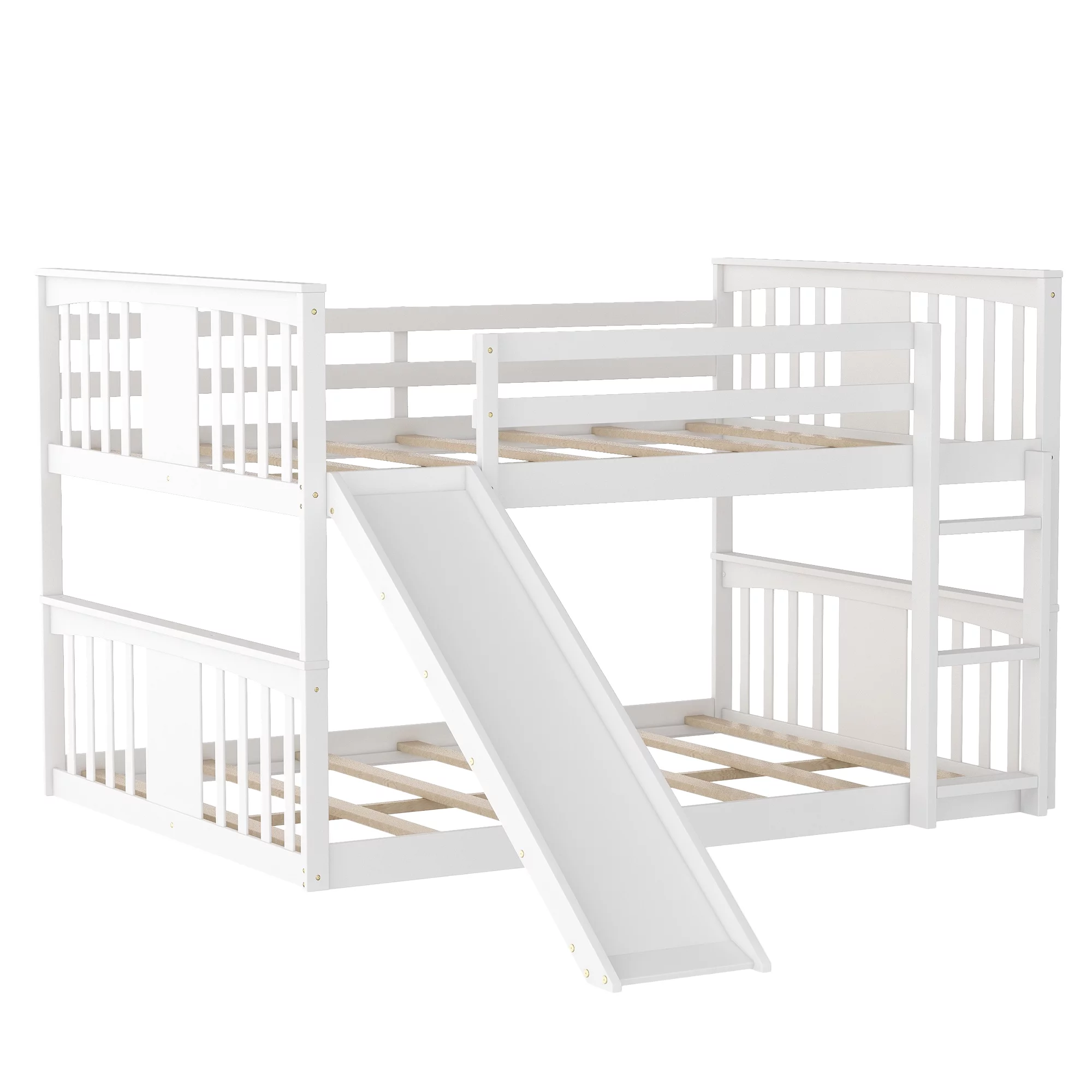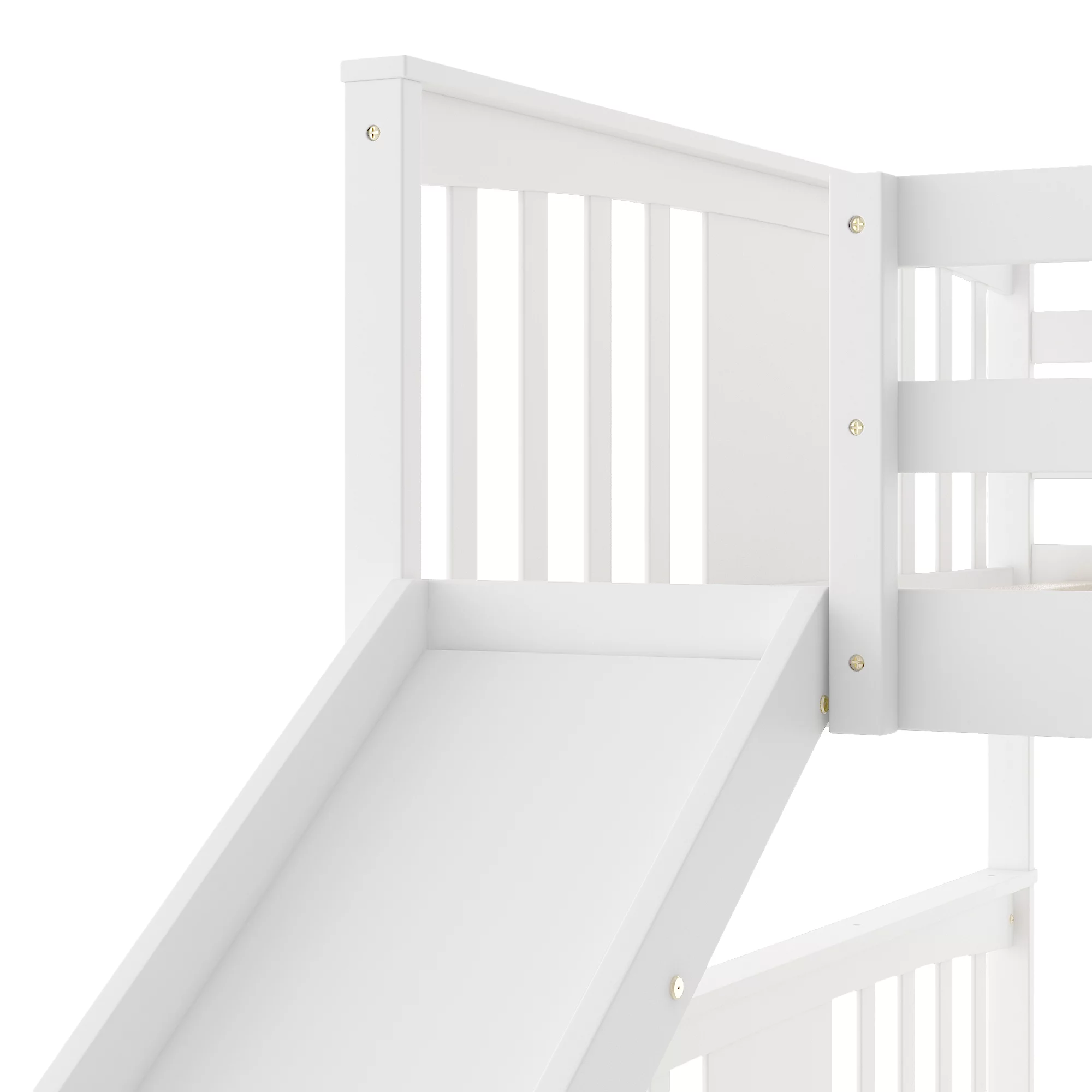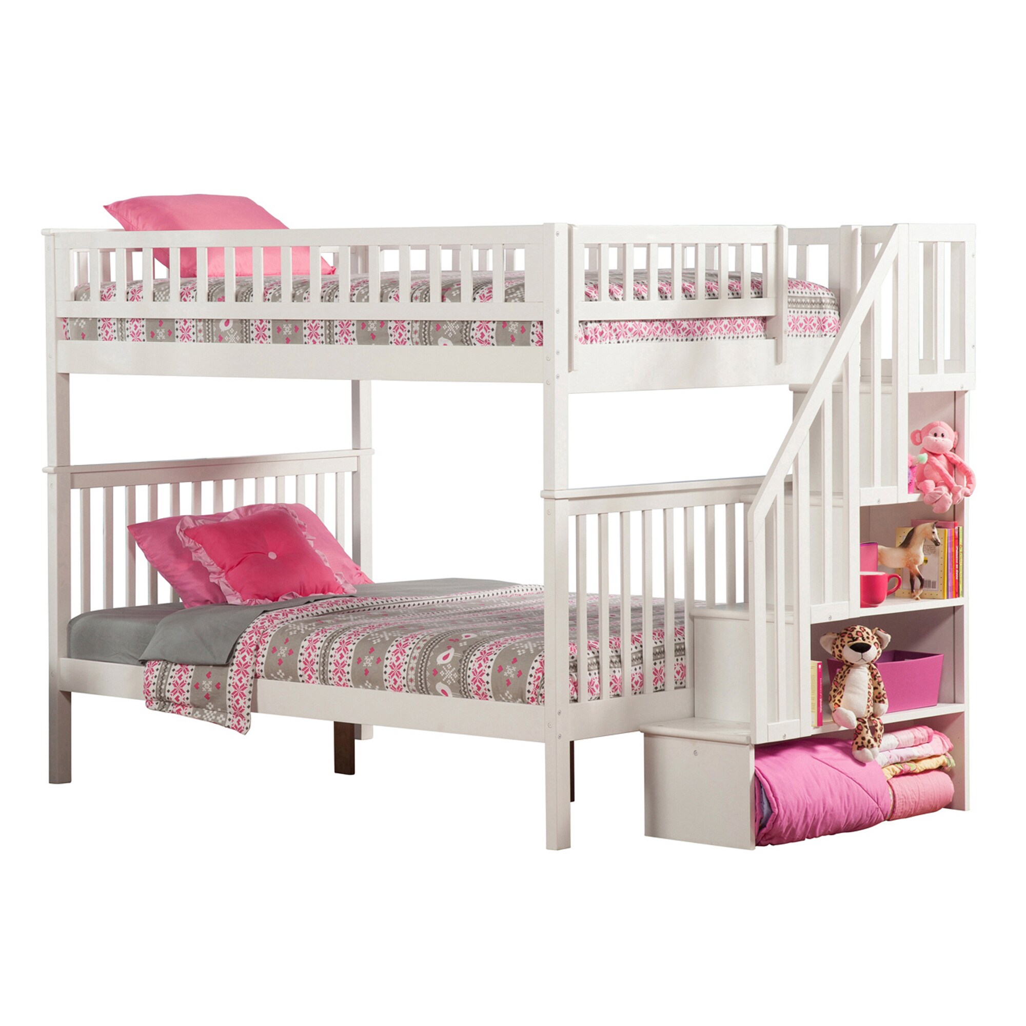 Nestfair Stairway Twin-Over-Full Bunk Bed with Storage and Guard Rail White