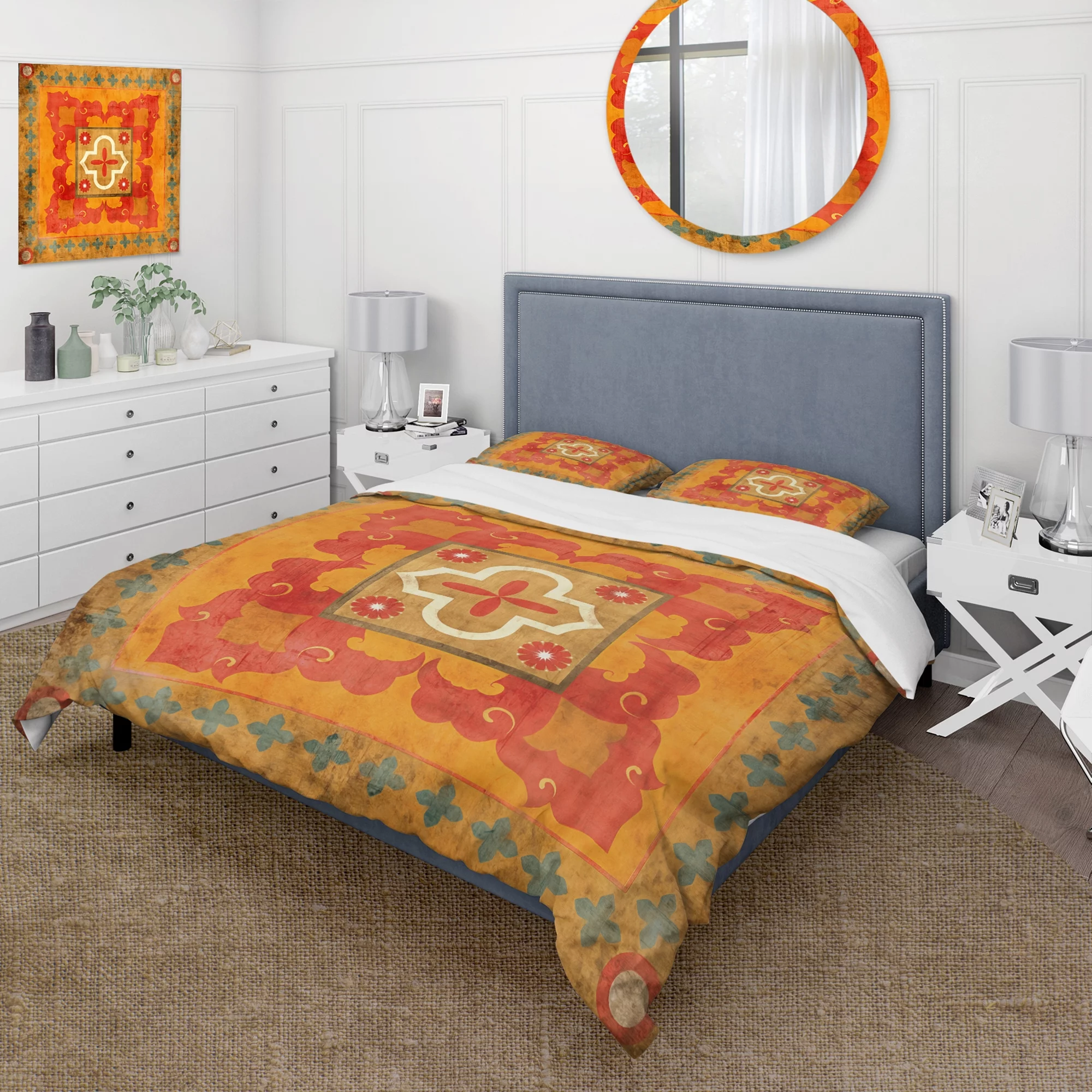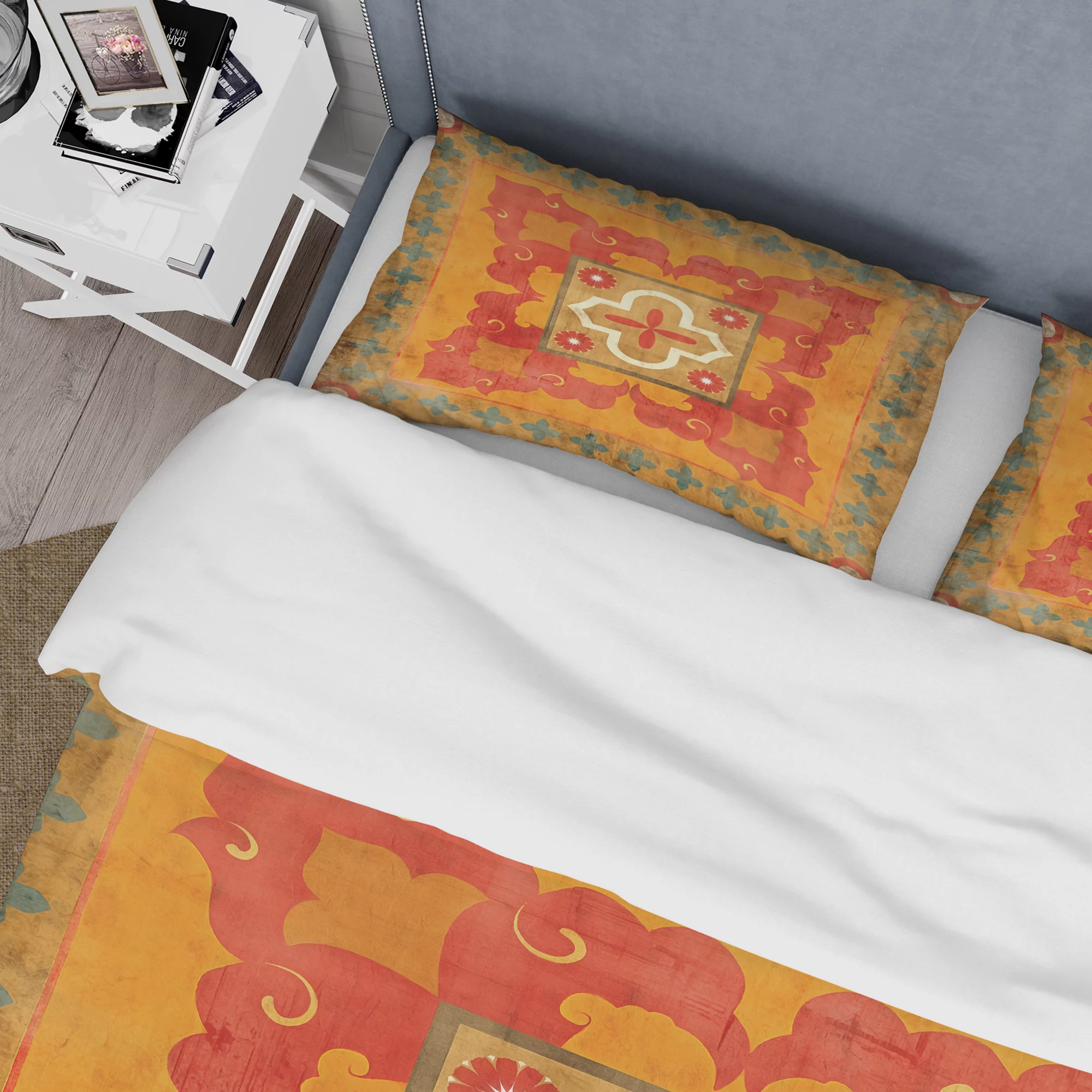 Designart 'Moroccan Orange Tiles Collage III' Bohemian & Eclectic Duvet Cover Set