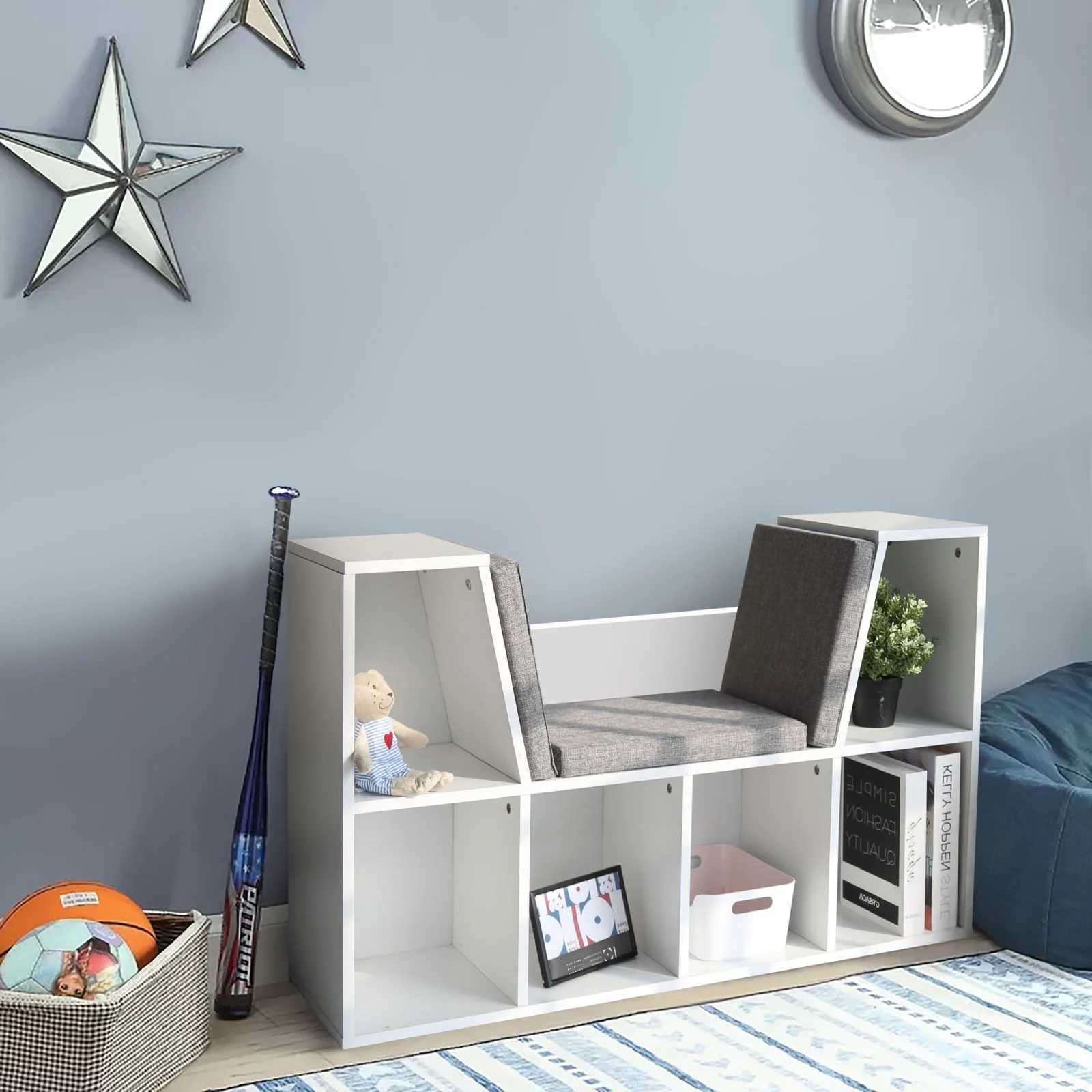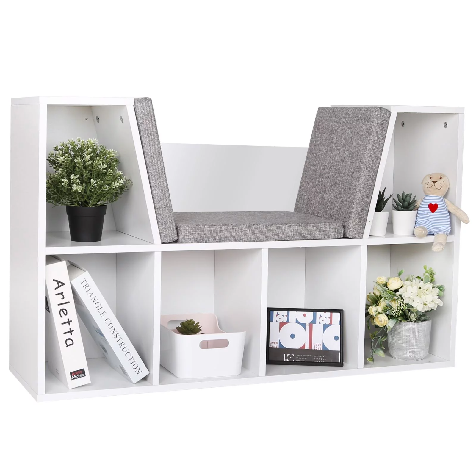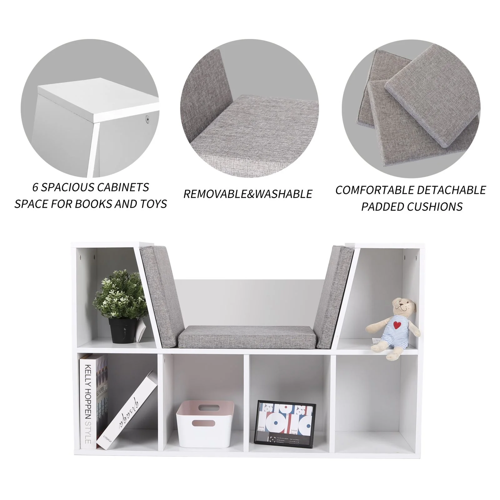 VEIKOUS 6 Cubby Kid Storage Cabinet, Wood Reading Nook Bookshelf & Toy Storage for Home, White