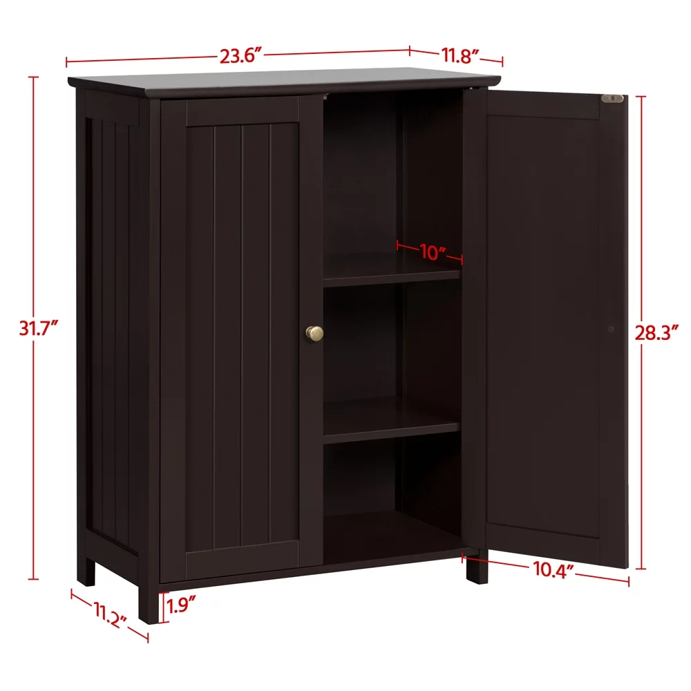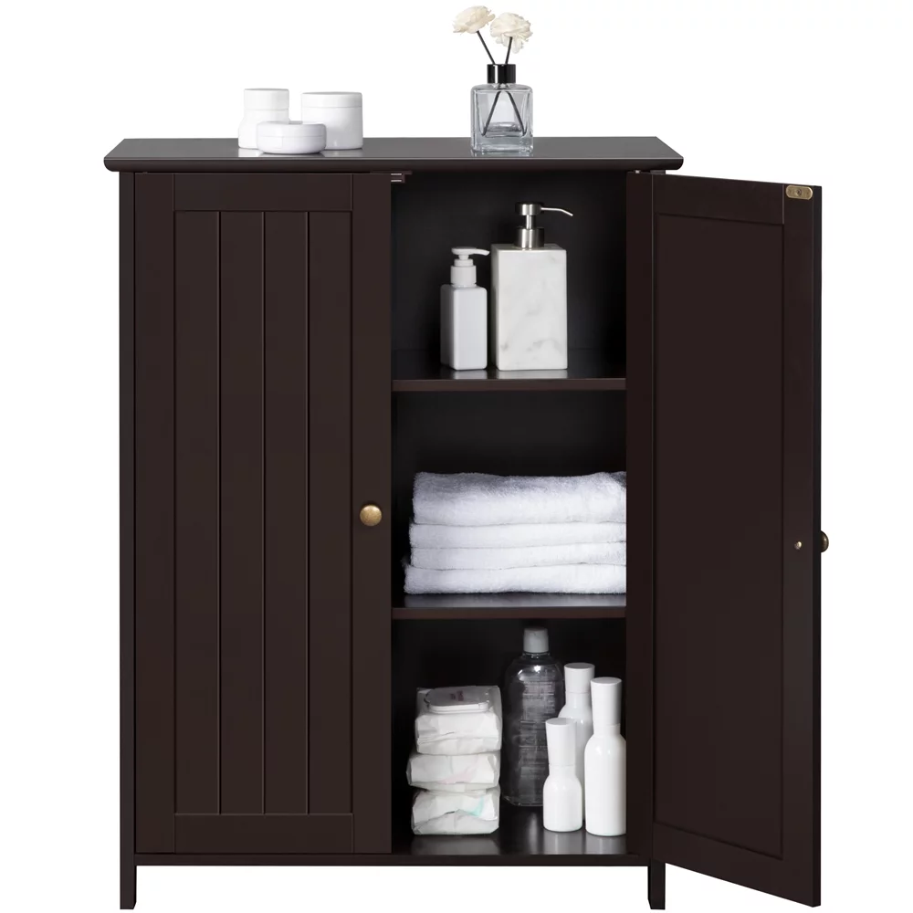 Yaheetech Wooden Floor Cabinet with 2 Durable Doors and 2 Adjustable Shelves, Espresso