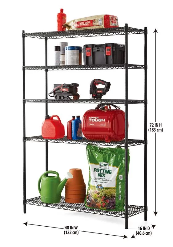 Hyper Tough Black Wire Shelf 5-Tier Heavy Duty 72"H x 48"W x 16"D, 3000lb Total Capacity
