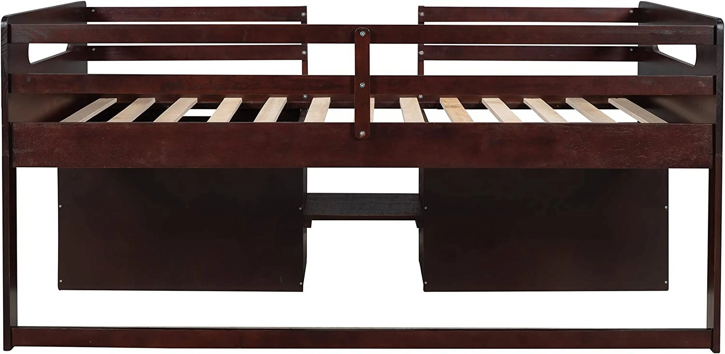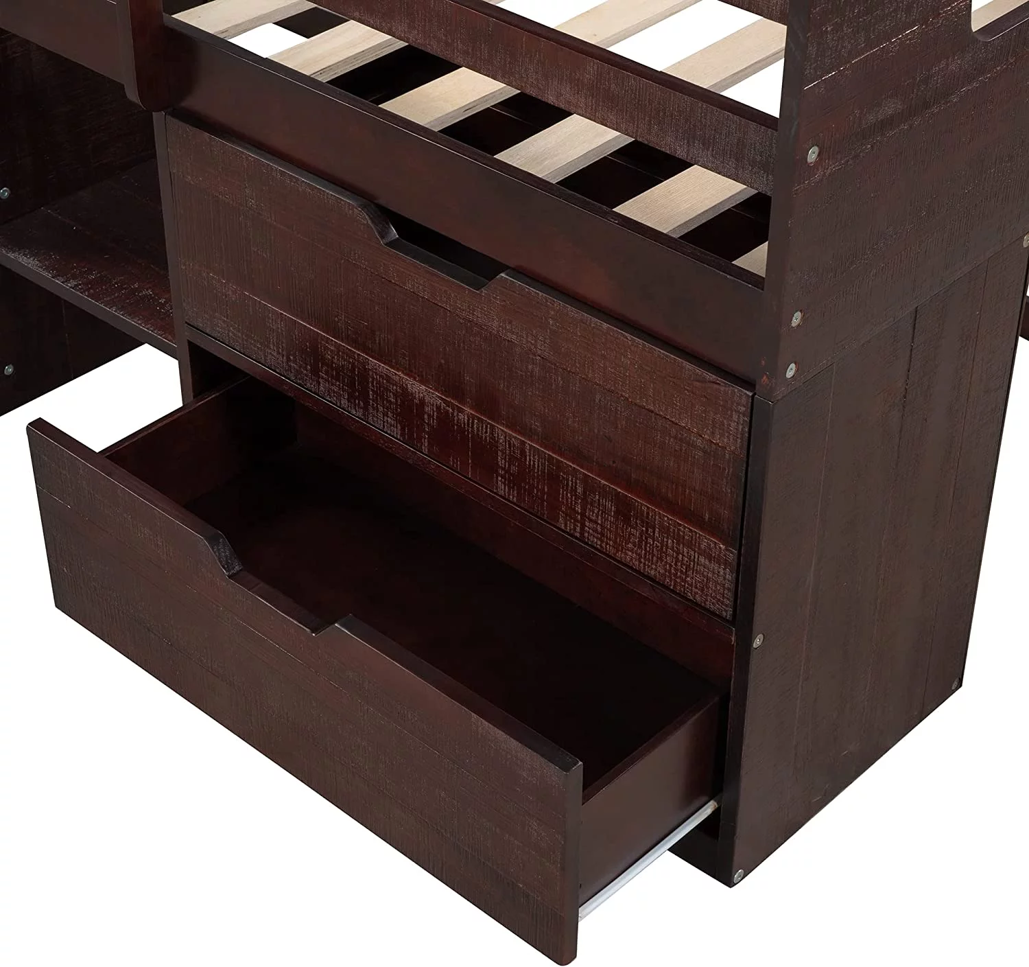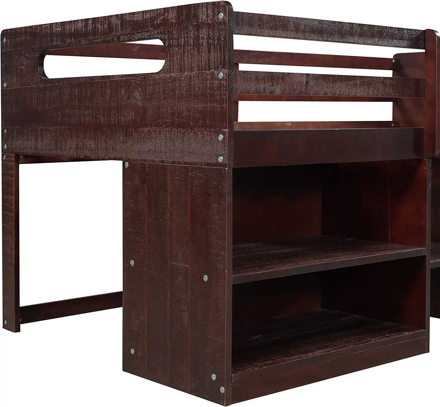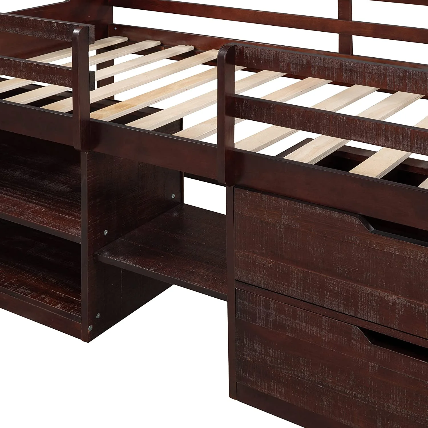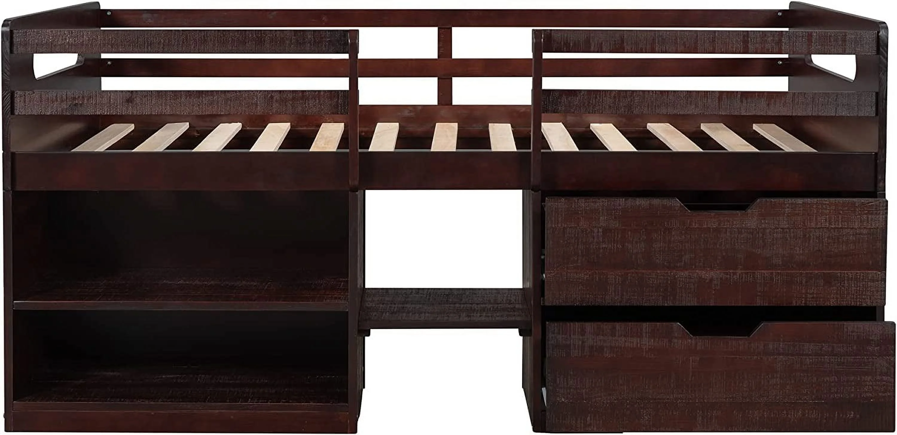 Loft Bed With Storage, Wooden Low Loft Bed With Two Shelves And Two Drawers, For Kids Teens Girls Boys (Antique Espresso)
