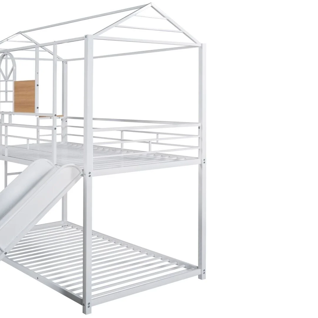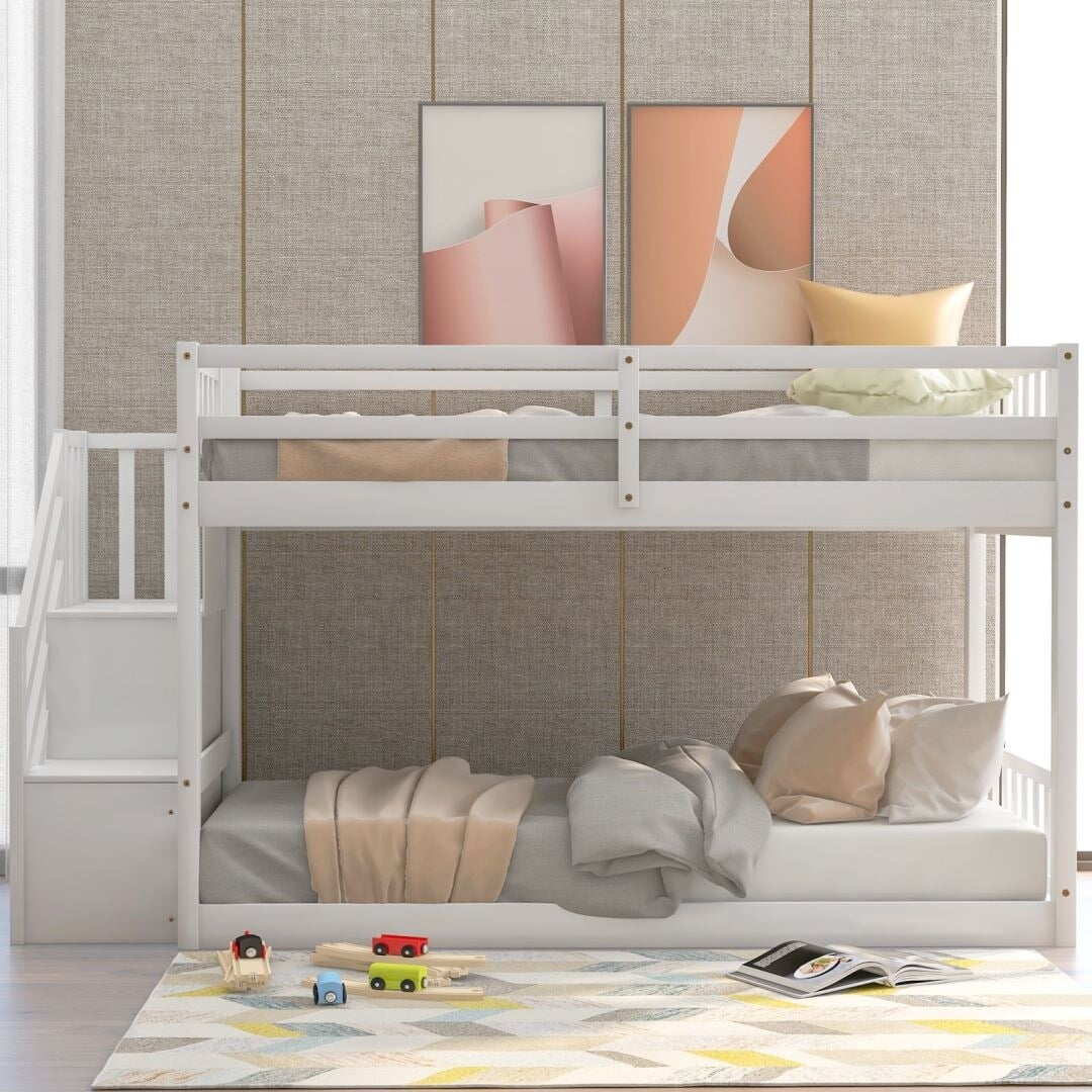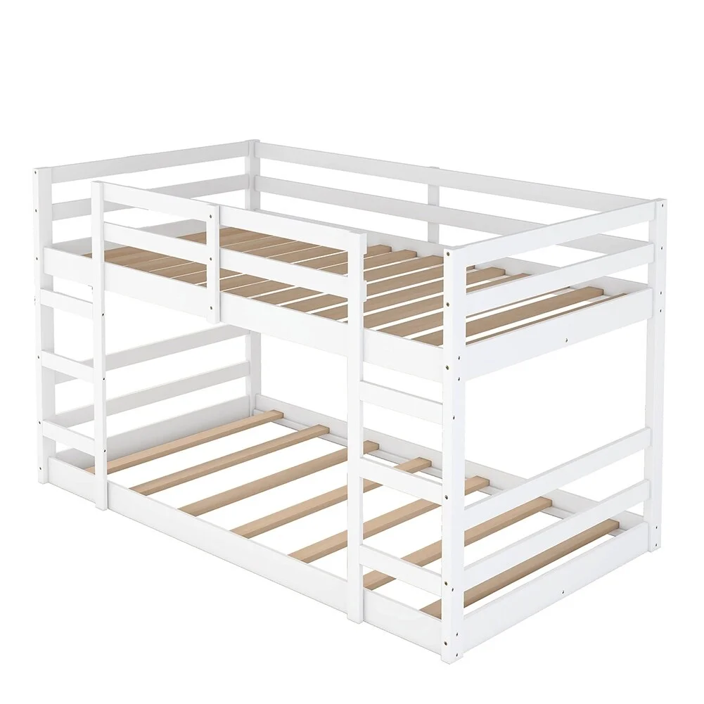 Twin Over Twin Bunk Bed with Ladders and Full-length Guardrail White