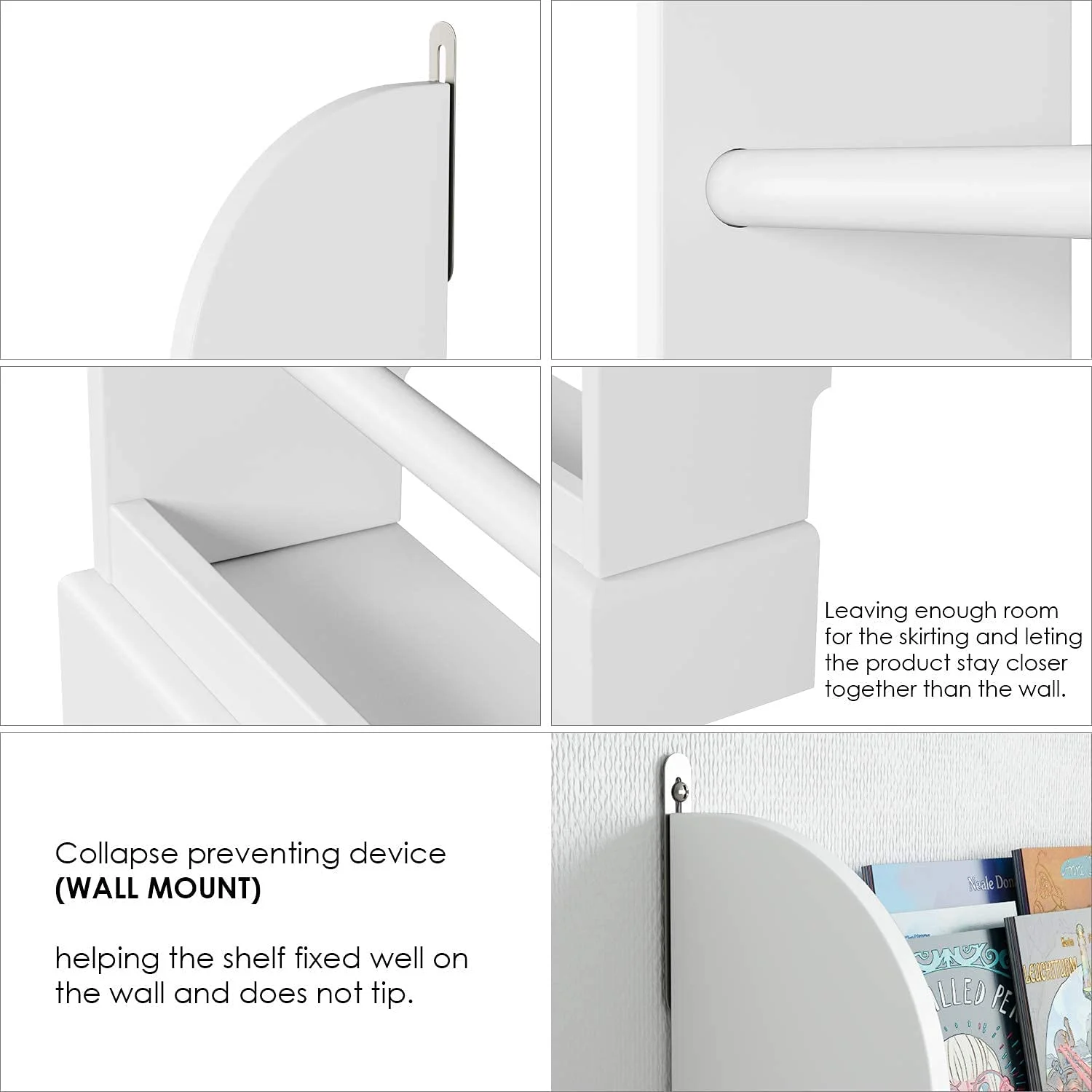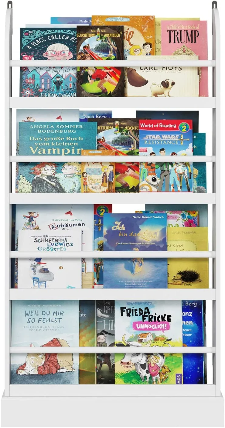 Homfa 4 Tier Kids Bookshelf, Wall Storage Bookshelf Organizer for Playroom Kids Room, White Finish