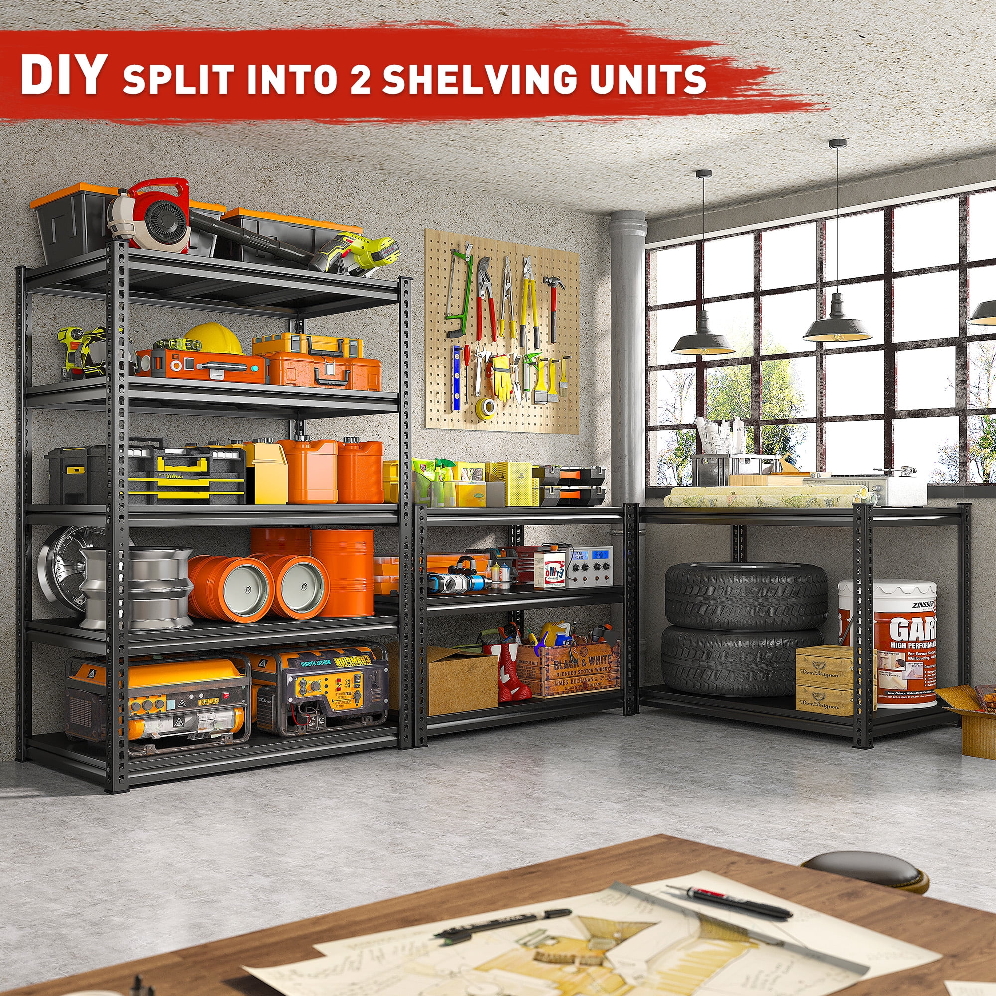 Organizeworks 77"W x 24"D x 72"H 3-Shelf Welded Storage Rack, 6000 lb Capacity, Black