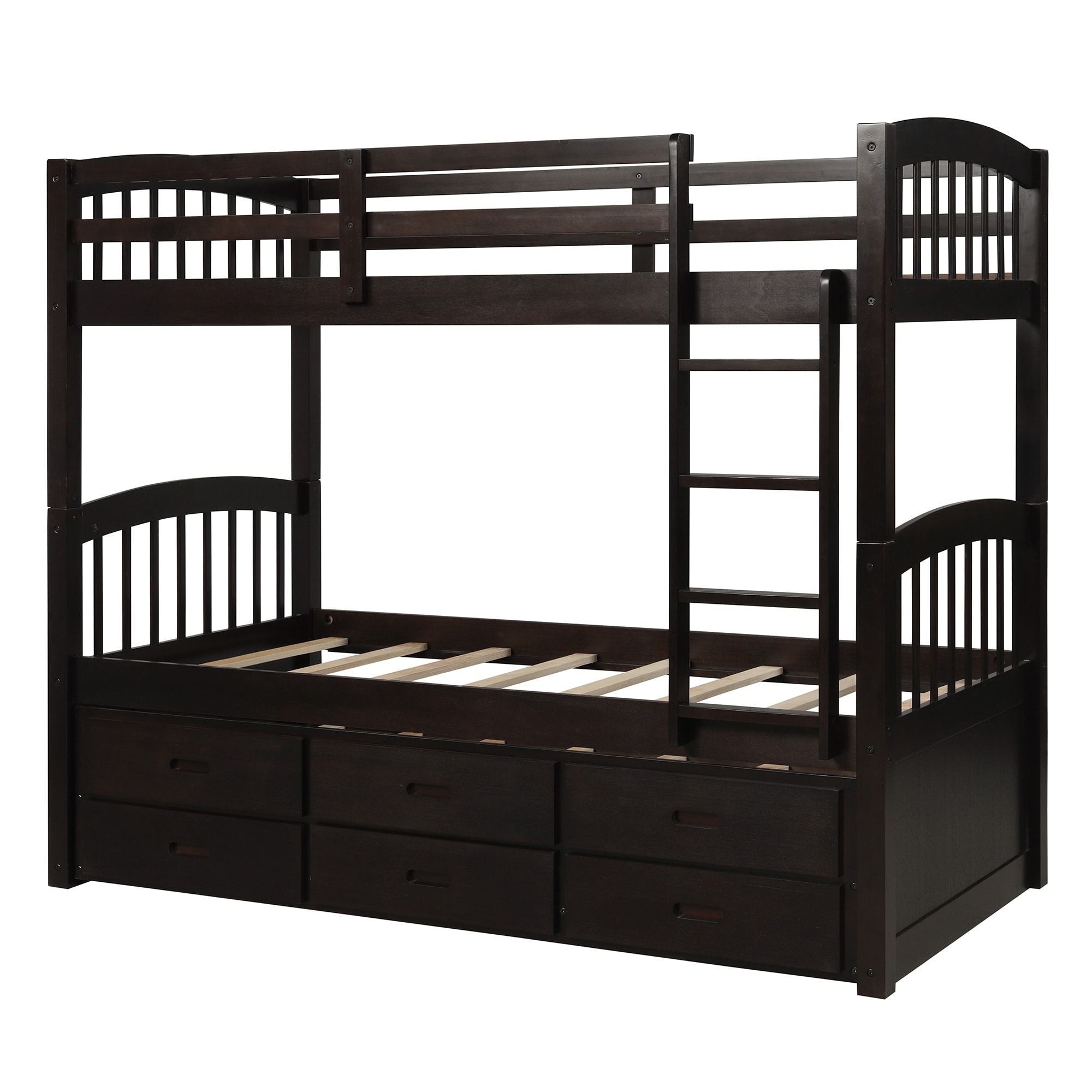 Nestfair Twin Over Twin Wood Bunk Bed with Trundle and Drawers Espresso